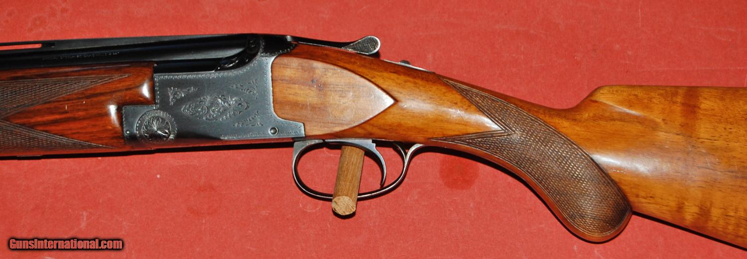 Description: Belgian Browning 20ga grade one superposed.Built in 1953,this gun has the round knob,long tang stock.It has 261/2" barrels choked improved cylinder (.012") and modified (.026").It retains 98% of the original wood and blue finish and is all original.The gun weighs 6-8.The bores are bright and free of rust,pits,and dents.The wood is sound with no cracks or damage.Cased in a correct Tolex case that is in excellent condition.C&R eligible. SOLD Curio/Relic: Yes Manufacturer: Browning Model: superposed grade one Serial Number: 3513 Chambers: 23/4" and 3 Barrels: 261/2 Action: over under Triggers: single selective Gauge Info: 20ga Stock Dimensions: 141/8"x11/2"x23/8 Chokes: IC and Mod |