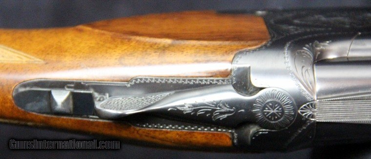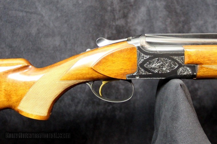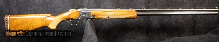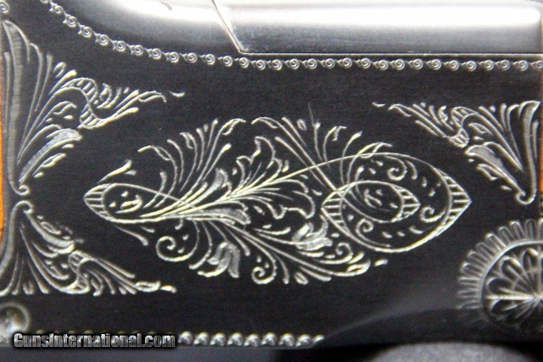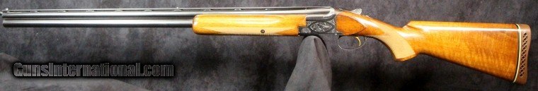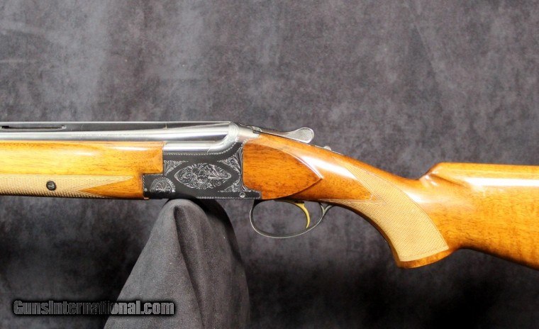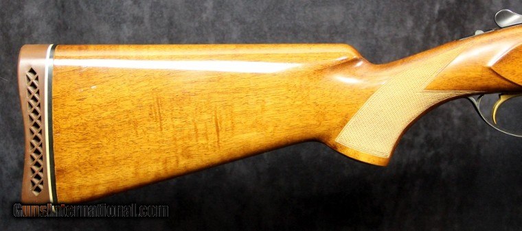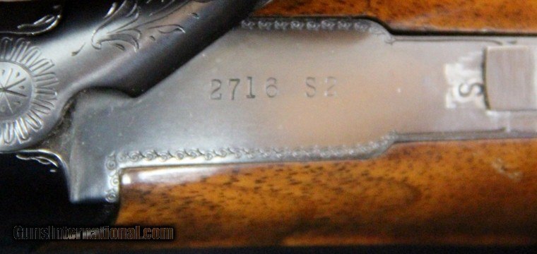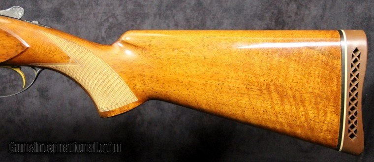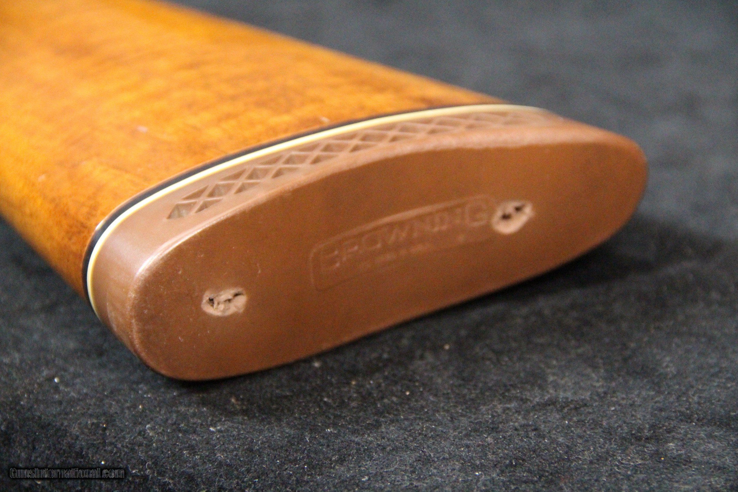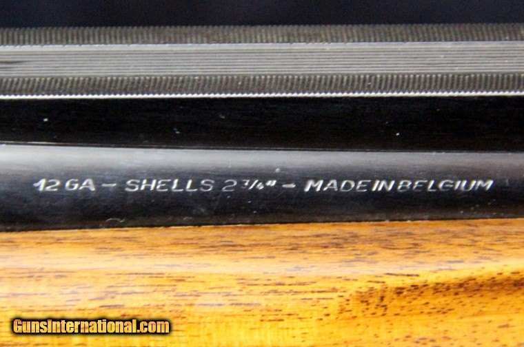 Description: 12ga, #2716S2, 32 inch barrels, blue finish, walnut stock and forearm, "Broadway" vent rib, single selective trigger, Browning butt pad, engraving on frame/trigger guard/barrel release lever, 1962. Condition: bright bores, 98% blue overall, stock was damaged in earlier shipment, damage has been professionally repaired but not camouflaged, damage can be seen on right side of stock next to barrel release lever, dent on opposite side, excellent mechanically, excellent marks. SOLD Curio/Relic: Yes |