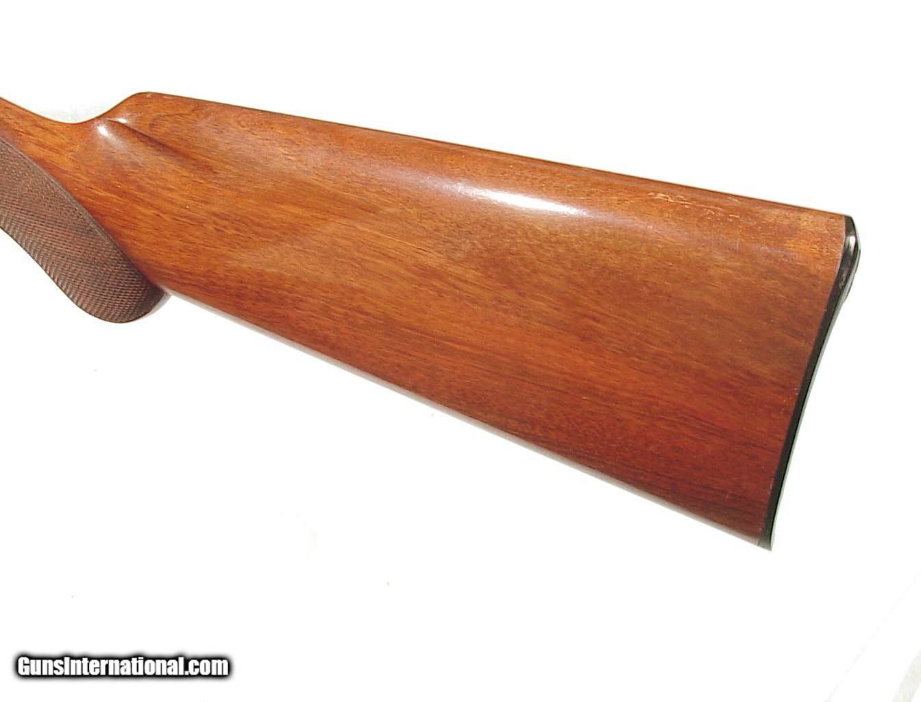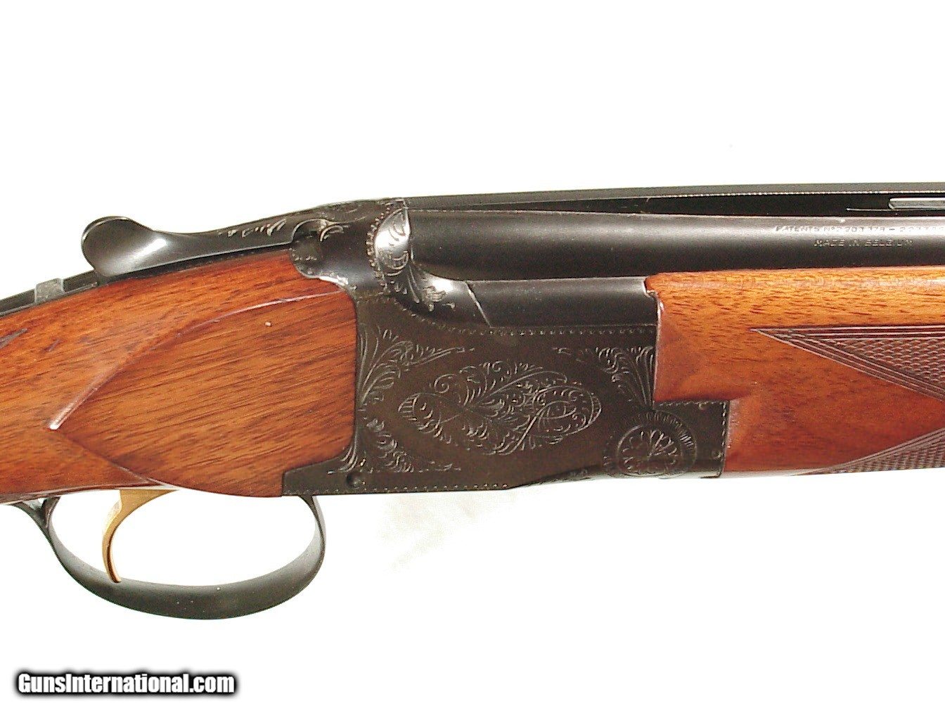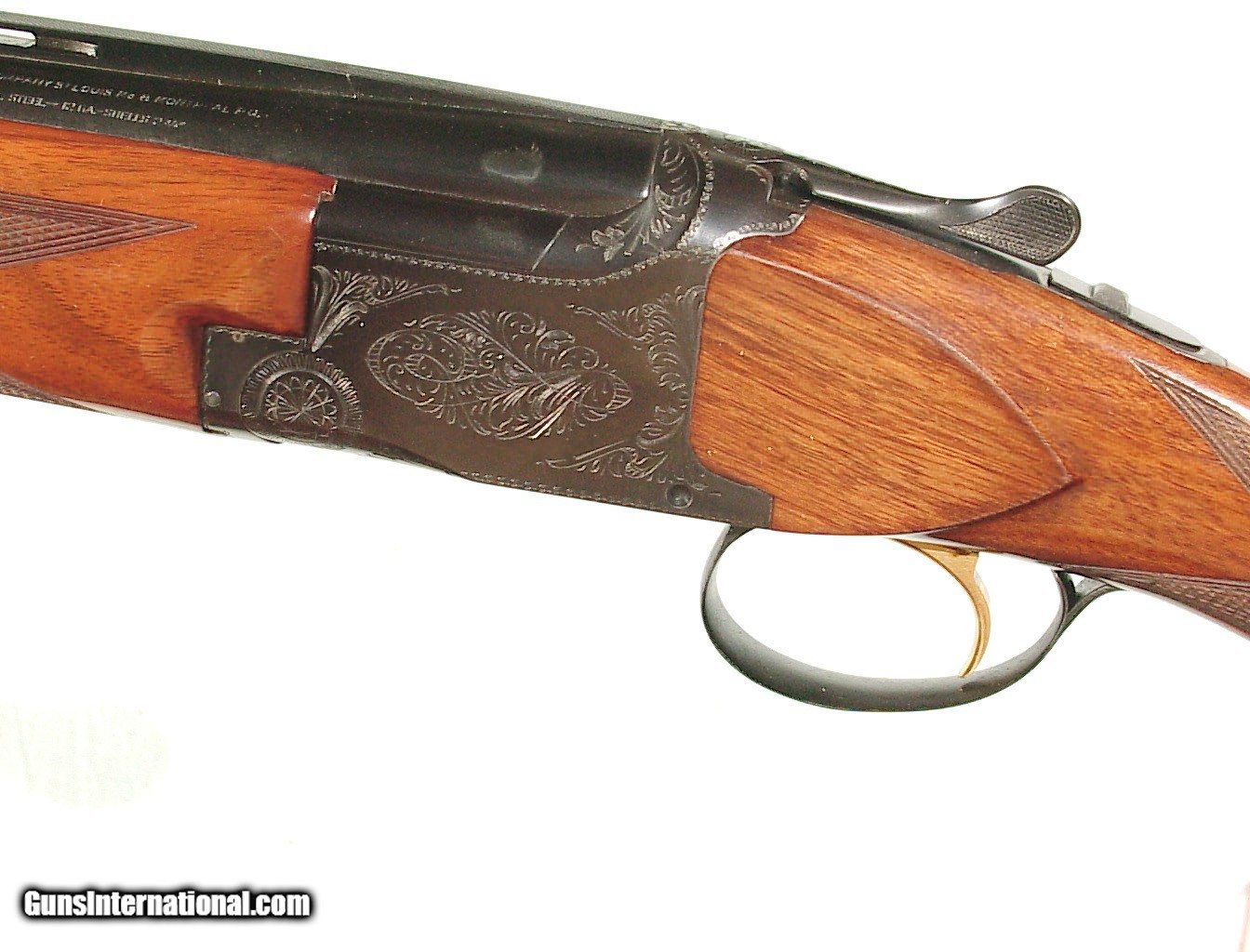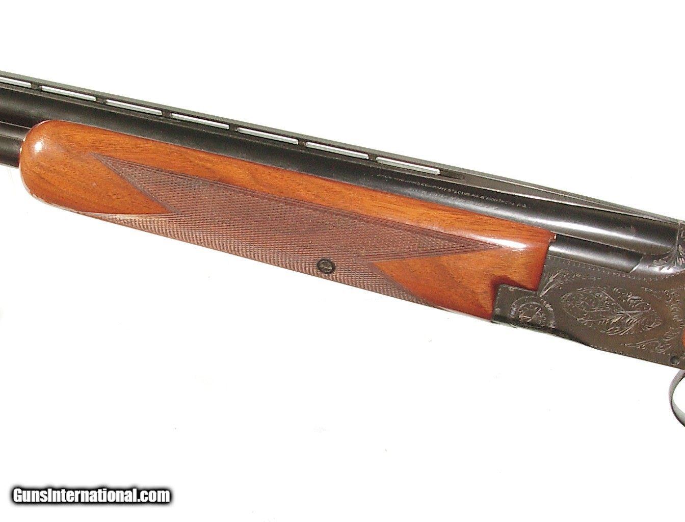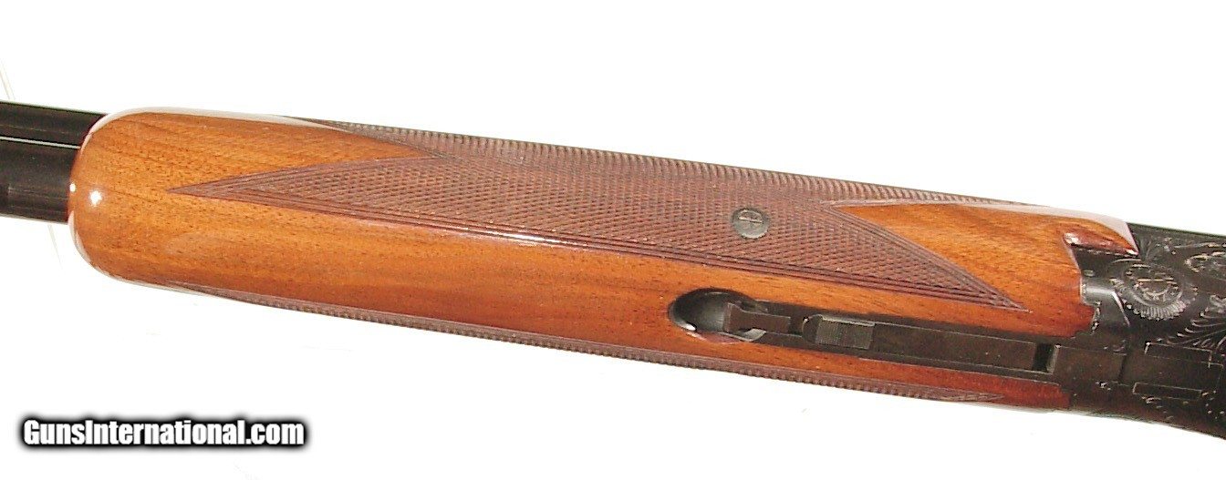 Description: 12 gauge, 26 1/2" barrels choked imp & mod. Superposed engraved action with auto ejectors selective with the top safety. Single trigger. Checkered forend and round knob pistol grip buttstock ending with factory buttplate. LOP: 14 1/4" COMB: 1 1/2" HEEL: 2 3/8" WEIGHT: 7lbs 3oz. In very near mint, unused original condition retaining 99% plus blue on the barrels and receiver. Super wood and checkering. Mint bores and mechanically perfect. 1960 mfg. SOLD Curio/Relic: Yes |
