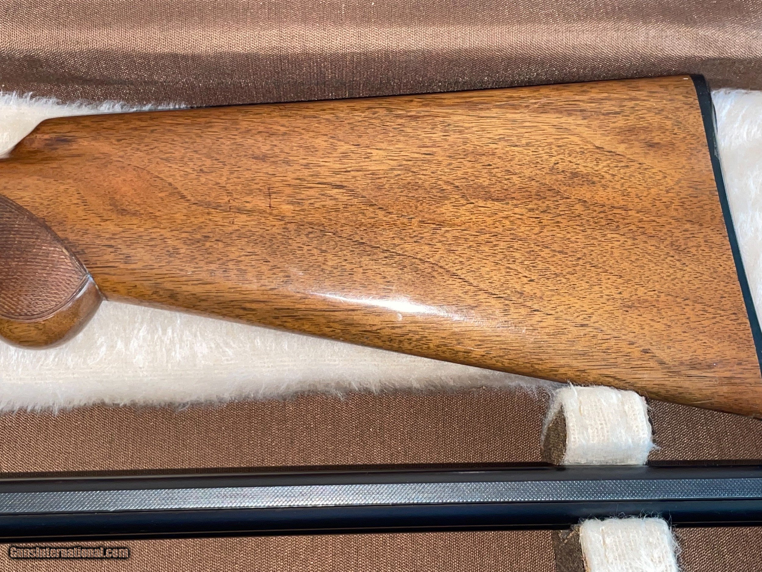 Description: SOLD! Thank you Curt! Belgian Browning Superposed O/U 20 Gauge with 28" barrels, RKLT, Great overall ORIGINAL condition, Very litte wear of any kind. "Airline" Case. (I always called these nice cases Hartman cases, but I am told that is not correct. 1964 Production. What is not to like? In my opinion, VERY little. It would be VERY hard to improve upon this example. Don't confuse this with the more common 26" guns. (those are great too, just much more frequently encountered and much less expensive as a result). Choked Mod / Full. Perfect for Pheasants and lots of other bird hunting to boot. Top lever WELL right of center. Very well cared for throughout its lifetime. Again, Original finish as to wood and metal, NOT like many ohters that have been "reconditioned as new". Standard (modern!) dimensions to factory Browning buttplate i.e. in this case, 14 5/16" LOP. Weighs a svelte 6 pounds 4.8 ounces and balances perfectly. Very nice condition "Airline" Case. If you have genuine interest, please give me a call. Thanks for your interest, and please see my other ads. I am listing more Superposed Brownings with 28 and 30" barrels. SOLD Shotgun Gauge: 20 Gauge Manufacturer: Browning Model: Superposed Barrel Length: 28 Chambers: 2 3/4 Ejectors: yes Condition: Excellent ++ Metal Condition: Excellent + Wood Condition: Excellent ++ Bore Condition: excellent Triggers: single selective Fore End: field LOP: 14 5/16 Weight: 6 pounds 4.8 ounces Manufacture Date: 1964 Chokes: Mod / Full Case: Hartman Item Location: Dallas TX |