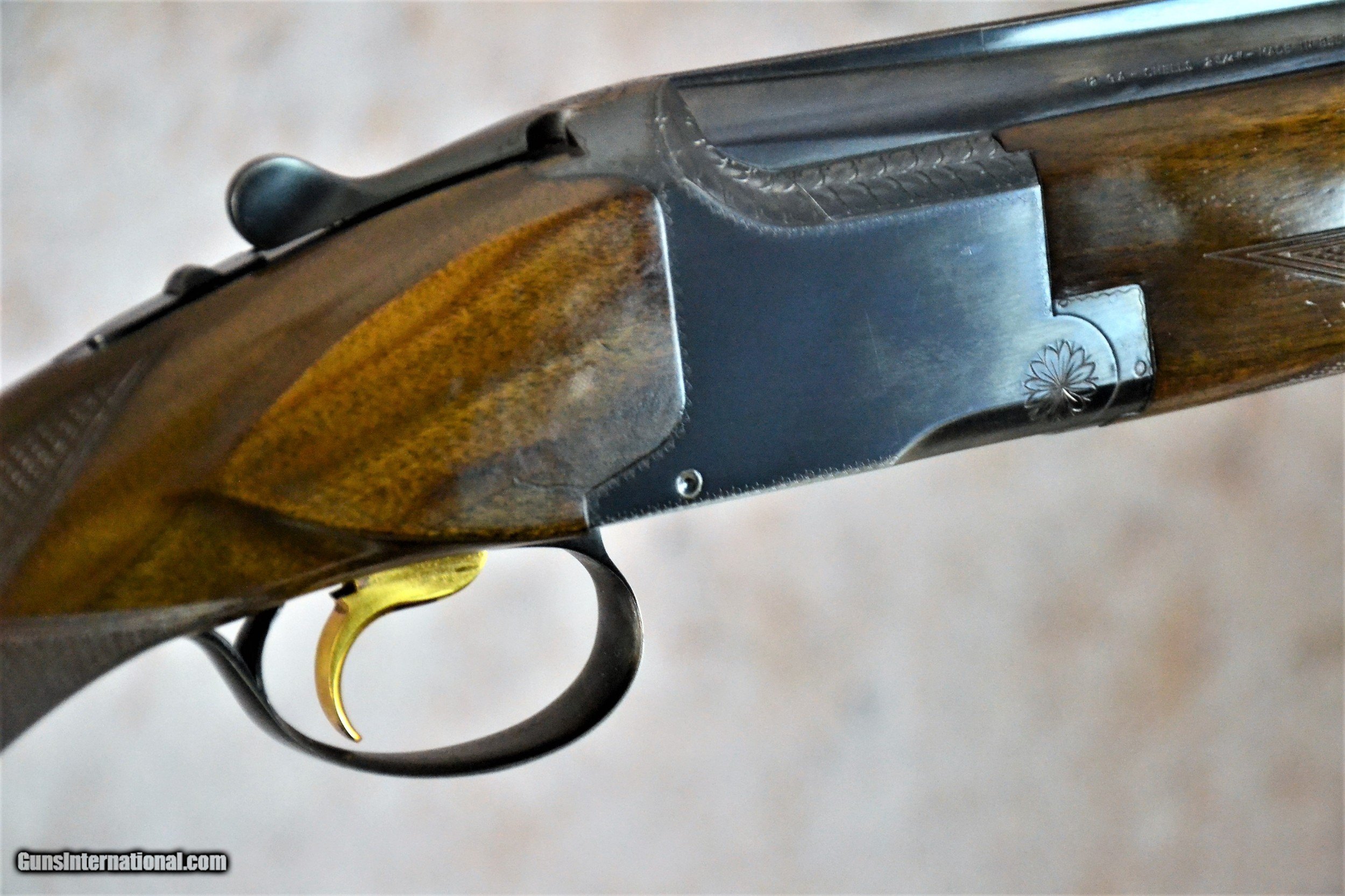 Description: Belgian Browning Superposed Trap 12g 30" SN:#8K3RR65875~~Pre-Owned~~ This shotgun is in good condition for the age of a Belgian made gun . Federal firearms laws do not allow us to ship firearms directly to you. Please contact us for ordering and shipping information. Gauge: 12g Barrel Length: 30" Chamber: 2 3/4" Chokes: Thin Walled Chokes .721 Length of pull: 13 1/4" Weight: 7lb 6oz Drop at comb: 1 3/8" Drop at heel: 1 3/4 SOLD |
