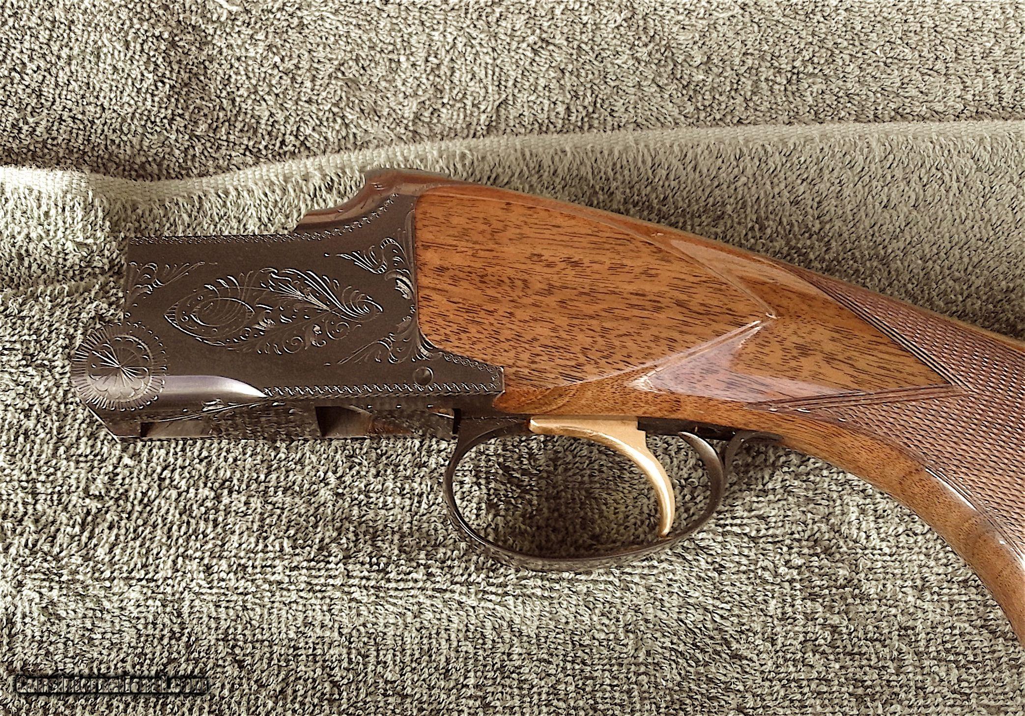 Description: Collectors and Superposed enthusiasts this shotgun is New and Unfired (Not a scratch on it) - Belgium Made 1970 - Browning Superposed Lightning 12GA – 2 Barrel Set – Nice Browning Case. 26” and 30” Barrels. The 26” Barrel is Choked Modified and Improved Cylinder with 2 ¾” Chambers. The 30” Barrel is Choked Full and Improved Modified with 3” Chambers. I bought this gun from Jim Engle at The Great Outdoors Gun Shop in Atwood, Ks. Jim purchased the gun from a local gun owner who assured him it was not fired and every indication is that it hasn't been. Includes Browning paper work with the correct serial number in ink but no other hand writing or signatures. $50 Priority Mail Shipping to FFL from Goodland, Ks. Made in Belgium. Not a mark on either the barrels or the wood. These camera phone pictures do not properly depict the condition of this exceptional shotgun. Checked by Artisan Gunsmith Bart Miller in Denver, Colorado and found no evidence of salt. SOLD Manufacturer: Browning Model: Superposed Lightning Condition: New Metal Condition: New Wood Condition: New Bore Condition: New Gauge Info: 12 |