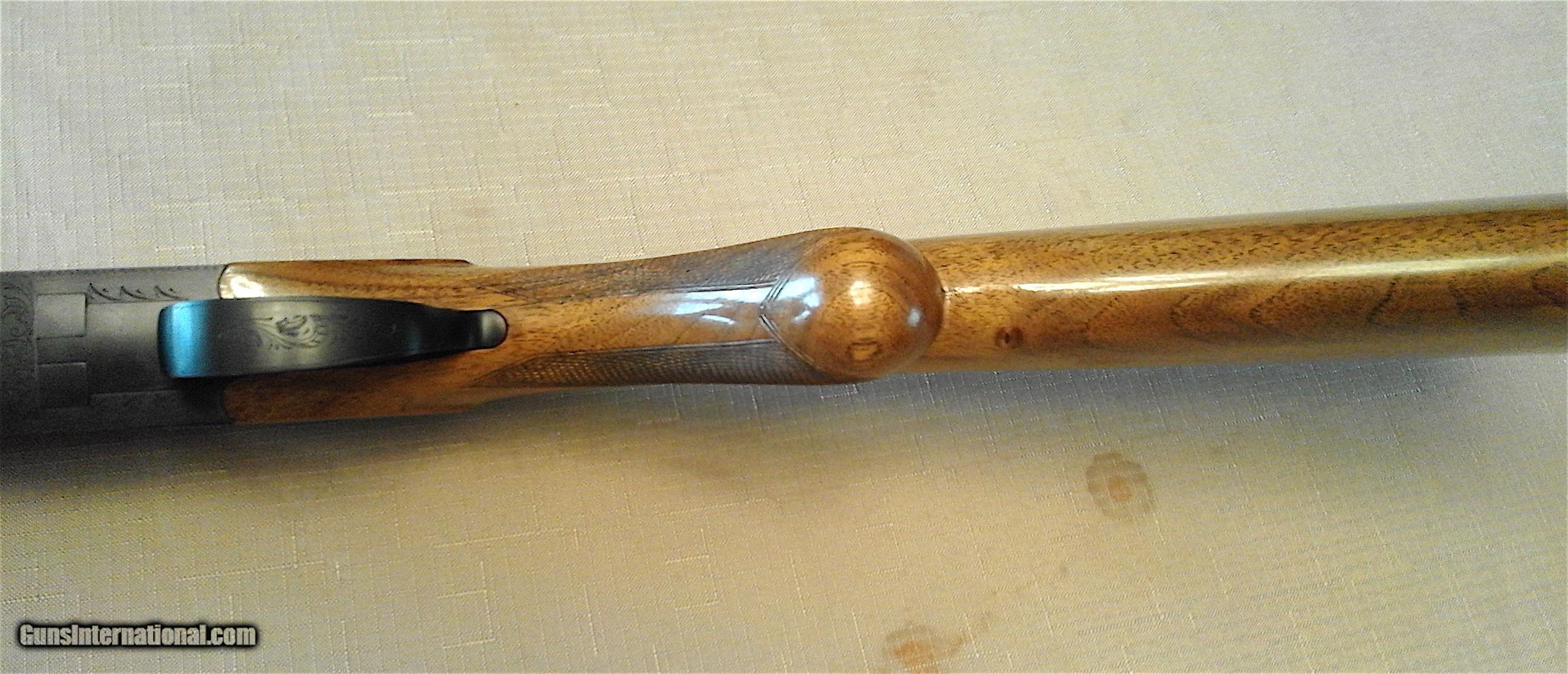 Description: Very Nice 1968 Belgium Manufactured Browning Superposed Magnum Shotgun with 3" chambers and 30" Barrels. The Over Barrel has been bored to a Modified choke and the Under Barrel is a Factory Fixed Modified Choke. Nice Blonde Wood that has been professionally refinished with Tru-Oil. No Cracks or Significant Dents. The Receiver and Barrels were completely refurbished and reblued by the Lakewood, Colorado Gun School. There is some slight corrosion and tarnishing that was left untouched on the right side of the receiver. Nice Tight Action. $40 priority mail shipping from Goodland, Ks. SOLD Manufacturer: Browning Model: Superposed Chambers: 3 Condition: Very Good Metal Condition: Very Good Wood Condition: Very Good Bore Condition: Mirror Barrels: 30 Barrel Type: O/U Action: O/U Triggers: Single Selective Gauge Info: 12 Stock: Wood Fore End: Wood Butt Pad: Factory Recoil Rib: Ventillated Finish: Tru-Oil Manufacture Date: 1968 Chokes: Fixed Case: none Item Location: Goodland, KS |