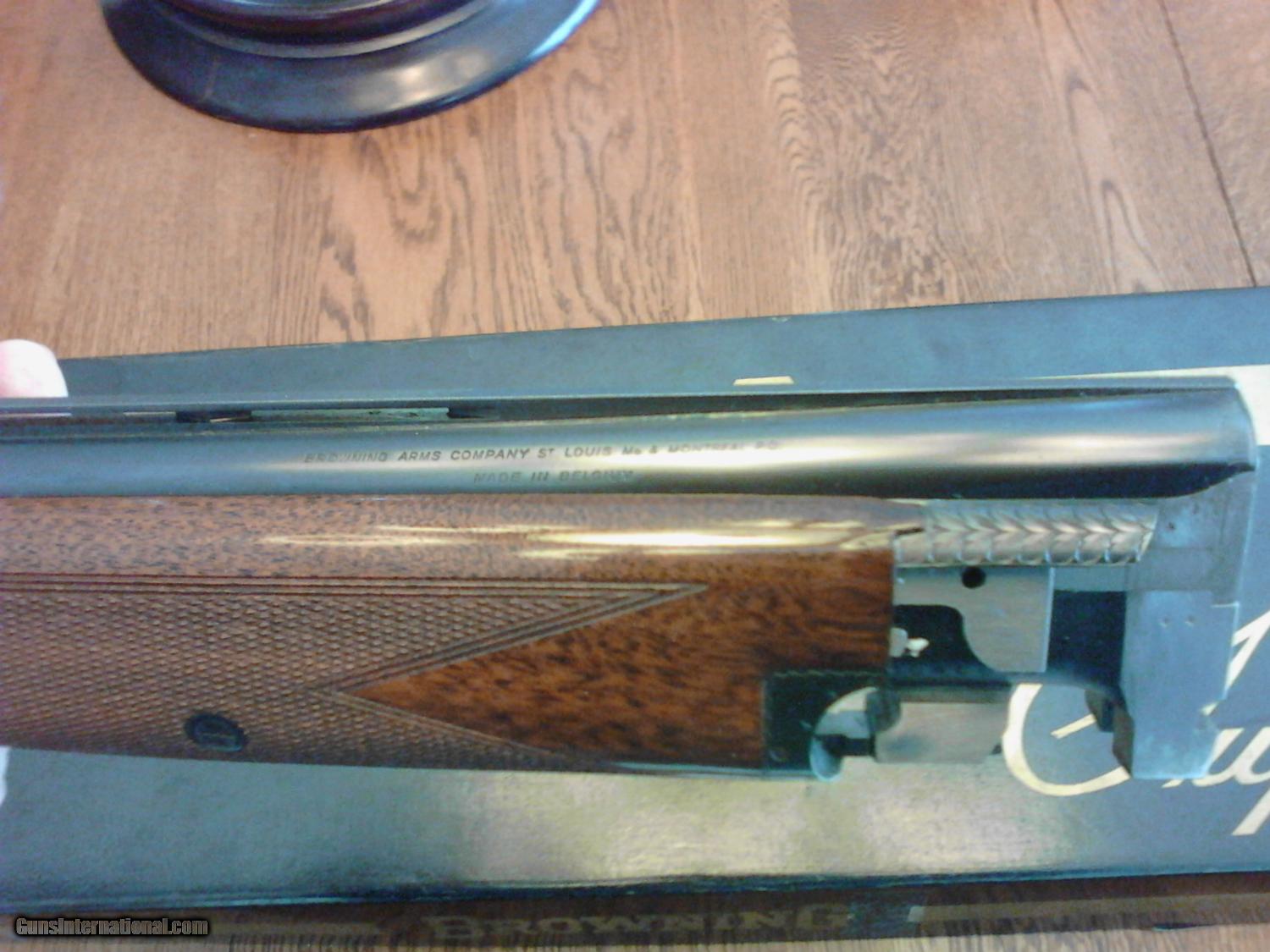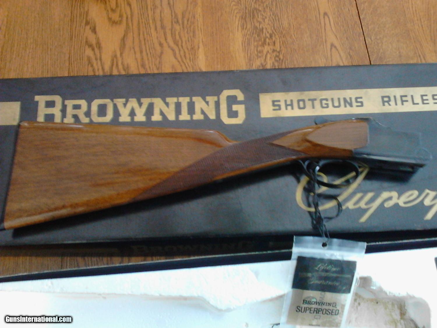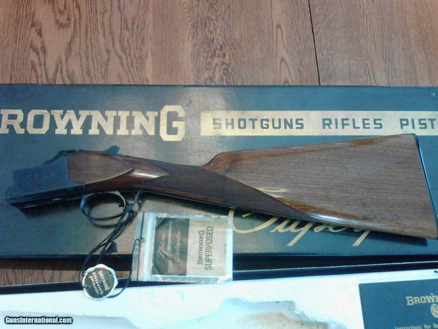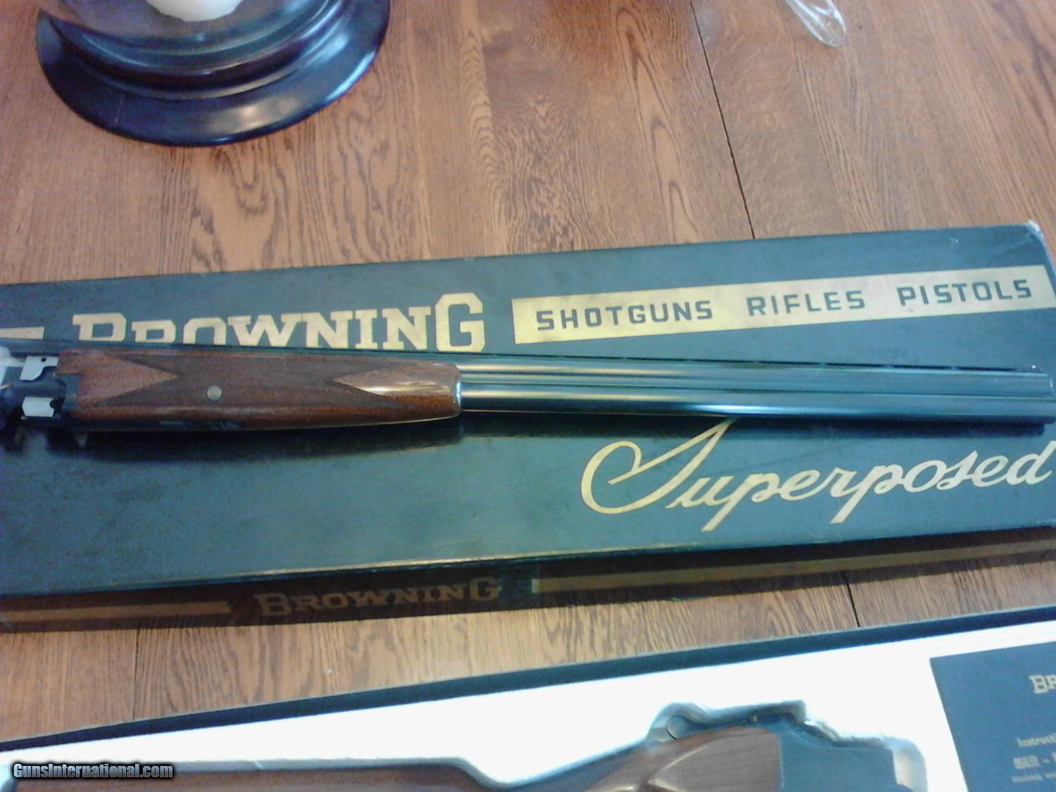 Description: Browning superposed super light weight 20 ga 26.5" Belgium made full and mod chokes with original hang tags and very good box.Mfg 1969. SOLD Manufacturer: Browning Model: Superposed Super lightweight Serial Number: 58488V69 Caliber Info: 20ga Bore: 2 3\4 Chambers: Full mod Ejectors: Yes Condition: Excellent Metal Condition: Excellent Wood Condition: Excellent Bore Condition: Excellent Barrels: Excellent Barrel Type: Vent rib 26.5 Action: O U Triggers: Single selective Gauge Info: 20 Stock: Super light straight english Stock Dimensions: UN cut Butt Pad: Original LOP: 14 1\4 Rib: Vent Finish: Blued Manufacture Date: 1969 Chokes: Full Case: Box Item Location: Findlay Ohio |