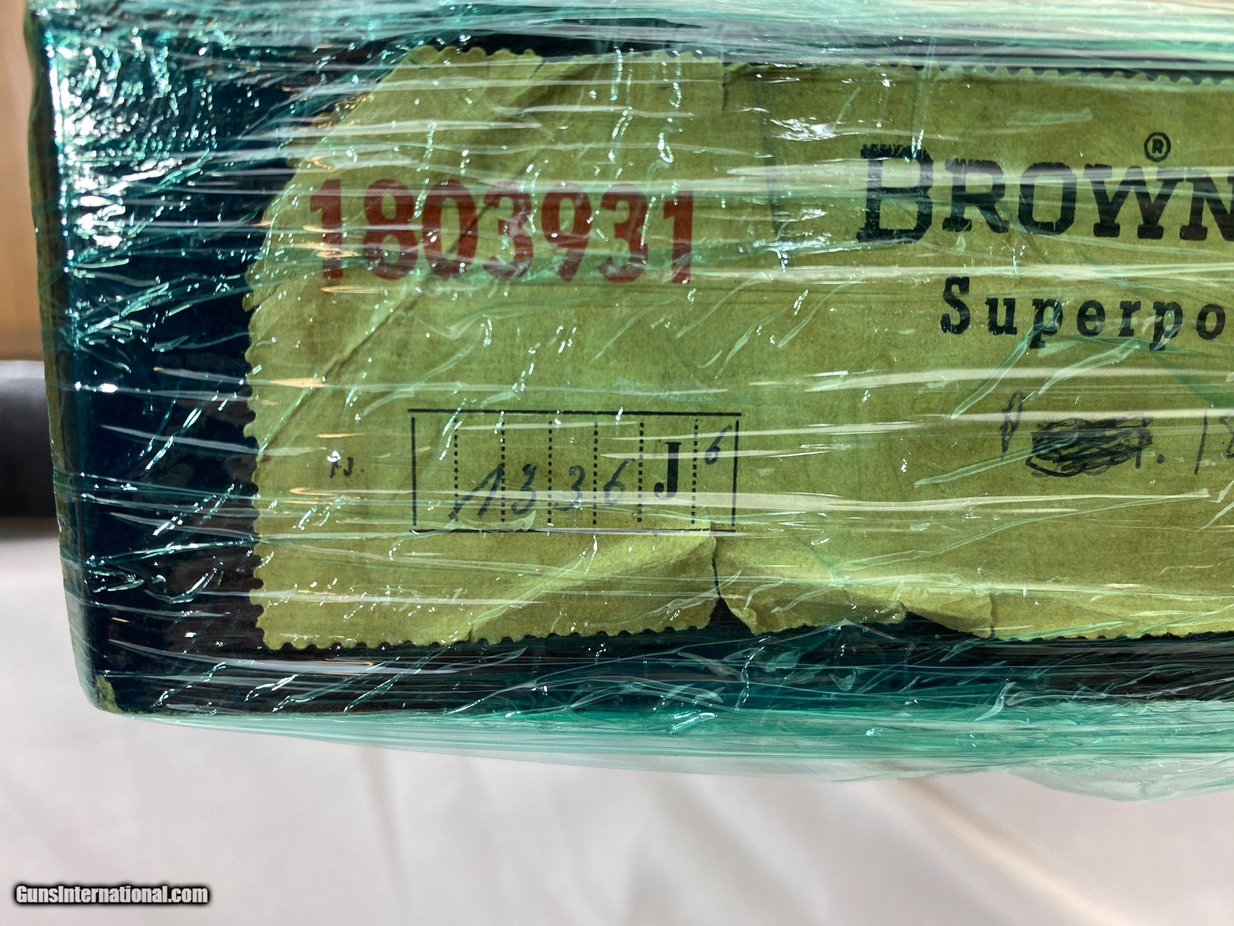 Description: Truly a beautiful shotgun with it's original box in near mint collector condition. Wood has a few light handling marks, very sharp checkering, an honest 96-97%. Metal looks PRISTINE, only very light forend takedown wear, 99%+ condition. Box is excellent with MATCHING END LABEL, plastic wrapped for preservation, all information still present and legible! A true rarity for the serious Superposed collector!!! Shipping is $75 (priority mail with insurance). Call or text me at 4023142729 if you have any questions or concerns! Thank you and have a wonderful day SOLD Curio/Relic: Yes Manufacturer: Browning Model: Superposed Caliber Info: 410 Chambers: 3” |