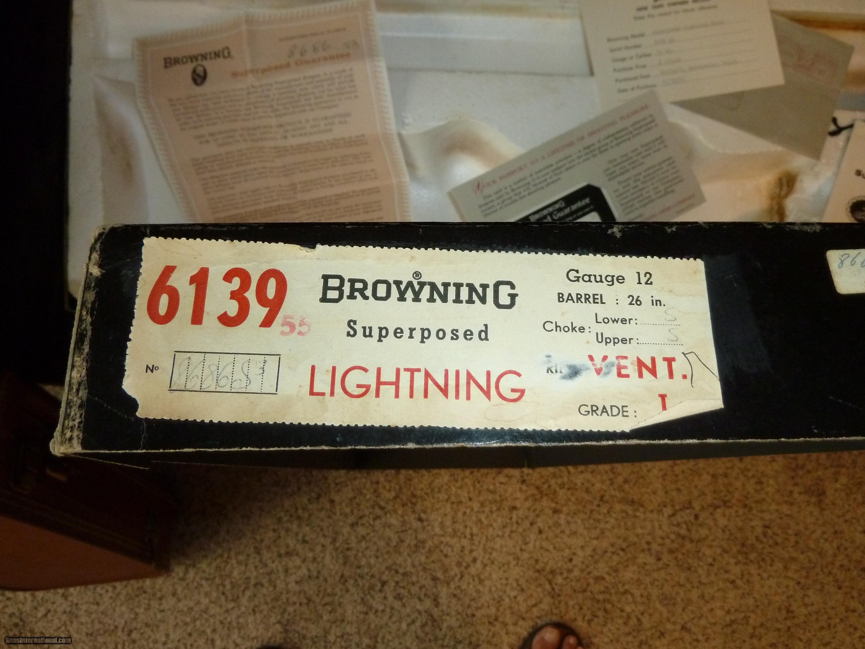 Description: SOLD...SOLD!...IN 1 DAY NO LESS...THANK YOU GUNS INTERNATIONAL!! Browning Superposed Lightning, 12 Ga, 26.38 inch Barrels, SK-SK. SN 86xxS3 is 1963 Manufacture date. Round knob, long tang. I purchased this Shotgun, new, unfired, in the box, from the late Rod Fuller, personally, several years ago. Some of the photos are his. I think you can make them out. It Included, ALL the material that came with it when new, in a very good cond box. All the paper work, cards etc, as seen in the photos, were in the box! The breach is "tight" as a new one should be. Since new I've shot 6 boxes of AA ammo thru it. That's all. Can't call it new any more but I'll call it as near new as a used Superposed can get. I'll go so far as to assume there might be something that shows use, but I don't see it!. White Line Pad. 14 1/8 to 14 1/2 LOP (Rod noted it as a 14 1/2 LOP) I'll be glad to take any additional pictures, answer all questions. Please call 321-431-4170. Ga. The 3 day return policy is excluded. Reason is, one, this gun has fired 6 boxes. Two and a bigger issue for me is. 4 years ago I sold an unfired a new, Browning Auto-5, Belguim, in the box, everything included. ALL NEW! With 3 day return policy I was compelled to refund the sale for NO REASON other than buyer remorse. He came up with a pathetic reason that was no reason. It still urks me. It was difficult to say the least. Price Includes shipping FedEx. Conus only. To FFL holder. No trades please. Thank you fo looking. SOLD Manufacturer: BROWNING Model: SUPERPOSED 12 GA LIGHTNING Serial Number: 86xxS3 Condition: NEAR NEW Barrels: 26 1/2 Barrel Type: SK-SK Gauge Info: 12 |