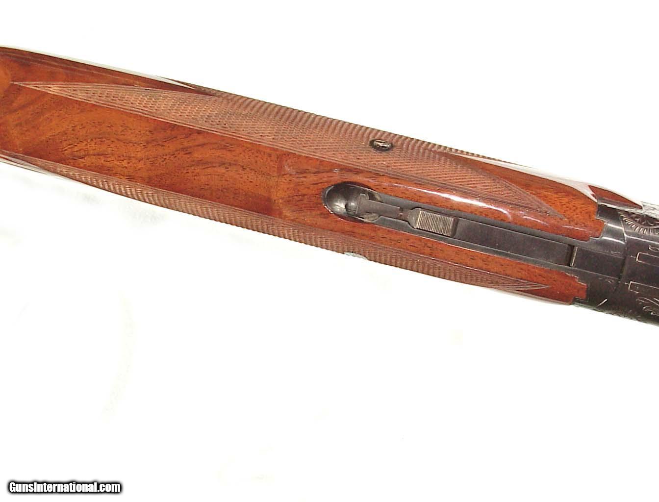 Description: 12 gauge, 28" vent rib barrel. Round knob-longtang stock ending with a factory buttplate. Grade I engraving. LOP: 14 3/8" Weight: 7lbs 15oz. Comb: 1 1/2" Heel: 2 1/2" Chokes: Lower .032" Upper: .016" Chamber: 2 3/4" In excellent condition retaining nearly all of the blue, with crisp checkering and nicely figured stocks. SOLD Curio/Relic: Yes |