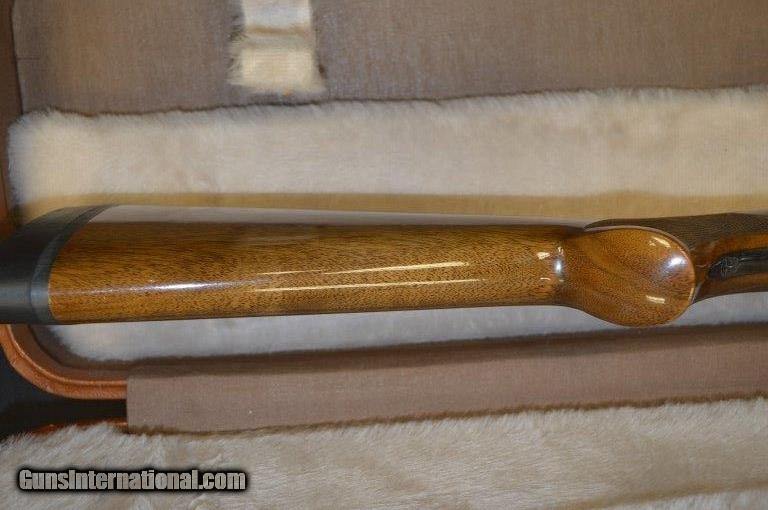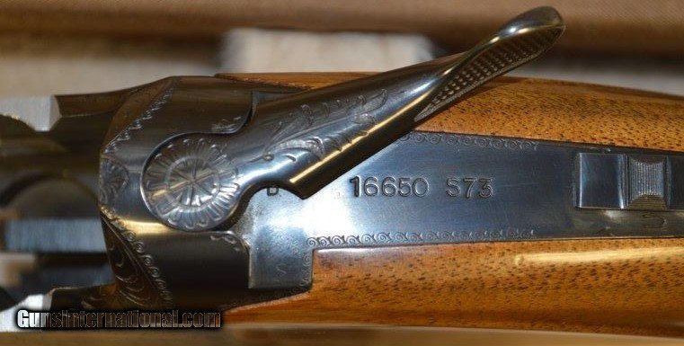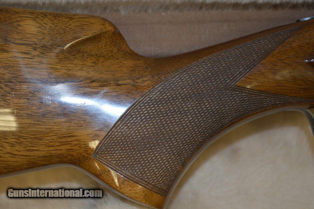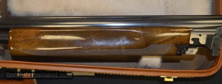 Description: SOLD *** This is a 1973 Browning 12 ga. Superposed Lightning Trap with 30 inch barrels that are Briley thin wall choked to give you the maximum flexibility when shooting. Made in Belgian, the checkering is flawless. It has 2-3/4" chambers and the bores are in very high condition; bright and shiny. The gun weighs 8 lbs 6 oz and the length of pull is 14-1/8" to a black KickEzz recoil pad. The only wear to the beautiful rust blueing is just in front of the forearm from taking the gun apart. It retains 95% of the gold on the trigger. It comes in a period Browning Airways luggage style case that is in excellent condition as well. The stock and beaver tail forearm are free of cracks with just a couple of minor impressions from pursuing birds. Add $50 for shipping & insurance. SOLD |