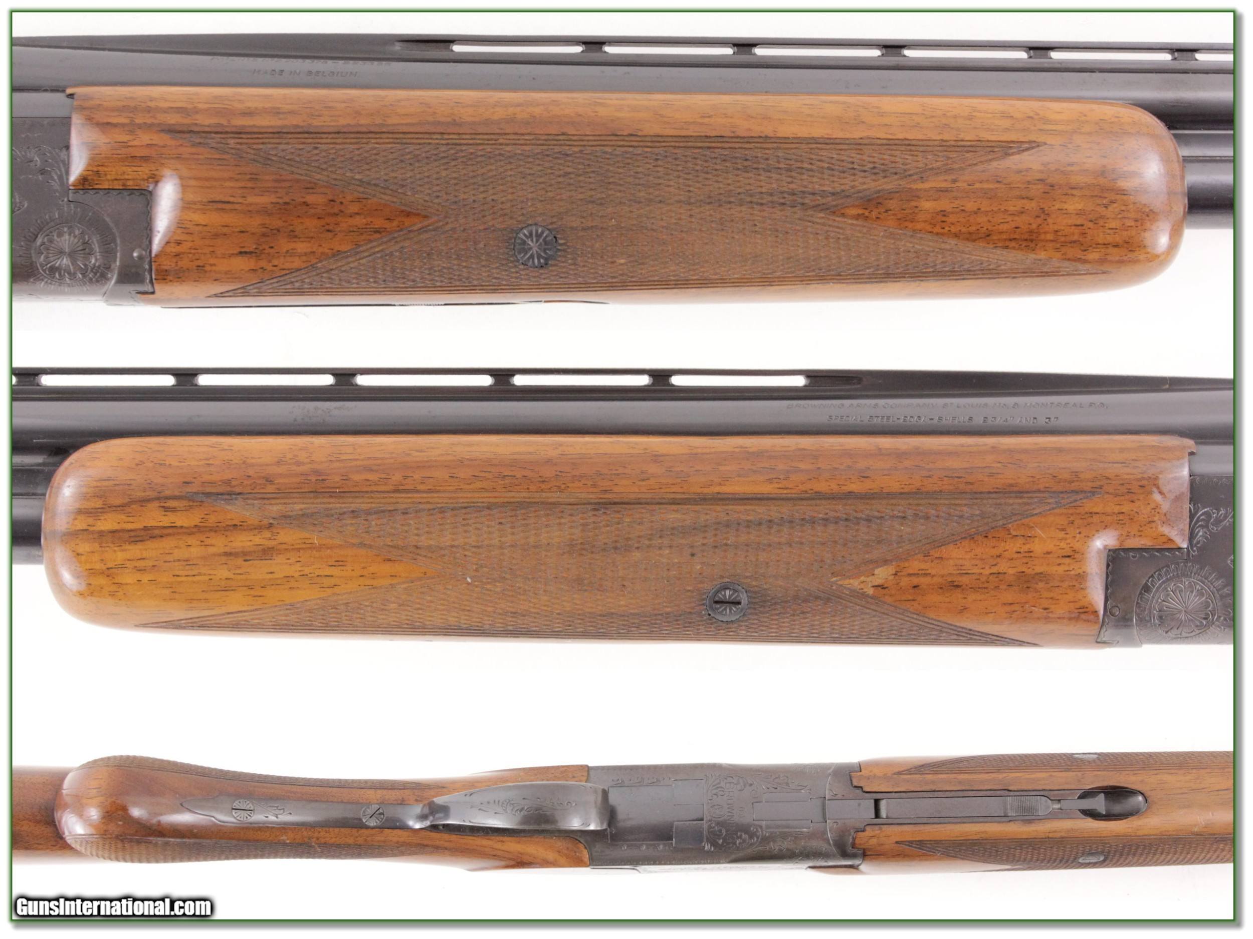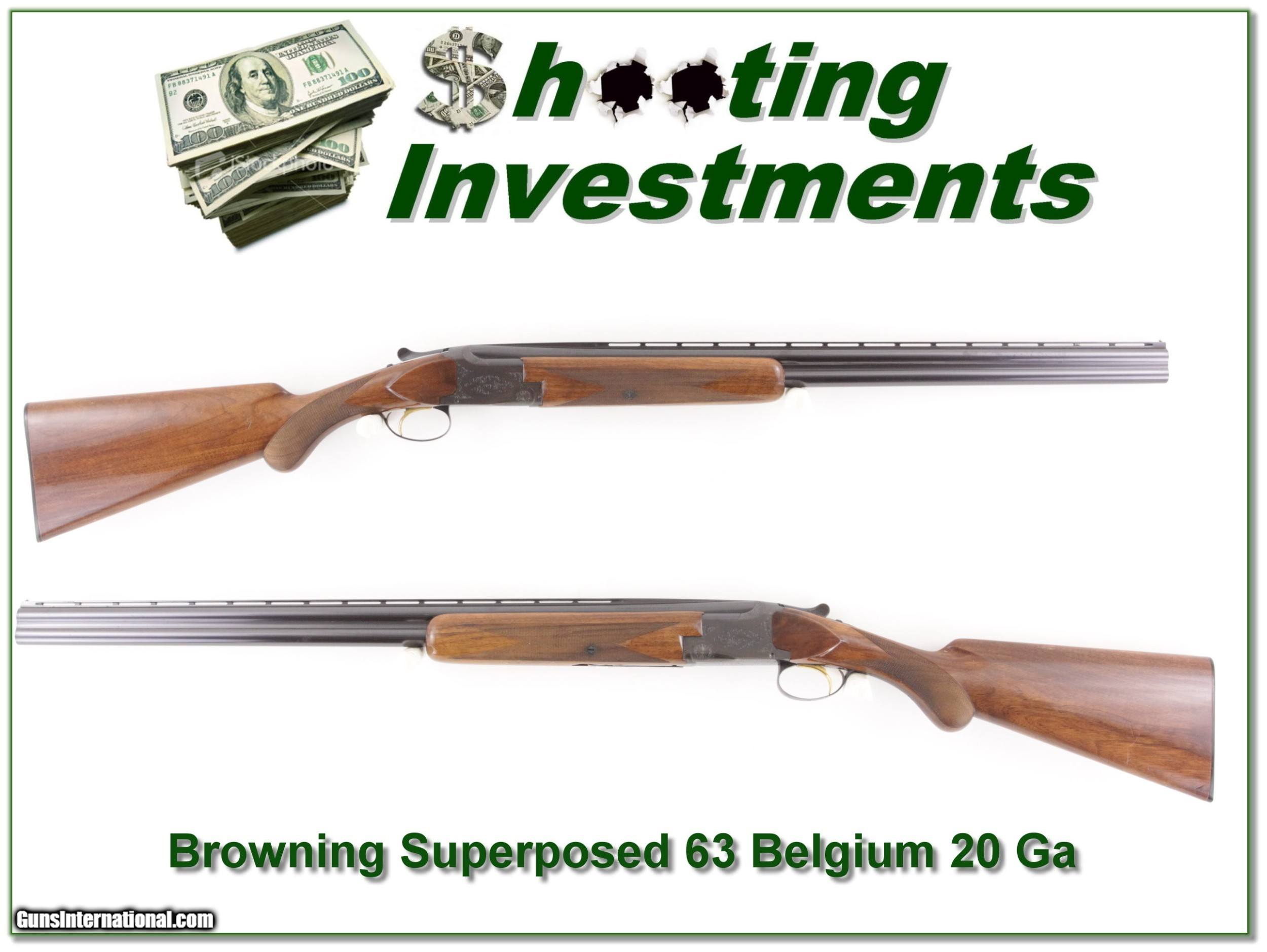 Description: This is a 1963 Belgium made Browning Superposed. It is a long tang round knob Superposed made well before any saltwood issues. The barrel blue is excellent, and the receiver has only light thinning on the sharp carry edges. It locks tight with lever right of center. The barrels are 26.5in choked IC and Modified. The wood has a few marks. It will make a classic field gun or could easily be restored to new condition. Shipping with insurance is $49. Please email me with any questions or larger pictures. (Consign your quality firearms with Shooting Investments for only 12%! Let me know if you have any you would like to sell!) 19-1445 Payment: Payment is by Money Order, Cashiers Check or Personal Check. I can now also accept Credit Cards (MasterCard, Visa, Discover & American Express) with a 3% convenience fee. PayPal can be used for some items but never for firearms. Shipping: The shipping charge will be listed in each description. It is $39 for most firearms. Some heavy guns or those insured for over $2000 will be higher. Shipments to Alaska and Hawaii are higher because air shipment is required. Most firearms are shipped on Tuesday and Thursday and usually in 5 days of receipt of payment. We package all shipments carefully and insure them. Optics are shipped Priority Mail and most other non-firearm shipments are shipped First Class. Returns: Our return policy is simple. If for any reason you are not pleased with your purchase, you may return your item for a full refund of purchase price. Ammunition cannot be returned. It is important to us that you are happy. Guns cannot be fired or dissembled before returning them and they must be returned in the same condition as received. Notification of a return must occur with-in 3 days of receipt at your dealer. Shipping, convenience and dealer fees are not refundable and are the responsibility of the buyer. Lay-a-way: If needed, we offer a 60 day lay-a-way option on most firearms. It is 1/3 now, 1/3 in 30 days and 1/3 in 60 days. Lay-a-way firearm sales are final and if not completed the first payment cannot be returned. Consigning your firearms with Shooting Investments: We will help you get top dollar for your firearms. While most local guns shops charge 20% or more, our fee is only 12% with a minimum of $75. At your local gun shop it might take months to sell. Selling on-line provides instant access to thousands of interested buyers. You won’t find any other on-line dealer willing to sell your firearms for only 12% or listing every gun on 3 separate s. Selling through an House typically costs the seller 15% and the buyer an addition 15% (so 30%) and you have to wait several months to sell and longer to receive funds. If properly priced, we will sell your firearms in a few weeks. Send us an email or give us a call and we’ll explain how easy it is for you to get top dollar. Trading: Trading for use is really just buying your gun to re-sell. If you have a gun you want to trade, please email a picture and we will let you know what we can give or it. You will always get more if we sell it for you on consignment. Help for California Buyers: We are happy to ship to California. It is the buyer’s responsibility to make sure any item you buy is legal in your state. We are also happy to help with your purchase of a firearm from someone other than us. If you see a gun you would like to buy but the seller can’t or won’t ship to California they can ship to use and we’ll then ship it to your California dealer. The cost for this service is only $30 + shipping. Let us know if we can help! SOLD |