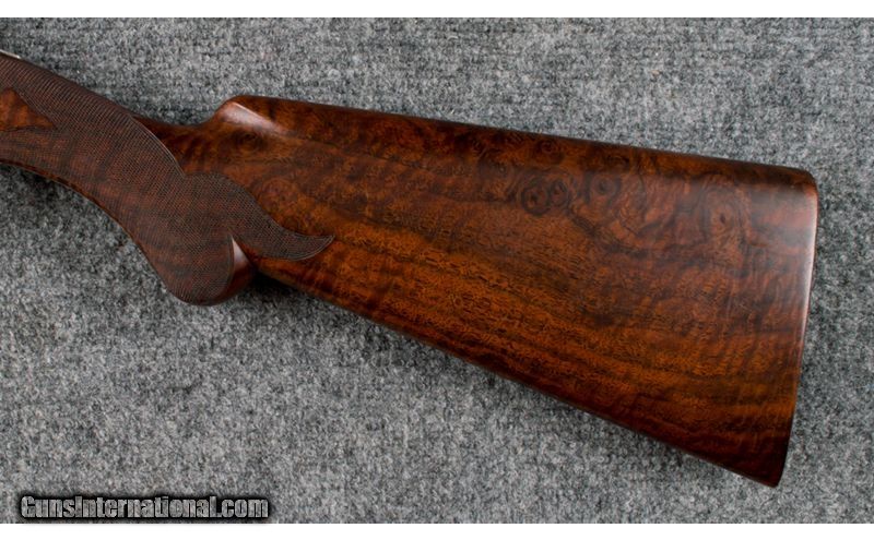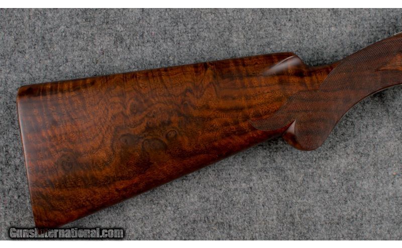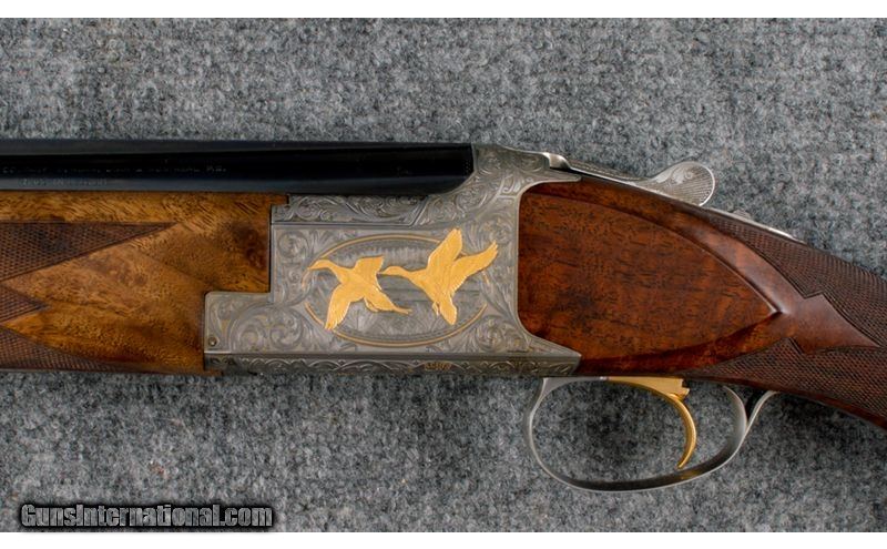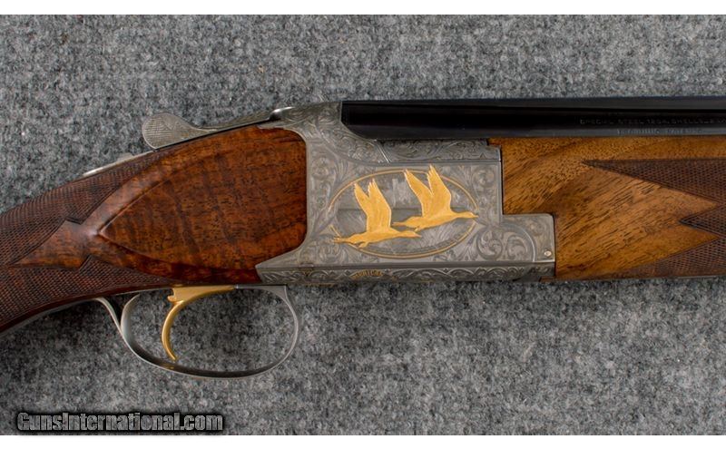 Description: Original Belgian-made Superposed American Pintail Edition, 062 of 500. This is a 1980's vintage high grade custom Browning shotgun, elegantly engraved with seven gold inlays, and with a deluxe walnut stock and forearm. A beautiful shotgun in condition. 12 Gauge SOLD Metal Condition: Excellent, Seven Gold Inlays, Engraved Wood Condition: Excellent Barrels: 28 inch Stock Dimensions: 14 inch LOP Fore End: Figured Walnut Butt Pad: Checkered Chokes: Full, Modified Item Location: Albuquerque, NM |