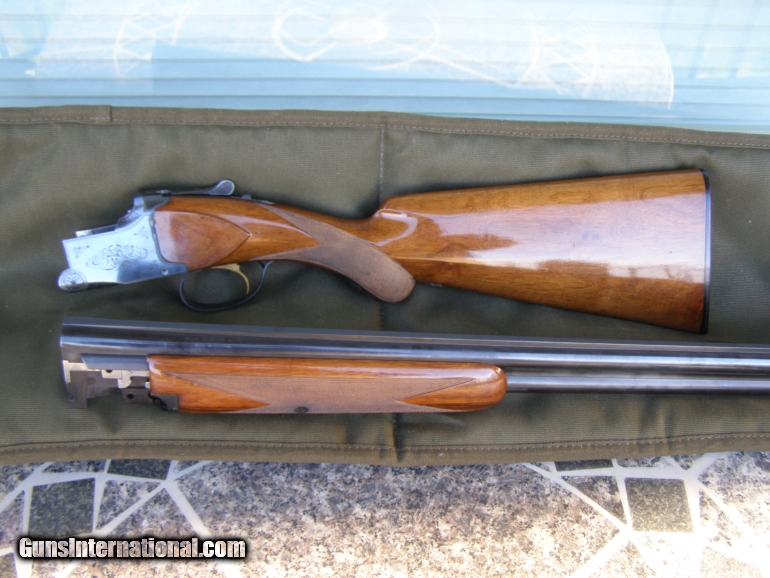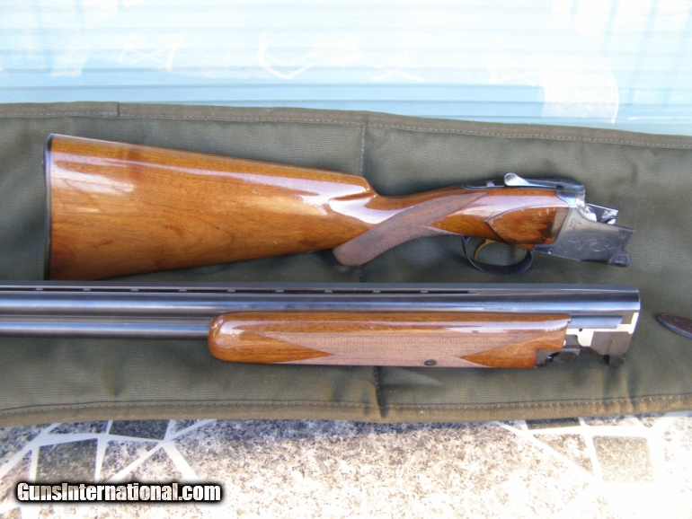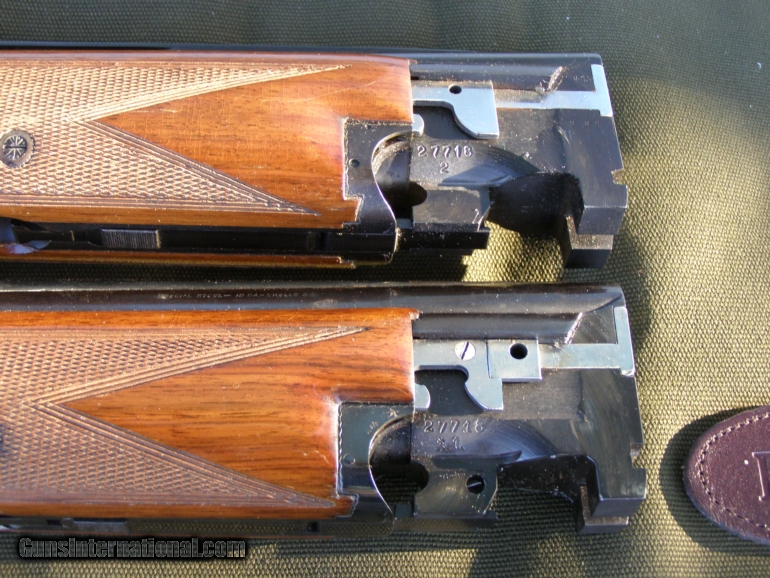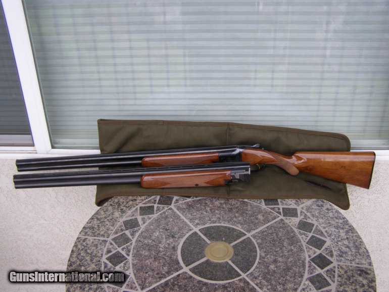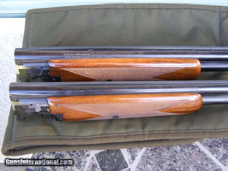 Description: BELGIAN BROWNING "Superposed" 12 gauge two (2) bbl shooting system set. Both bbls 28" lengths choked MOD/FULL w/solid rib & SKT/SKT w/vent rib respectively. ALL serial numbers match from the factory. Standard factory stock specs. Mirror bores. Preferred round knob, long tang uncut buttstock w/Browning buttplate. 1952 mfr. Professionally refurbished by Art's Gun & Sports in Hillsboro, MO. Practice some skeet before hunting season & swap bbls to harvest those pheasants. FREE Christmas shipping & insurance to your lower 48 FFL dealer! SOLD |