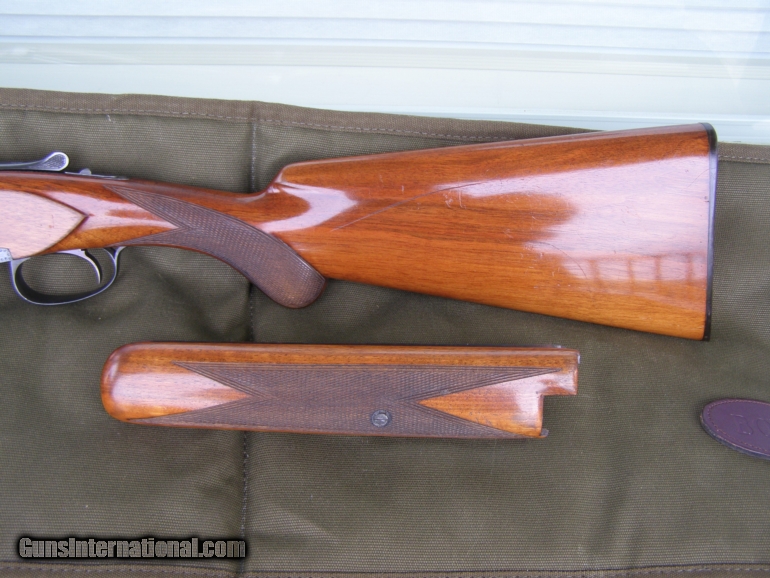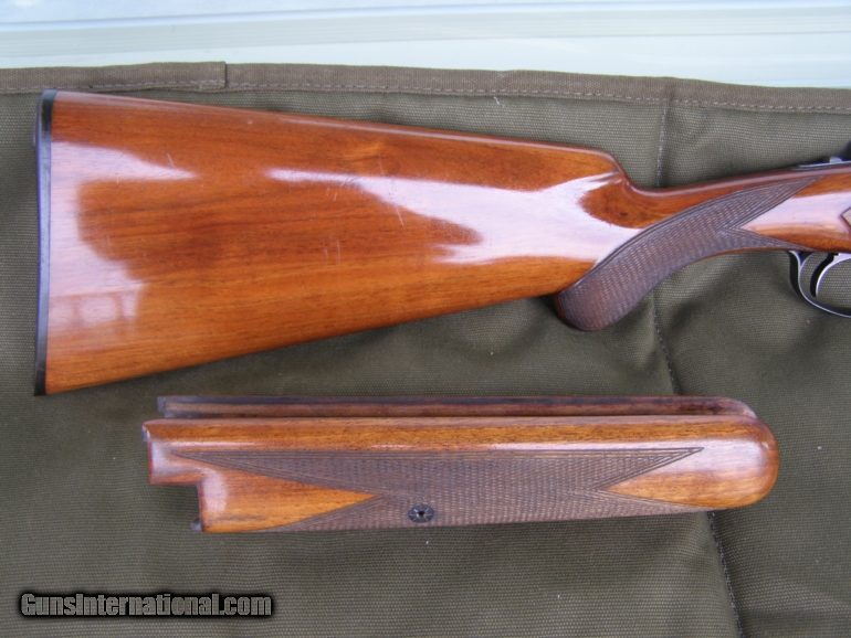 Description: BELGIAN BROWNING Superposed B-25 twenty gauge, round knob, long tang, matched wood set ONLY. Forend w/crossbolt & buttstock fits 20 gauge & smaller gauge guns w/long trigger guard tang & "Y" top tang. Very good uncut condition. Stock left on receiver for pics to show overall firearm condition. Please add $25 for shipping & insurance to lower 48 addresee. AS is, no return. SOLD |