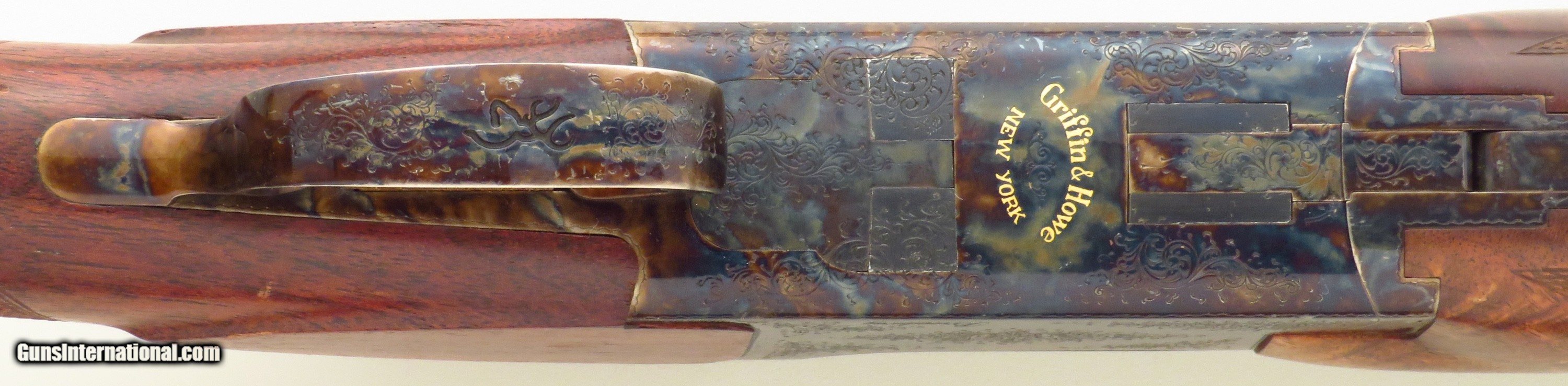 Browning B-125 Broadway 12, 1990, Griffin & Howe, 30-inch, Invector, AA walnut, leather pad, Lallemand engraving, color case, 14.2 LOP, 95 percent