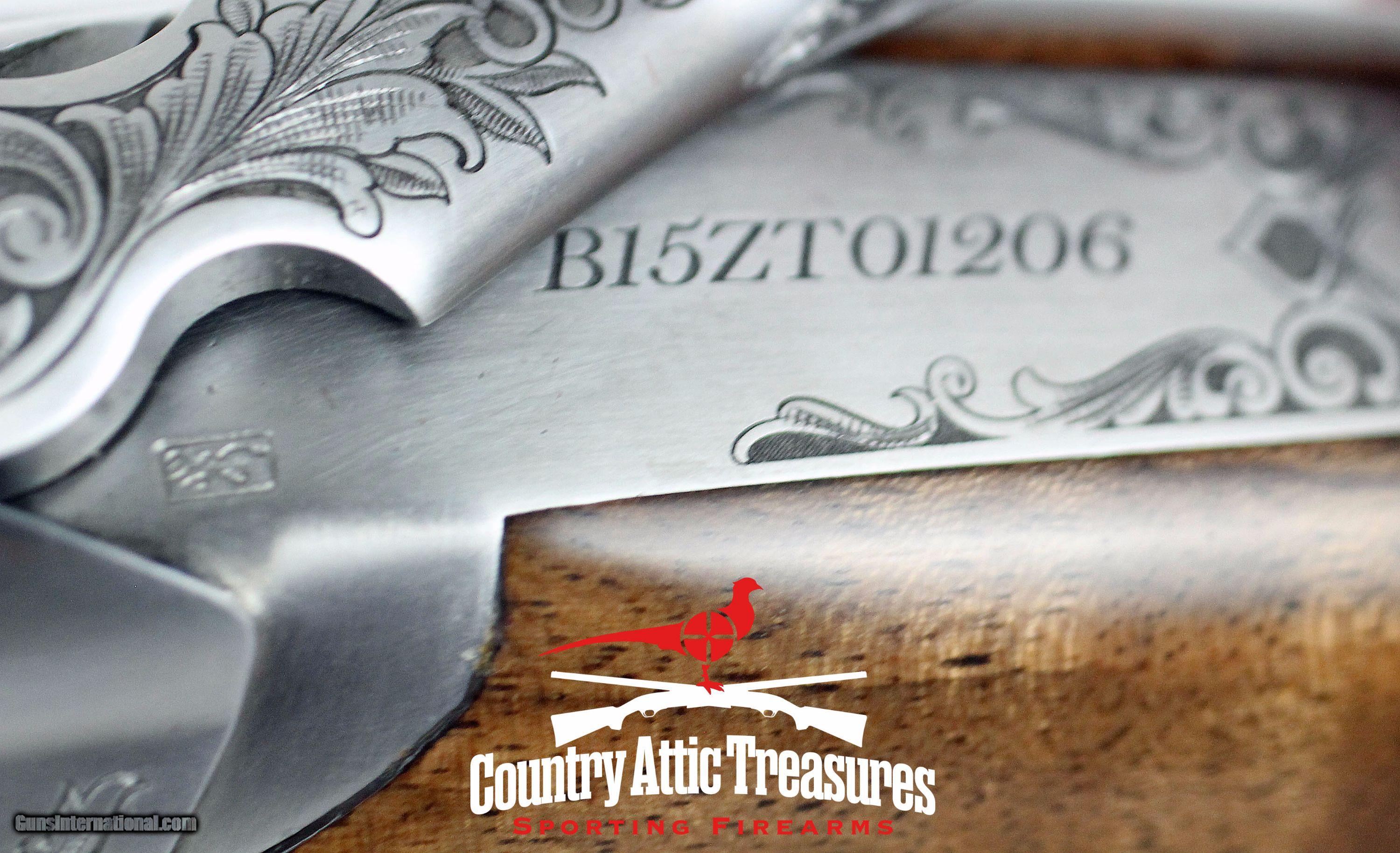 Description: This Browning B-15 is a Grade D example in 12 gauge with 32″ barrels. The B-15 is a labor of love from the Belgian crafstmen who assembled it with great care, this is a very rare and significant shotgun, therefore it's best to let Brownings describe it: Unveiled in 2015, the B15 Beauchamp is the latest addition to the John M. Browning Collection. This is the shotgun that Browning aficionados have been waiting for. Ninety years, in fact, since the B25’s groundbreaking debut. Like its companion, the B15 has been exquisitely enhanced by the world-renowned gunsmiths of Fabrique Nationale de Herstal. This ensures balance, reliability, precision engineering and the finest of aesthetic finishes. At the heart of the B15 is the locking system and technical features shared with the legendary B25, plus new and innovative elements such as performance enhancing mechanical triggers. This blend speaks volumes to those who truly know their shotguns. One other significant addition to performance is the new low profile receiver which adds to noticeably to its natural pointabiity. To learn more about the John M Browning collection, visit their page; Born in 1855, John M Browning was an American who dedicated his life to creating firearms of exceptional quality and revolutionary construction. But Belgium is home to his most lasting legacy. First manufactured by the Fabrique Nationale d’Herstal in 1925, the B25 was the worlds first over and under shotgun. It was the result of creative genius working in harmony with over 400 years of manufacturing expertise. Often copied, the B25 has never been bettered, and remains an icon for shooting experts everywhere. John Moses was a tireless innovator and a legend in the truest sense. It’s befitting therefore, that his name should grace a range of exquisitely crafted shotguns and pistols. The John M Browning Collection is the very best of what we do. SOLD Manufacturer: Browning Model: B-15 Beauchamp Ejectors: Y Condition: New Metal Condition: New Wood Condition: New Bore Condition: New Barrels: 32 Gauge Info: 12 Gauge |