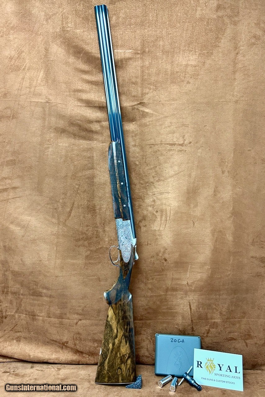 Description: Just Arrived at Royal Sporting Arms | Browning B15 Grade E 20GA 30" Over-Under Shotgun | USED 30" Optima DS choked barrels, parallel hand-filed game rib. Nitride finished action featuring finely engraved sideplates with highly detailed scrolls, mystic scenes. Exhibition grade pistol grip stock with long-tang, grip cap and skeleton butt plate, fully checkered faux three piece forearm. Excellent condition, well cared for only minor signs of use. Features of the Browning B15 Grade E 20GA 30" Over and Under | 25090062: