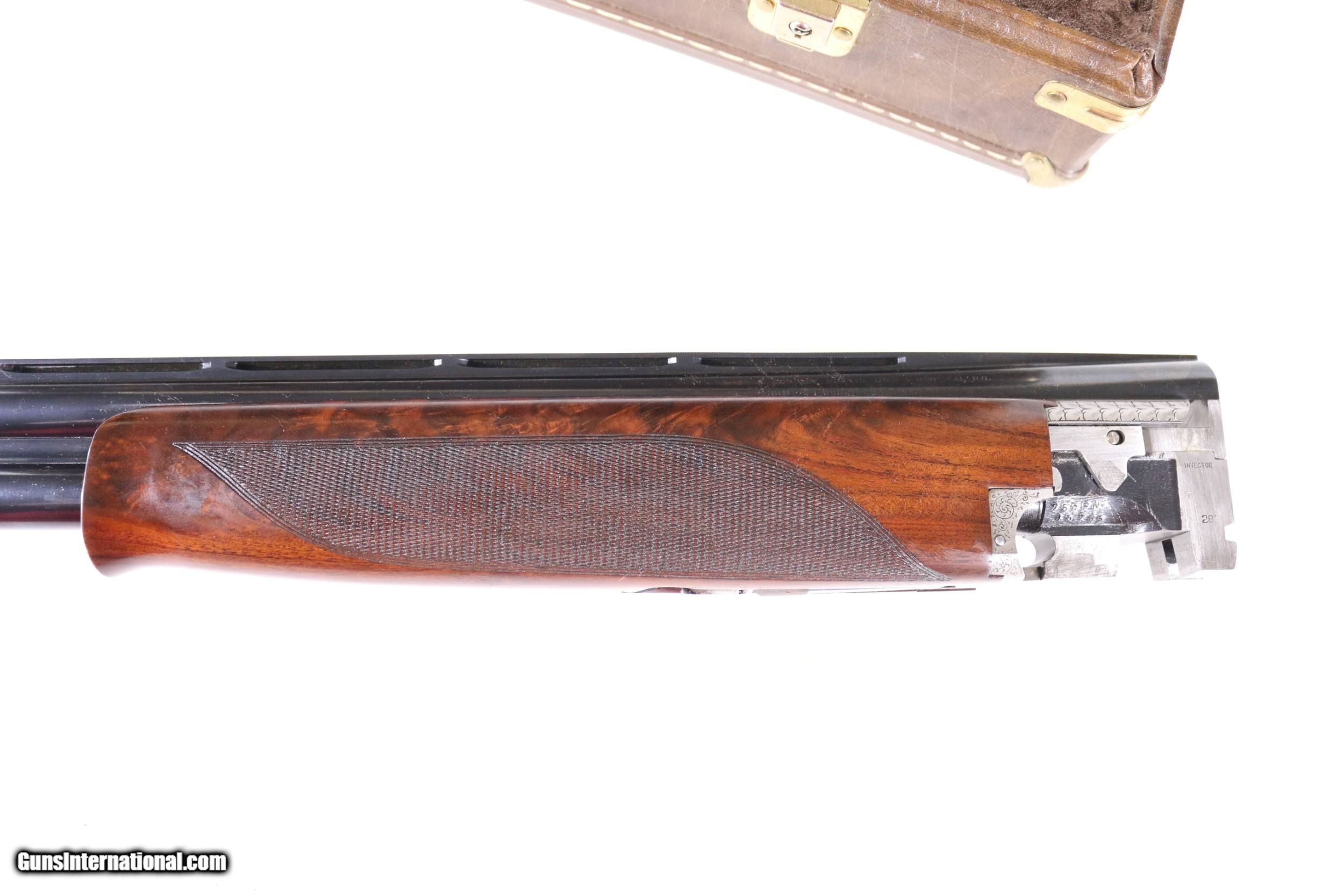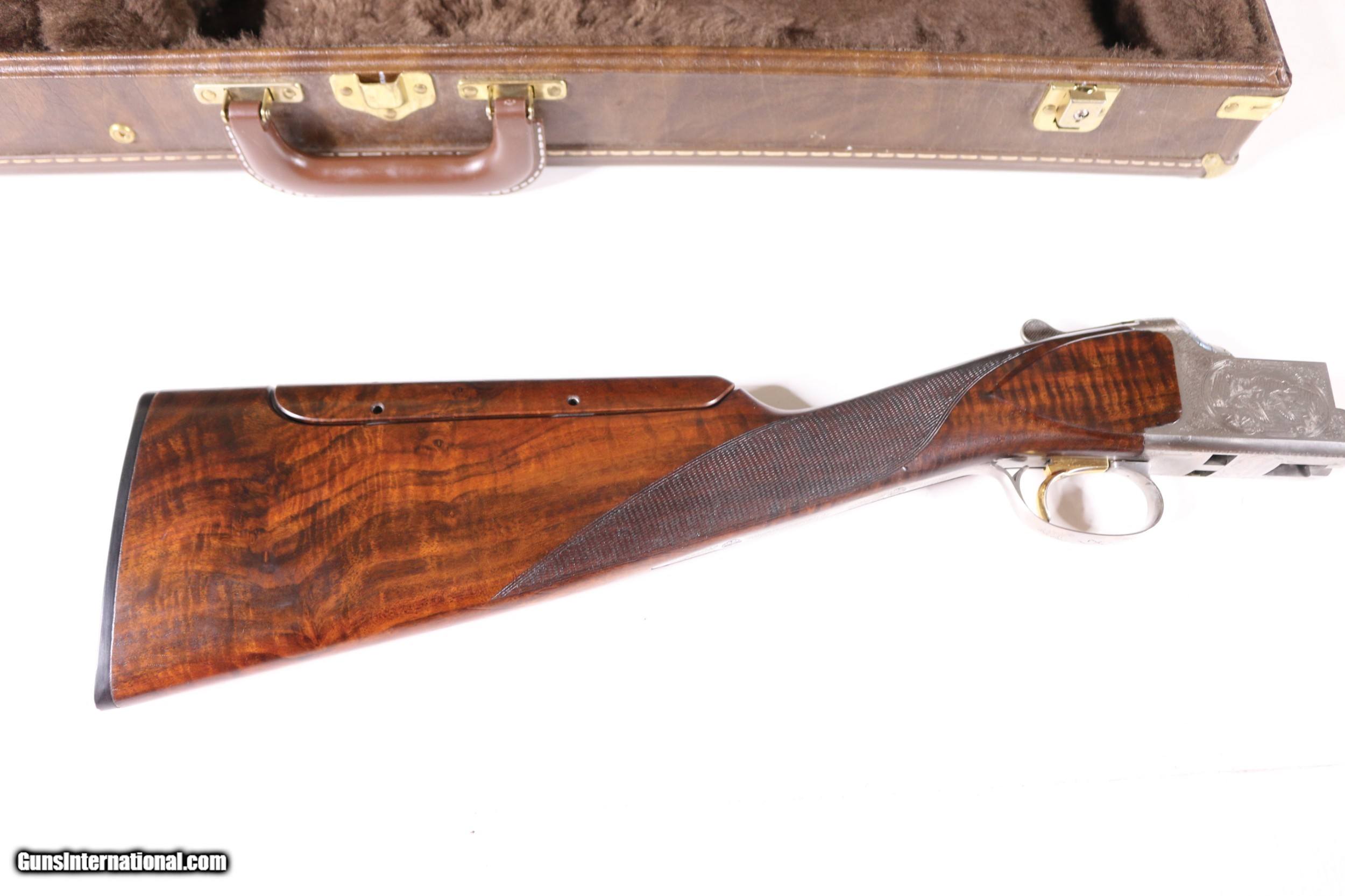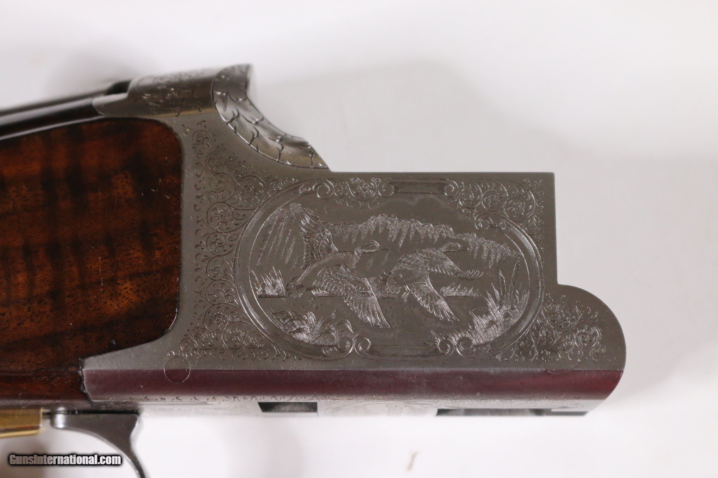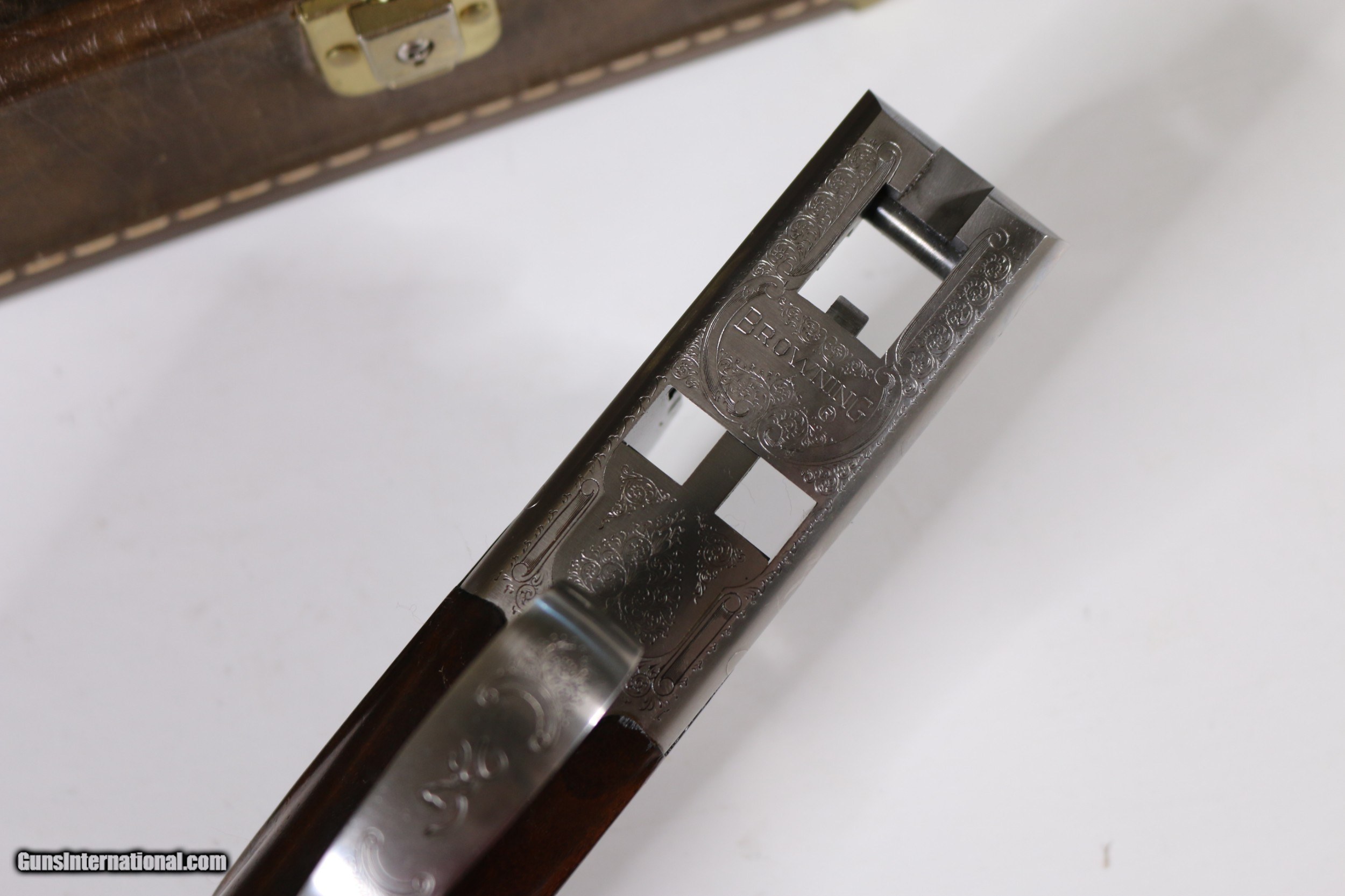 Description: MADE IN BELGIUM IN 1989. SIGNED BY MASTER ENGRAVER. BARRELS ARE 28 INCHES WITH A VENT RIB AND CHOKED WITH THE INVECTOR SYSTEM. 98% WITH FACTORY CASE. PLEASE ADD $50 FOR SHIPPING. RETURN POLICY: We offer a 3 day return policy. Items must be returned in the same condition as received. Notification must be made with-in 3 days of receipt at dealer. All fees are non-refundable no exceptions. LAY-A-WAY: We offer a 60 day lay-a-way with a 1/3 up front and 1/3 every 30 days. Once started all sales are final with no exceptions. CONDITIONS OF SALE: Art’s Gun Shop makes no express or implied warranty or representation with respect to items being advertised or sold. In no event shall Art’s Gun Shop be held responsible for correctness of description, representation, or warranty of items sold by them or their representatives. All items sold as collector items. All liability concerning the use of any weapons purchased from Art’s Gun Shop or its representatives is assumed by the purchaser. CONSIGNMENTS: We do not take consignments, but we are strong buyers for collections. We are near the St. Louis area and can travel to the most of the Midwest. Feel free to call 636-944-3630 with any questions. SOLD Manufacturer: BROWNING Condition: EXCELLENT Metal Condition: EXCELLENT Wood Condition: EXCELLENT Bore Condition: EXCELLENT Action: O/U Triggers: SINGLE/GOLD LOP: 14 3/8'' Rib: VENT Weight: 7 LB 10 OZ |