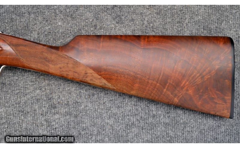 Description: For your consideration, a Browning model B27 chambered in 12 Gauge. Produced for only the period of 1973-5, the B27 is built on the same action as the Liege. Furniture consists of a schnabel-tip forend and English-wristed stock; both of hand-checkered, oil-finished marble-figured walnut. The coin-finish receiver is embellished with scenes of a pair of pheasants at left and a pair of ducks at right with mid-coverage scroll on the balance. Features include an inertial trigger, non-automatic safety-selector, automatic ejectors, and Invector pattern chokes. The constrictions of the included chokes are as follows: Mod, IC, IM, and Full. This piece is of Belgian manufacture. 12 Gauge SOLD Chambers: 2.75 Metal Condition: Excellent Wood Condition: Excellent Bore Condition: Excellent Barrels: 28 Triggers: "Single, Inertial Stock Dimensions: 14" LOP Fore End: Checkered Butt Pad: Textured Weight: 7.25 lbs Sights: Rib and Bead Chokes: Invector Item Location: Cheektowaga, NY |