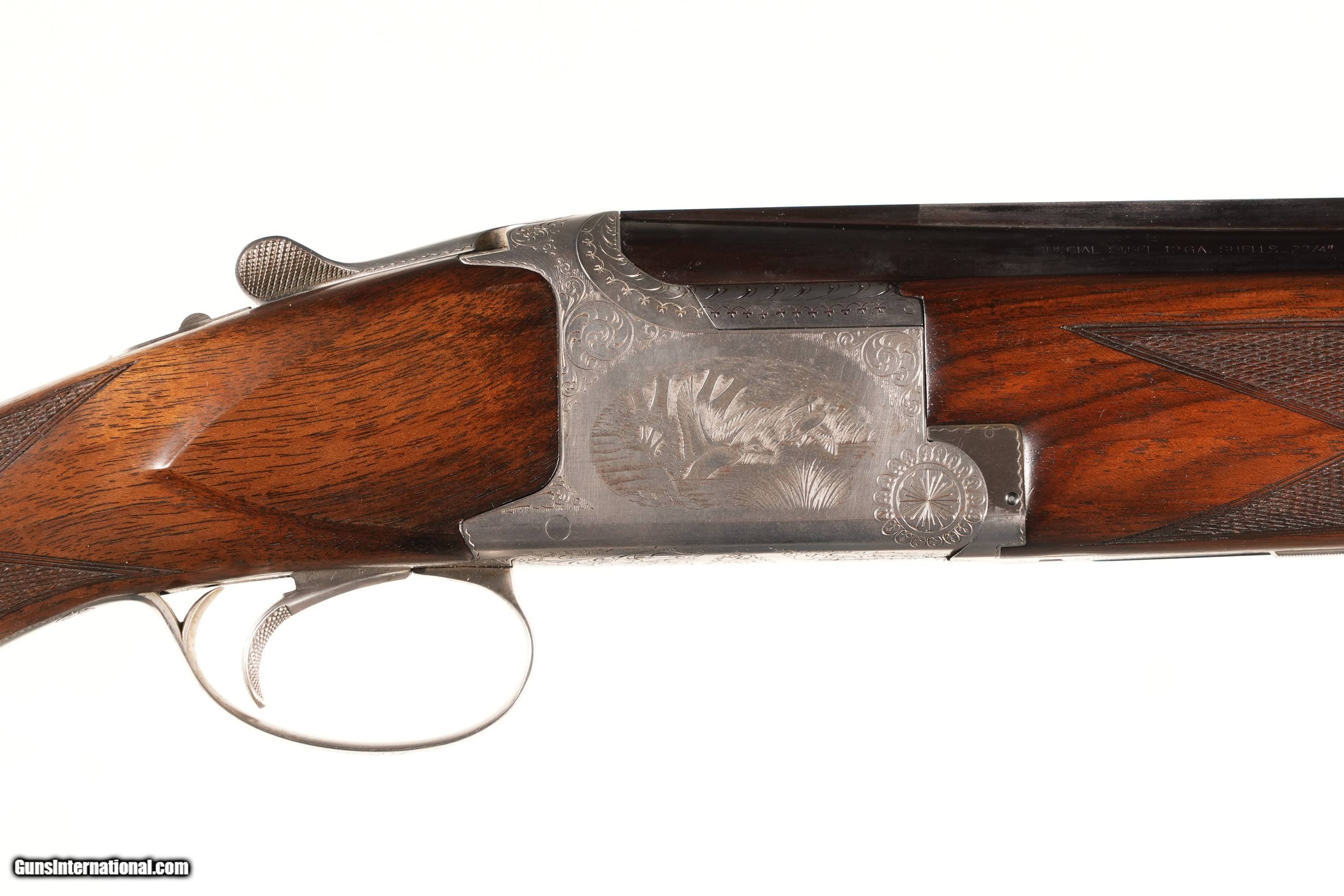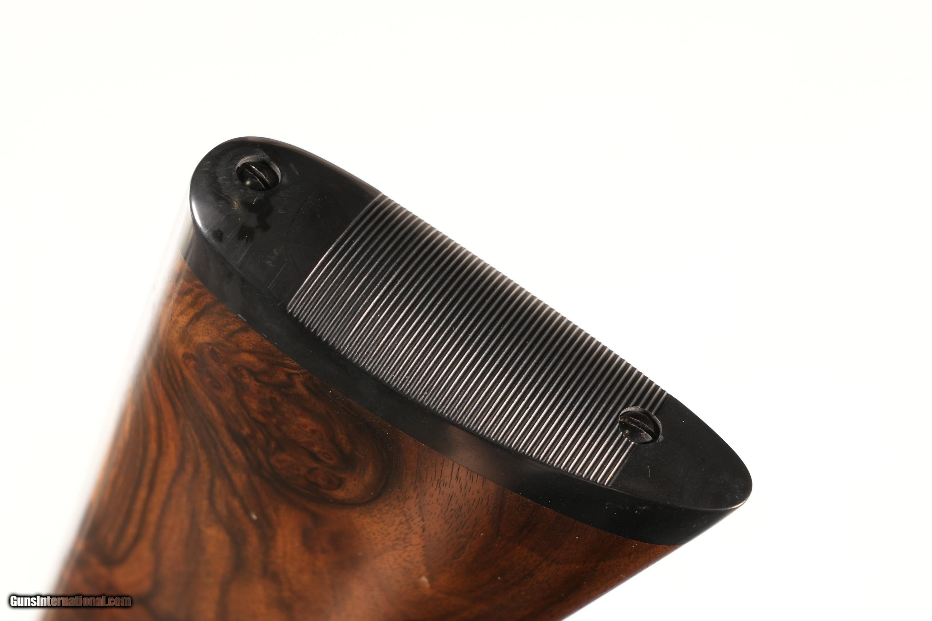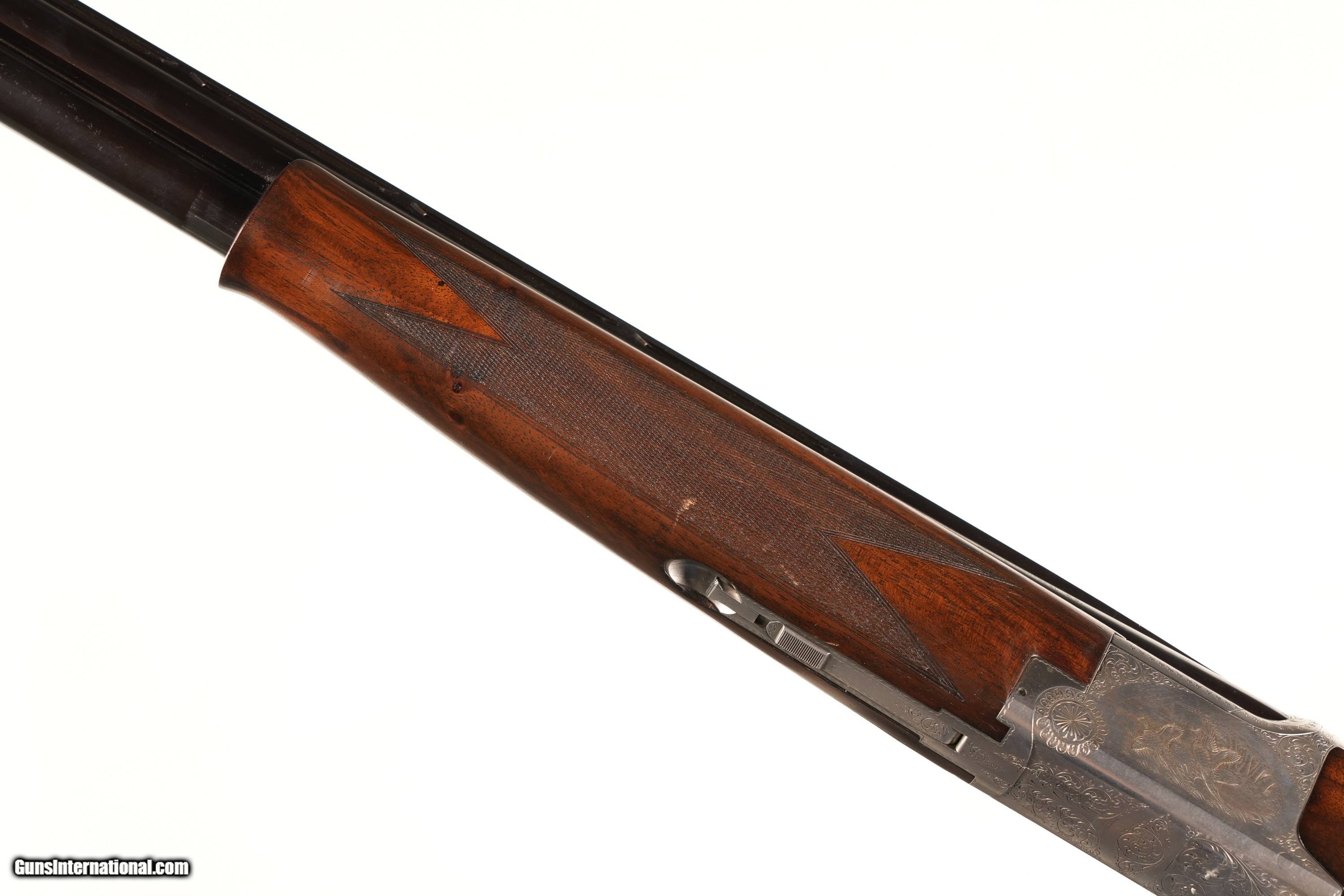 Description: Browning B2G 12 ga, signed by M. Bodson, Game scene engraved French grey receiver with vignettes of Pheasants and Waterfowl with foliate and scrolls. 28" Broadway vent rib Bbl with IM & Mod chokes 2 3/4" chambers Single selective trigger with ejectors. 14 1/4" LOP 1 1/2" DAC 2 1/2" DAH Cast off 5mm 7 lbs 5 oz Mfd 1989. Condition Very fine with Most all finishes remaining. Excellent stocks with some light handling. Mechanically fine • Free Shipping, No Credit Card Fees. • Lay-a-way available for this firearm. • 1/3 Down, a 1/3 in 30 Days 1/3 in 60 Days. SOLD Shotgun Gauge: 12 Gauge Manufacturer: Browning Model: B2G Serial Number: 325PN01236 Barrel Length: 28 Bore: 12 Ga Chambers: 2 3/4 Ejectors: Yes Condition: Extremely Fine Metal Condition: Extremely Fine Wood Condition: Extremely Fine Bore Condition: Bright Barrels: 28 Barrel Type: Over Under Action: Box Lock Ejector Triggers: Single Selective Stock: Checkered walnut Stock Comb: 1 1/2" Stock Heel: 2 1/2 Stock Cast: Cast Off 5mm Butt Pad: Composite LOP: 14 1/4 Rib: Broadway Vent Rib Finish: Blue & French Grey Weight: 7 Lbs 5 oz Sights: Bead Manufacture Date: 1989 Chokes: Imp, Mod & Mod Engraving: M. Bodson Game Scene Engraved & Signed |
