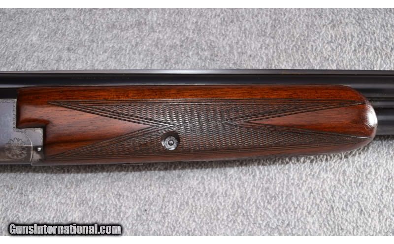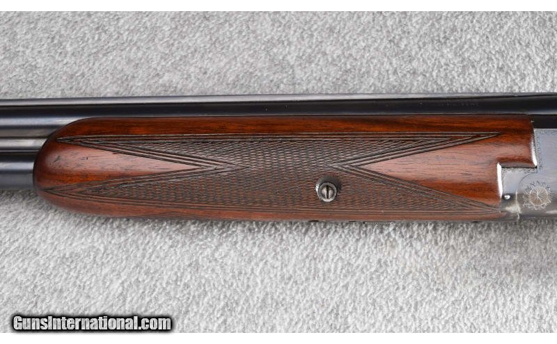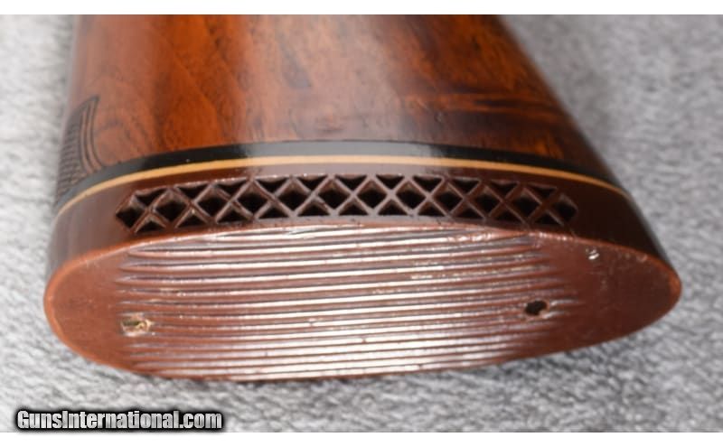 Description: This Belgian manufactured Browning was manufactured sometime between 1931 and 1939. Wood remains solid showing only light use and appears to have had a coat of finish added. Wood has engraving added on both side of receiver and top of buttplate. Round knob has been cut with a brass coin inletted that reads "Grand American Handicap 1942". Begun in 1900, the winner of the '42 event was J.F. Holderman from Morris Il with a score of 193 at 20 yards. Original blue is very good showing blue loss on receiver and some light oxidation. Bores are excellent. No box. Nice old Browning with an interesting history! SOLD Chambers: 2 3/4 Metal Condition: Very Good Wood Condition: Very Good Bore Condition: Excellent Barrels: 28" Solid Rib Triggers: Single Selective Safety Stock Dimensions: 13 1/2" LOP Fore End: Checkered Walnut Round Knob Long Tang Butt Pad: Vented Brown Rubber Butt Pad Weight: 7 1/2 lbs Sights: Single Front Metal Bead Chokes: Full/Modified - Fixed Item Location: Wheeling |