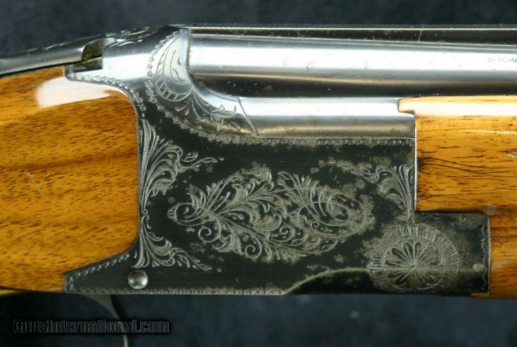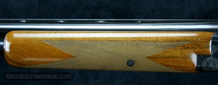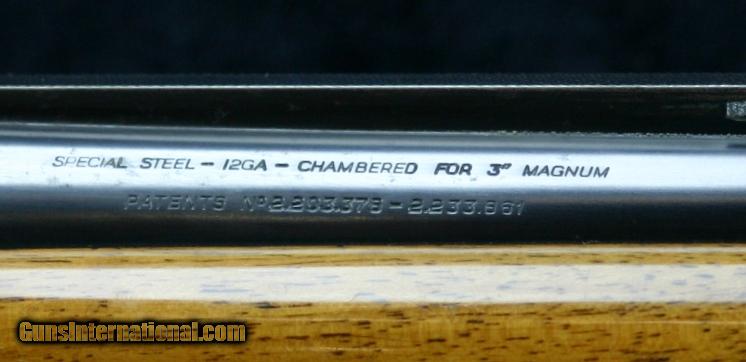 Description: 12ga, 3 inch chambers, marked F/M, but appears M/M, 30 inch barrels, excellent bright bores, 95% barrel blue, 95% frame blue with some light "salt & pepper" pitting on right side. signs of it being a "salt gun", excellent wood, 1968 SOLD |