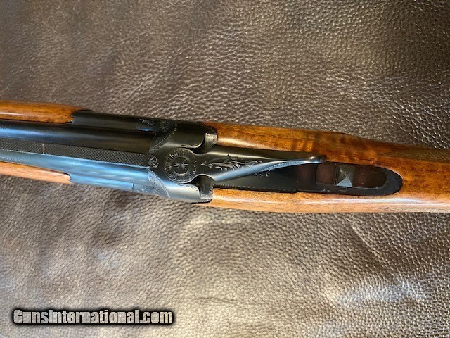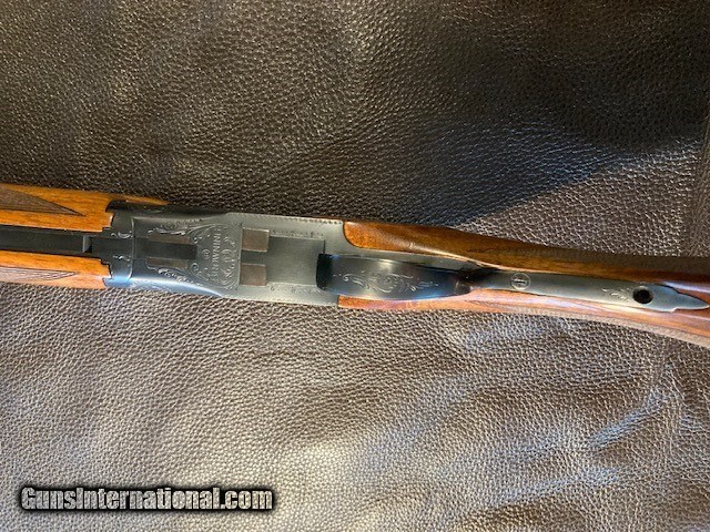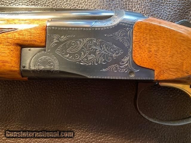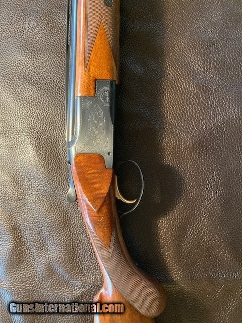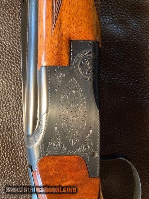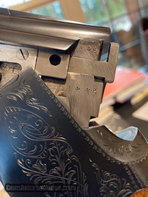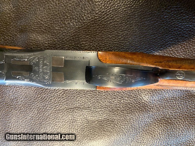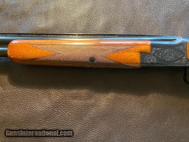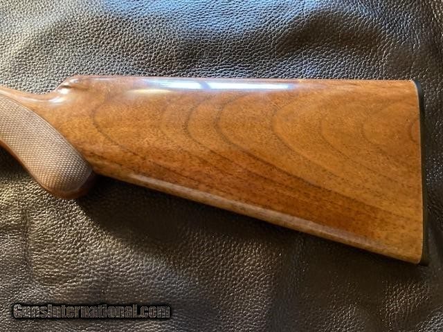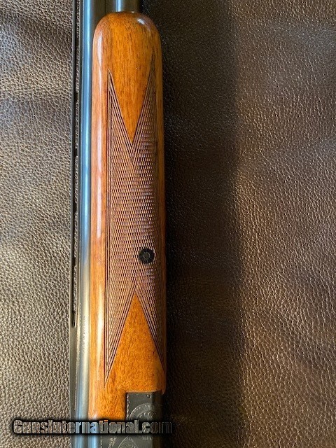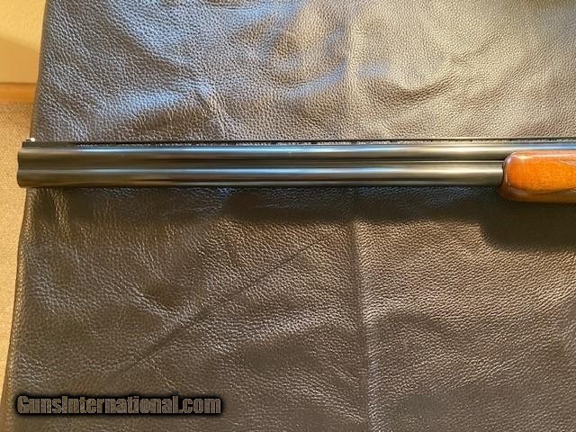 Description: 1965 Browning Superposed 20-gauge in superb condition. By the same gunsmith that the Browning Collectors' Association chose to restore a limited edition of Browning Trombone rimfilres with Angelo Bee engraving, this gun was just reblued, wood refinished and action rebuilt and it is beautiful. Being a ’65, it has the beautiful round knob and long trigger tang, unlike so many Superposed guns for sale. 28" barrels, chokes are skeet/skeet. Note: the gun is missing one screw at the far end of the trigger tange, which is getting replaced as the fit was not perfect. Production of the Superposed began in 1931 and ended in 1986, available afterwards only via the custom shop at Browning. At age 65, John Browning "His greatest satisfaction was found conceiving a new shotgun. It wasn't a tool, like his pump-action guns or the A5 autoloader, but an instrument for an expert, in design and function an expression of art produced in steel and wood." Source: The Guns of John Moses Browning by Nathan Gorenstein. SOLD Shotgun Gauge: 20 Gauge Manufacturer: Browning Model: Superposed Serial Number: 39840 V5 Barrel Length: 28 Condition: Excellent Metal Condition: Excellent Wood Condition: Excellent Bore Condition: Excellent |