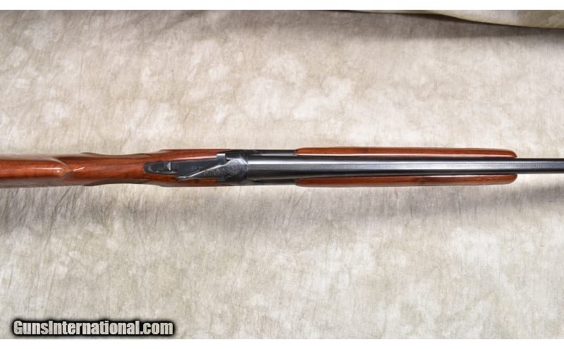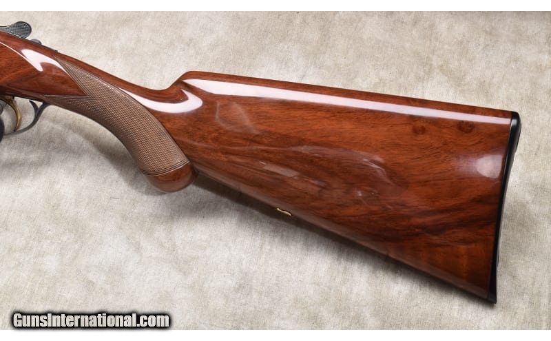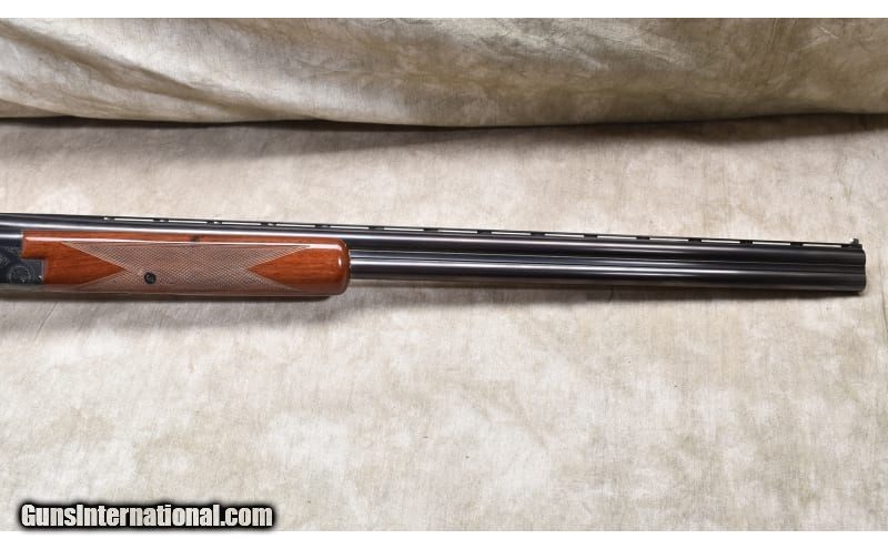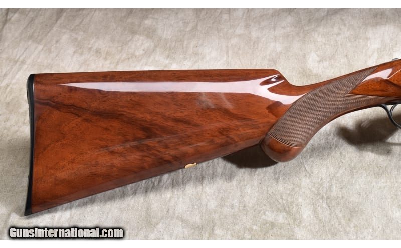 Description: The B25 Superposed was a 'bespoke' or in American parlance, special order shotgun, built to customer specifications. This one appears to have been built to a shorter stature with a 14-inch LOP. The stock is a round knob walnut in a better grade, and has some figure though understated. The S/N tracks to 1967 and it shows no evidence of salt wood corrosion. 20 Gauge SOLD Chambers: "2 rounds, 3-inch Metal Condition: Excellent. Wood Condition: Excellent. Bore Condition: Shiny and bright Barrels: 28 inches Triggers: Factory single selective gold trigger Stock Dimensions: 14-inch LOP Fore End: Matching better grade walnut. Butt Pad: Black plate Weight: 6 lb - 4 oz. Sights: Ventilated rib with white bead Chokes: Fixed Mod and Full Item Location: Rogers |