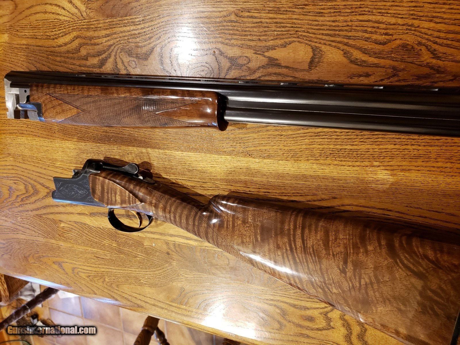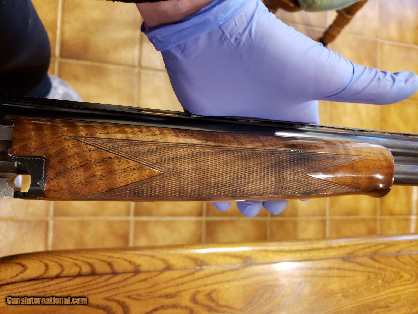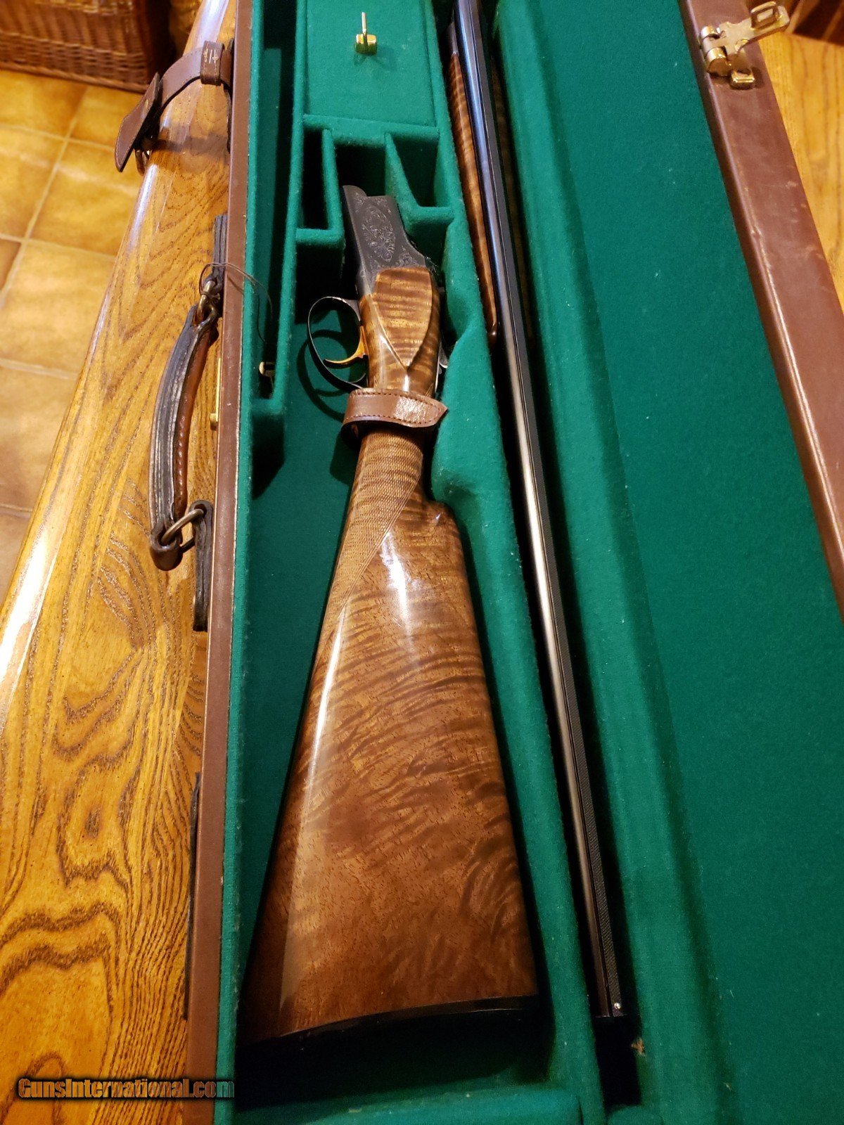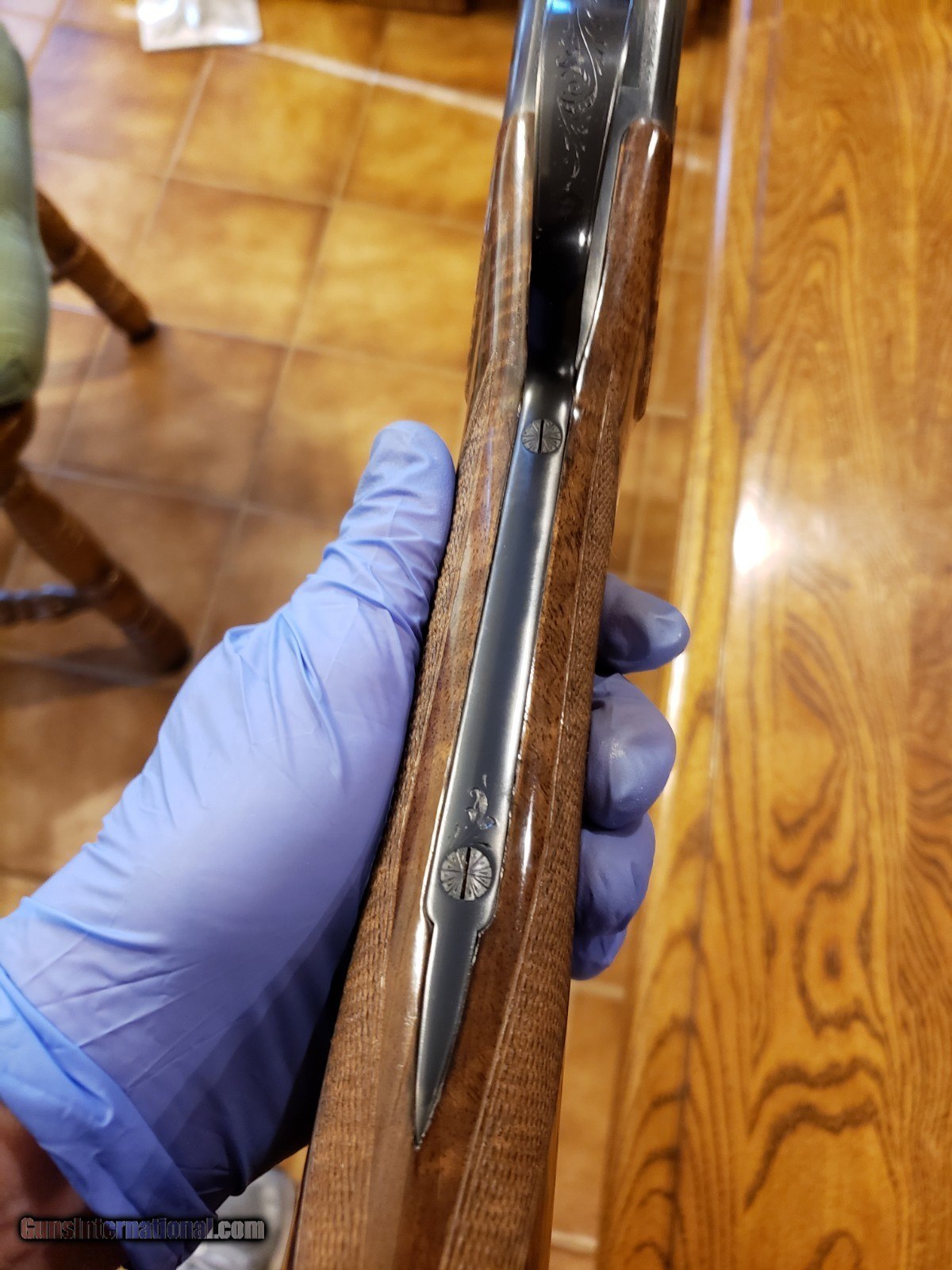 Description: SALE PENDING Rare Browning Belgium Superlight/Superlite 20 ga, IC/M, 26 1/2", 14 1/4"X1 1/2" x 2 3/8"., 5lbs 12oz...1980s model with spectacular Tiger striped wood (a rarity on superlites) and enhanced engraving over the 1970s version, hard butt plate, don't believe its been fired outside of any factory testing. Comes with the green lined leather case you see in the pics.....strap is missing on one end of case....Collector quality.....New condition . $95 shipping/insurance. Will not ship to NYC, Maryland or any locations prohibited by law. SOLD |
