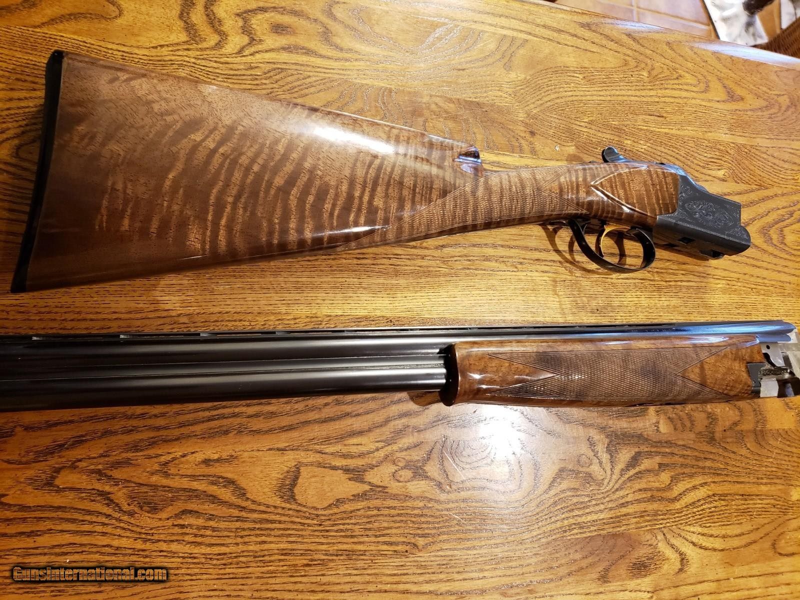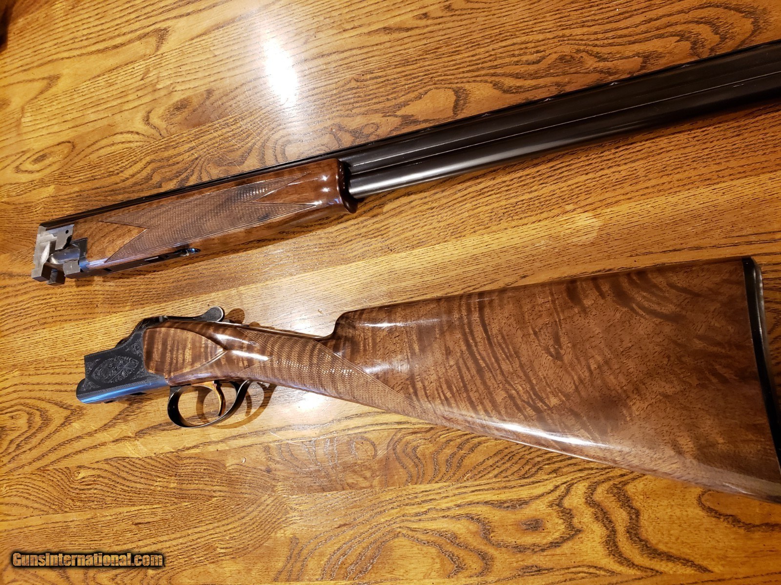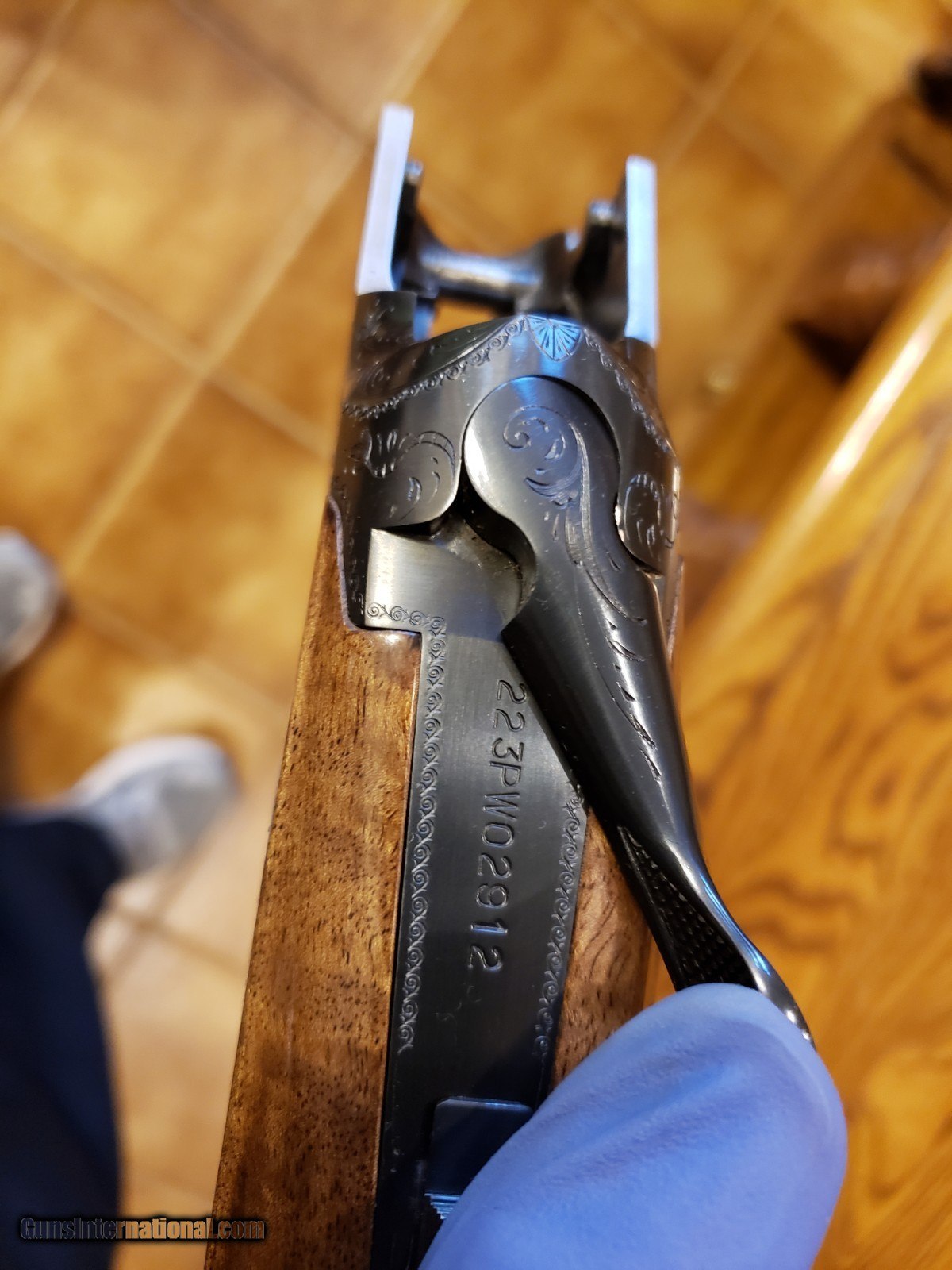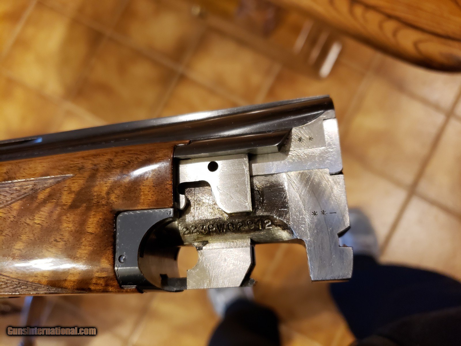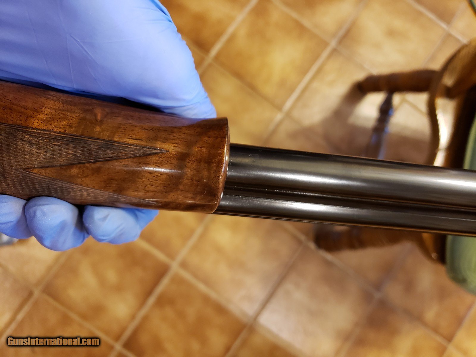 Description: SALE PENDING Rare Browning Belgium Superlight/Superlite 20 ga, IC/M, 26 1/2", 14 1/4"X1 1/2" x 2 3/8"., 5lbs 12oz...1980s model with spectacular Tiger striped wood (a rarity on superlites) and enhanced engraving over the 1970s version, hard butt plate, don't believe its been fired outside of any factory testing. Comes with the green lined leather case you see in the pics.....strap is missing on one end of case....Collector quality.....New condition . $95 shipping/insurance. Will not ship to NYC, Maryland or any locations prohibited by law. SOLD |