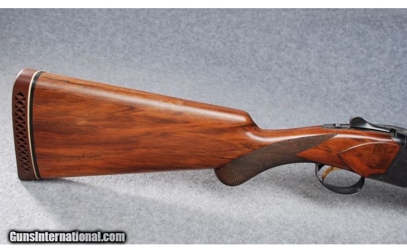 Description: SOLD Manufacturer: Circa 1962 Caliber Info: 12 Gauge Chambers: 3 Metal Condition: Minor handling marks. Wood Condition: Numerous contact and handling marks. Bore Condition: Bright. Barrels: 30". Vented rib. Triggers: Single. Stock: Walnut with checkered Prince of Wales pistol grip. Stock Dimensions: 14 1/4" LOP: 1 1/2" DAC: 2 1/4" DAH. Fore End: Checkered Walnut. Butt Pad: Rubber. Weight: 8 Lbs. 8 Oz. Sights: Brass front bead. White mid bead. Chokes: Fixed. Full and Modified. Extras: Hardcase. Item Location: Billings, MT |