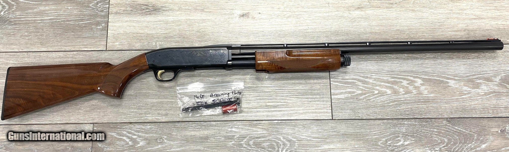 Description: Guns Listing ID: 1076467 Browning BPS Medallion 16 gauge pump action shotgun factory engraved 26\" barrel SOLD Manufacturer: BROWNING Model: BPS MEDALLION Condition: Used - Non-Certified Barrels: 26 BARREL Gauge Info: 16 GA Finish: BLUED W/ ENGRAVING |