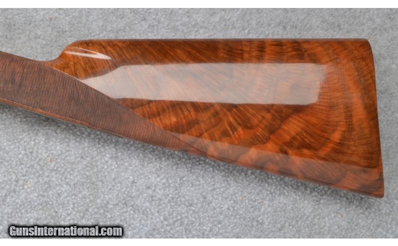 Description: Receiver shows blue wear to the underside and a bit of wear to the lower tang. Wood has a couple faint use marks and remains free of cracks. Bores and barrel blue remain excellent. No box. SOLD Manufacturer: S/N C1XX Caliber Info: 20 GA Chambers: 2 3/4 Metal Condition: Very Good Wood Condition: Very Good Bore Condition: Excellent Barrels: 28" Vent Rib Triggers: Single - Adjustable with Selective Safety Stock: Checkered Walnut English Grip Stock Dimensions: 14 1/16" LOP Fore End: Checkered Walnut Butt Pad: Checkered Weight: 6 LB Sights: Single White Bead Chokes: Improved Cylinder/Modified - Fixed Item Location: Wheeling, WV |