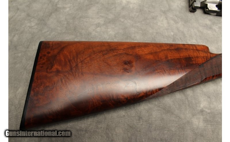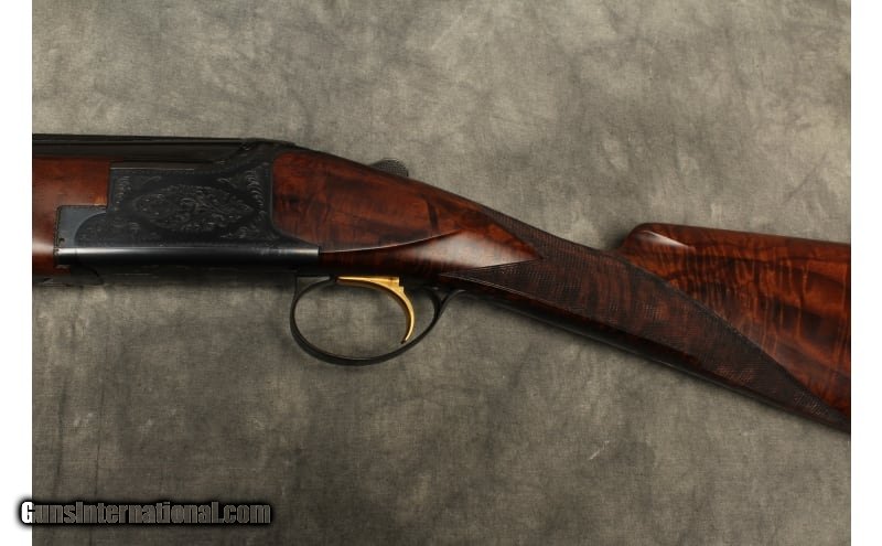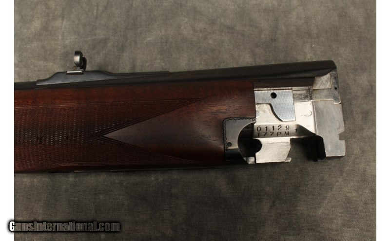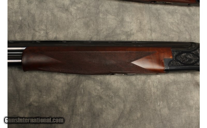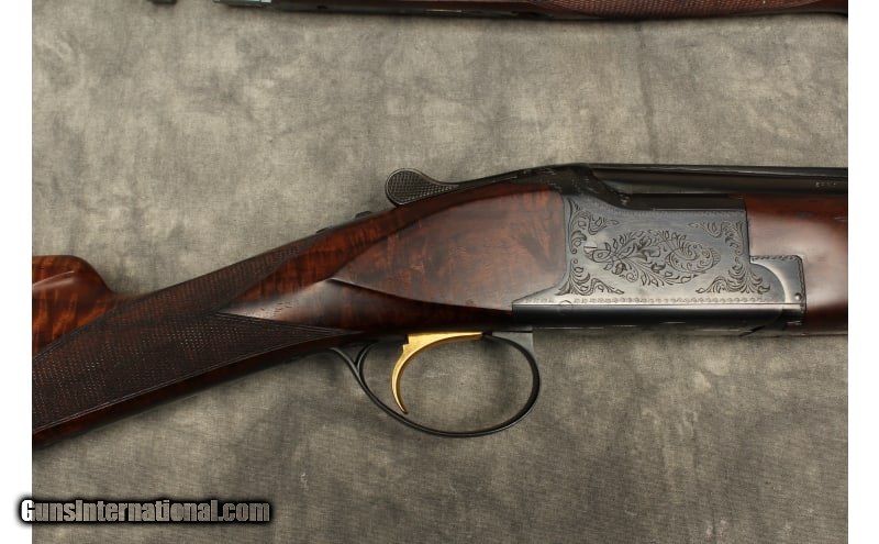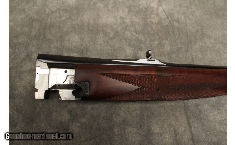 Description: Browning Superposed Continental Express rifle/shotgun combo. Made circa 1980 in Belgium. 2 double-barrel set consisting of a rifle set and shotgun set. 24" rifle barrels are blued steel with a blade front sight and U-notch rear. 26" blued steel shotgun barrels with a full vent rib and bead front sight. Frame has nice scroll engraving. Finished walnut stocks with checkering on the wrist and forearms. Hard plastic "Browning" marked buttplate. Shotgun barrels are full over modified choke bored (non-removable cylinders). 3" chamber on the shotgun bores. Includes factory box. 20 Gauge SOLD Chambers: 3" CHAMBER Metal Condition: EXCELLENT CONDITION Wood Condition: SATIN FINISH IN EXCELLENT CONDITION Bore Condition: BORE IS IN EXCELLENT CONDITION Barrels: 26.25" FOR THE 20 GA. 24" FOR THE 30-06. Stock Dimensions: LOP IS 14.5"~ DTC IS 1.5"~ DTH IS 2.25 Fore End: CHECKERED WALNUT Butt Pad: ORIGINAL BROWNING Weight: 6 lb. Sights: BEAD FRONT ON THE 20 GA. AND BLADE FRONT WITH FOLDING REAR. Chokes: FULL CHOKE ON TOP. MODIFIED ON BOTTOM. Item Location: Katy, TX |