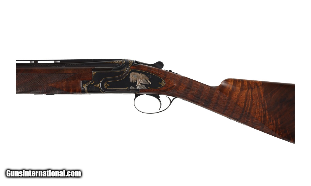 Description: Custom made for wildlife artist Guy Coheleach. Engraved by Marcello Pedini. SOLD Manufacturer: Browning Model: Custom Caliber Info: 410 Gauge Chambers: 3 Ejectors: Yes Condition: Preowned Metal Condition: Very Good Barrels: 26 Action: Boxlock Triggers: Single Gauge Info: 410 Gauge Stock Comb: 1 3/8 Stock Heel: 2 3/8 Stock Cast: Off Fore End: Checkered LOP: 14 3/8 Rib: Ventilated Weight: 6-12 Chokes: IC/M Case: Maker's Canvas Case |