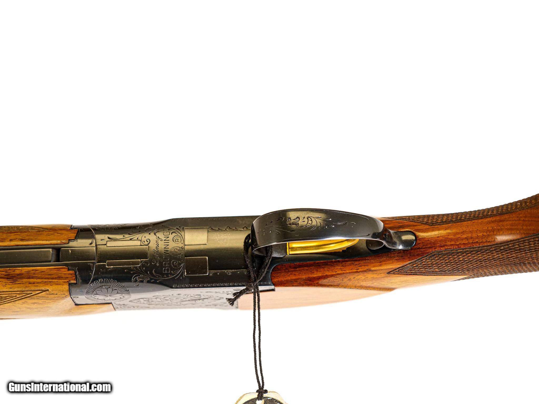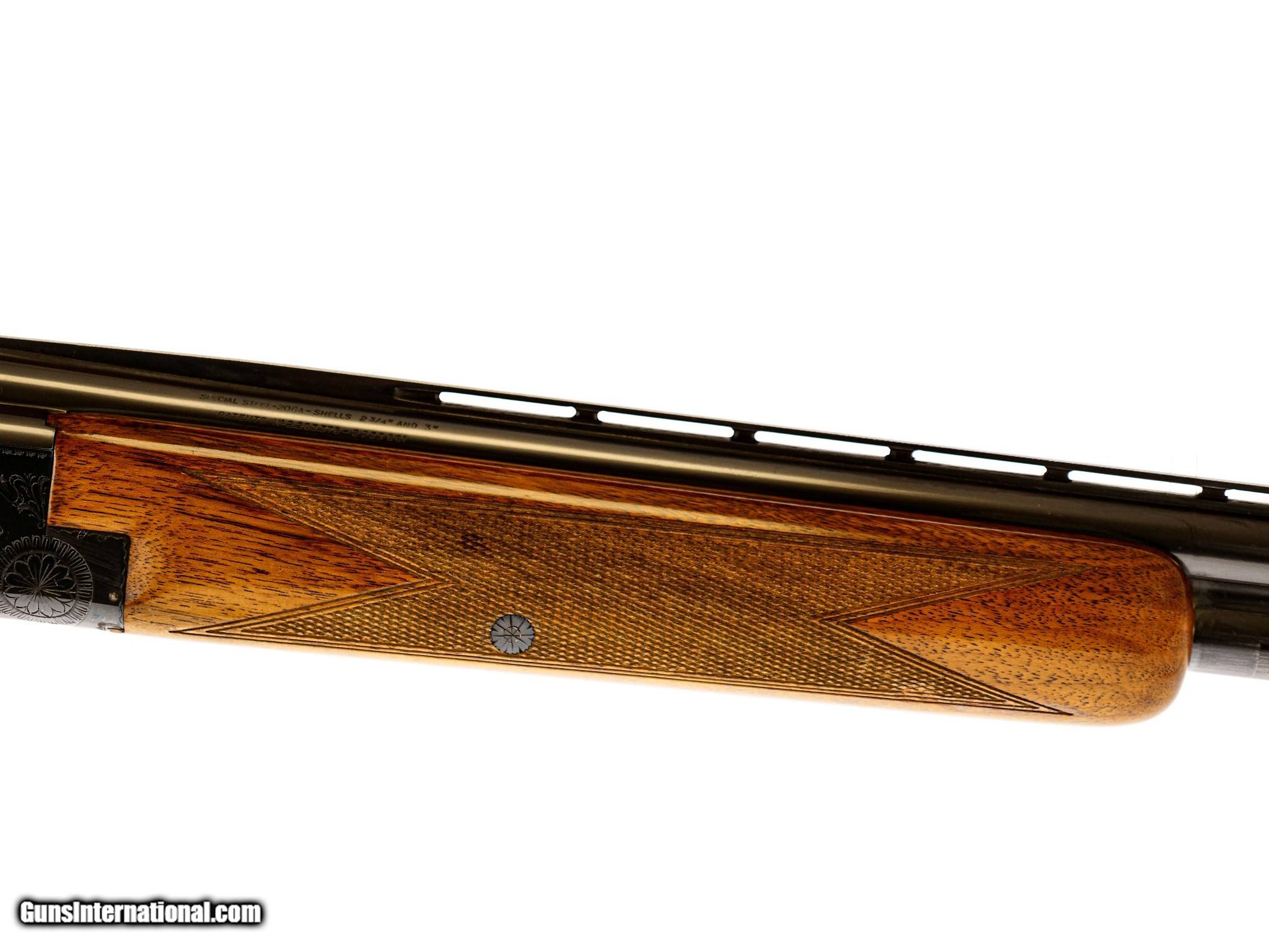 Description: Browning - Grade 1, 20ga. 28" Barrels Choked M/F. 28" Barrels Choked Modified/Full, round knob short tang, highest quality 1967 Belgian manufacture, Browning butt plate, vent rib, automatic ejectors, gold single selective trigger, field forend, super clean gun that appears unfired, the most minor of wear on muzzle, otherwise perfect and untouched gun, includes factory case and hang tag, obtained from original owner. Inv: 61532 6 lbs. 6 oz. 14 ¼” x 1 ½” x 2 3/8” $4,250.00 Shipping to lower 48: $50.00 SOLD |