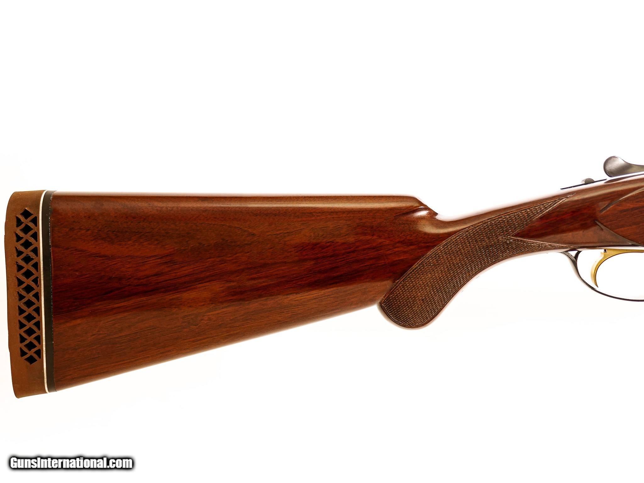 Description: Browning - Grade 1, 20ga. 28" Barrels Choked M/F. Barrels choked Mod/Full, round knob, browning butt pad, vent rib, auto ejectors, gold single trigger, field forend, 99% condition overall, extremely clean and ready to go, available for immediate delivery. S & H - $50.00. Inv: 52172 6 lbs. 4 oz. 14 5/8" x 1 ½" x 2 ¼" $3,750.00 SOLD |