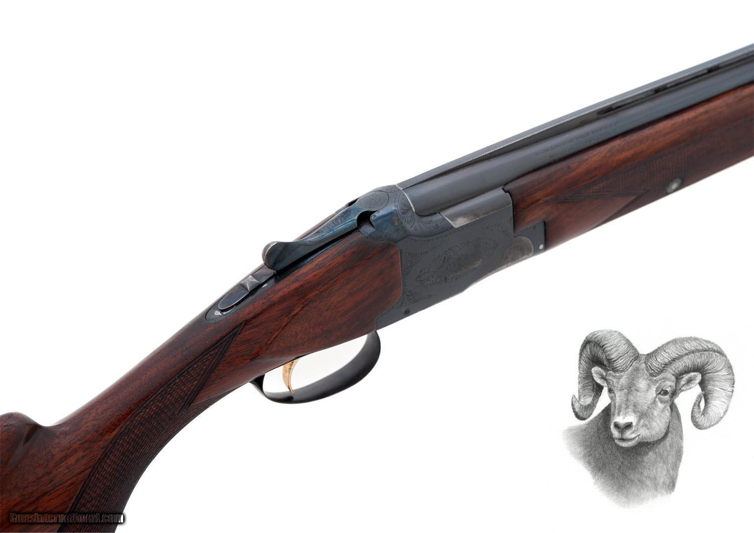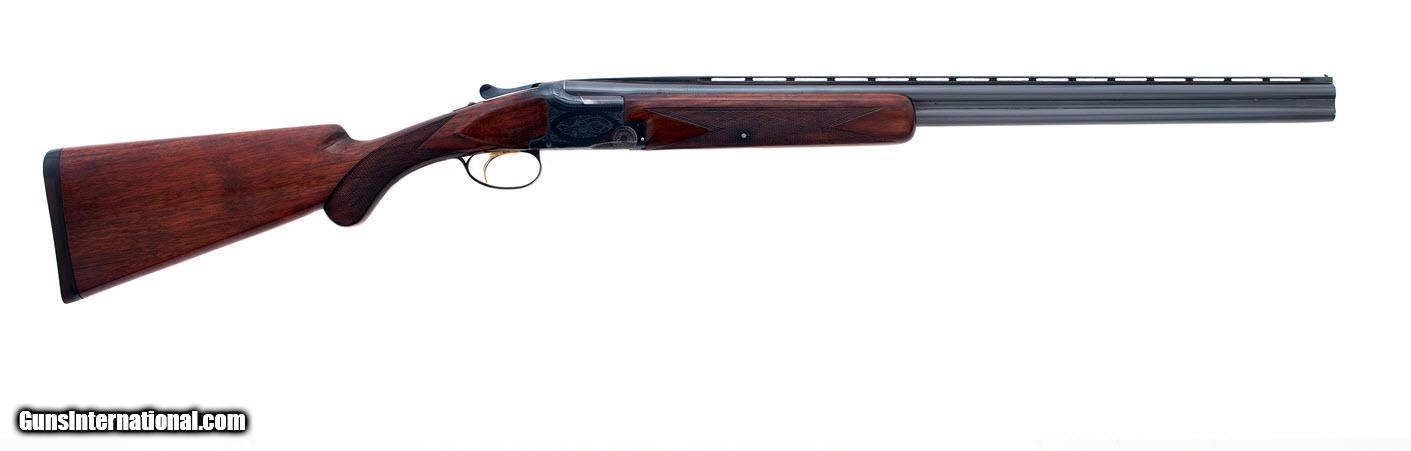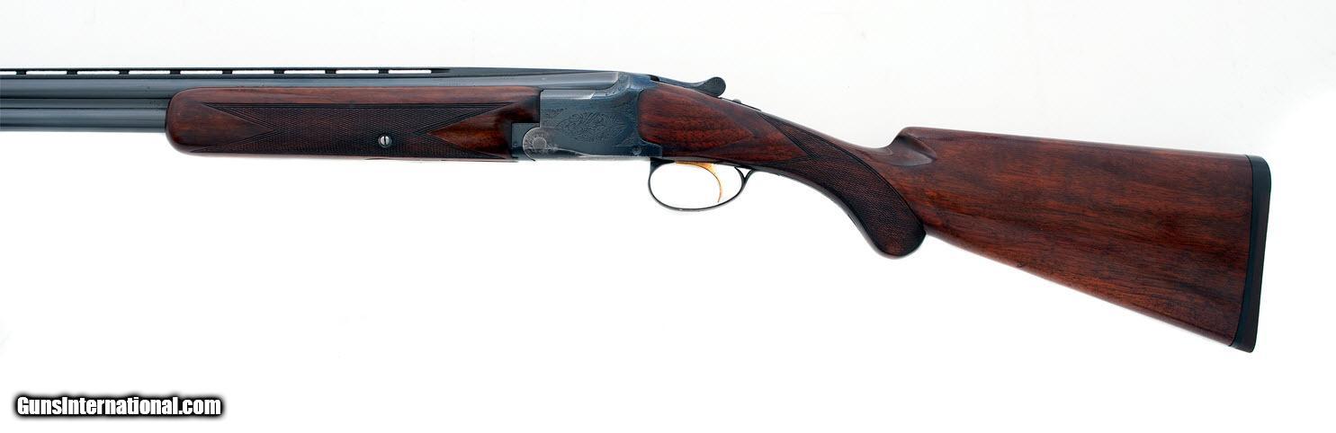 Description: Browning - Grade 1 Lightning - 20 ga - Item Number: BRO33795V4 Shotgun type: O&U Action: Boxlock Ejectors: Yes Trigger: Single Grip: Rounded Pistol Grip Forend: Checkered Lop: 14 1/4 " Pad thickness: 0.5 " Type of butt: Rubber Pad Drop comb: 1 5/8 " Drop heel: 2 1/4 " Cast amount: 1/8 " Cast: Off Weight: 6 lbs, 4 oz Manufactured in: Belgium Manufacture Year: Finish: Blue Overall condition: Good Stock condition: Good Metal condition: Good Stock: Original finish Metal: Original finish Type of Case: none Extra barrels: 0 Barrel info: Gauge: 20 ga Chamber: 3 " Length: 26 1/2 " Chokes: 5 Briley type Rib type: Ventilated Comments : Gun is in good condition with some light handling marks. Comes with 5 Briley chokes. SG-37 SOLD |