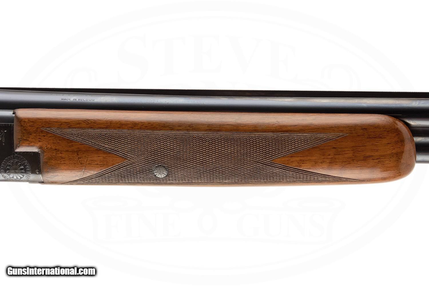 Description: SN# 40XXX MADE 1954 30" SOLID RIB BARRELS MARKED MOD AND FULL - .013 AND .025 CONSTRICTIONS 2 3/4" CHAMBERS SINGLE SELECTIVE TRIGGER EJECTORS FIELD FOREARM RKLT PISTOL GRIP RECOIL PAD GOOD CONDITION WITH SOME HANDNLING / USE MARKS 8LBS 6 OZ 2 7/16" DAH 1 1/2" DAC 14 3/4" LOP SOLD |