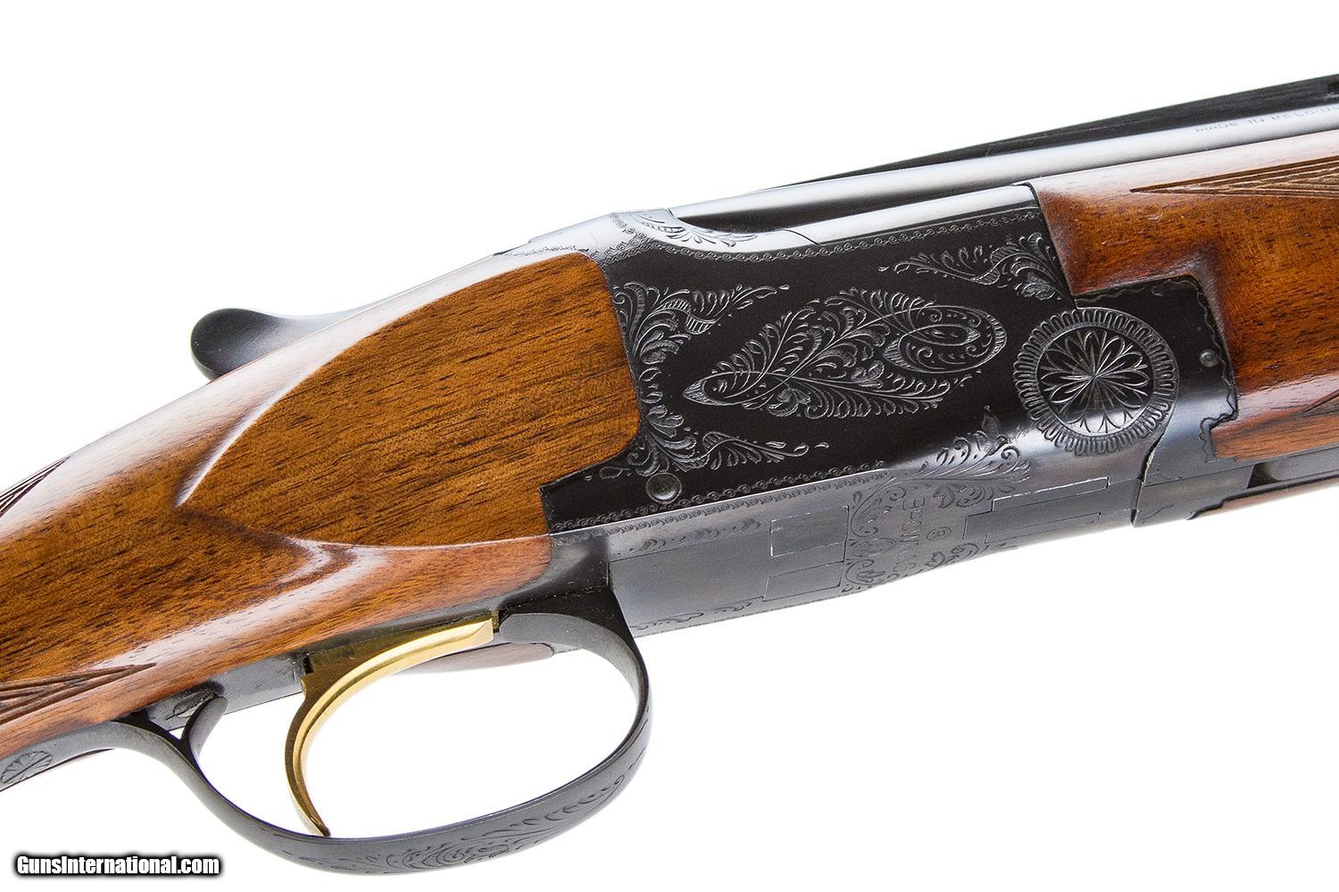 Description: made 1955 28" IC AND MOD 2 3/4 SINGLE SELECT TRIGGER EJECTORS FIELD FOREARM PISTOL GRIP NEAR NEW ORIGINAL CONDITION WITH LIGHT HANDLING MARKS IN THE WOOD 6LBS 11 OZ X 2 1/8 X 1 1/2 X 14 1/4 SOLD |
