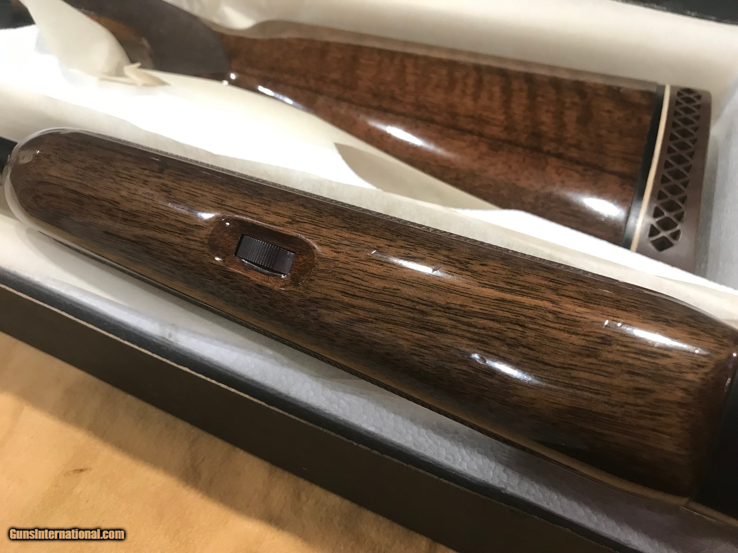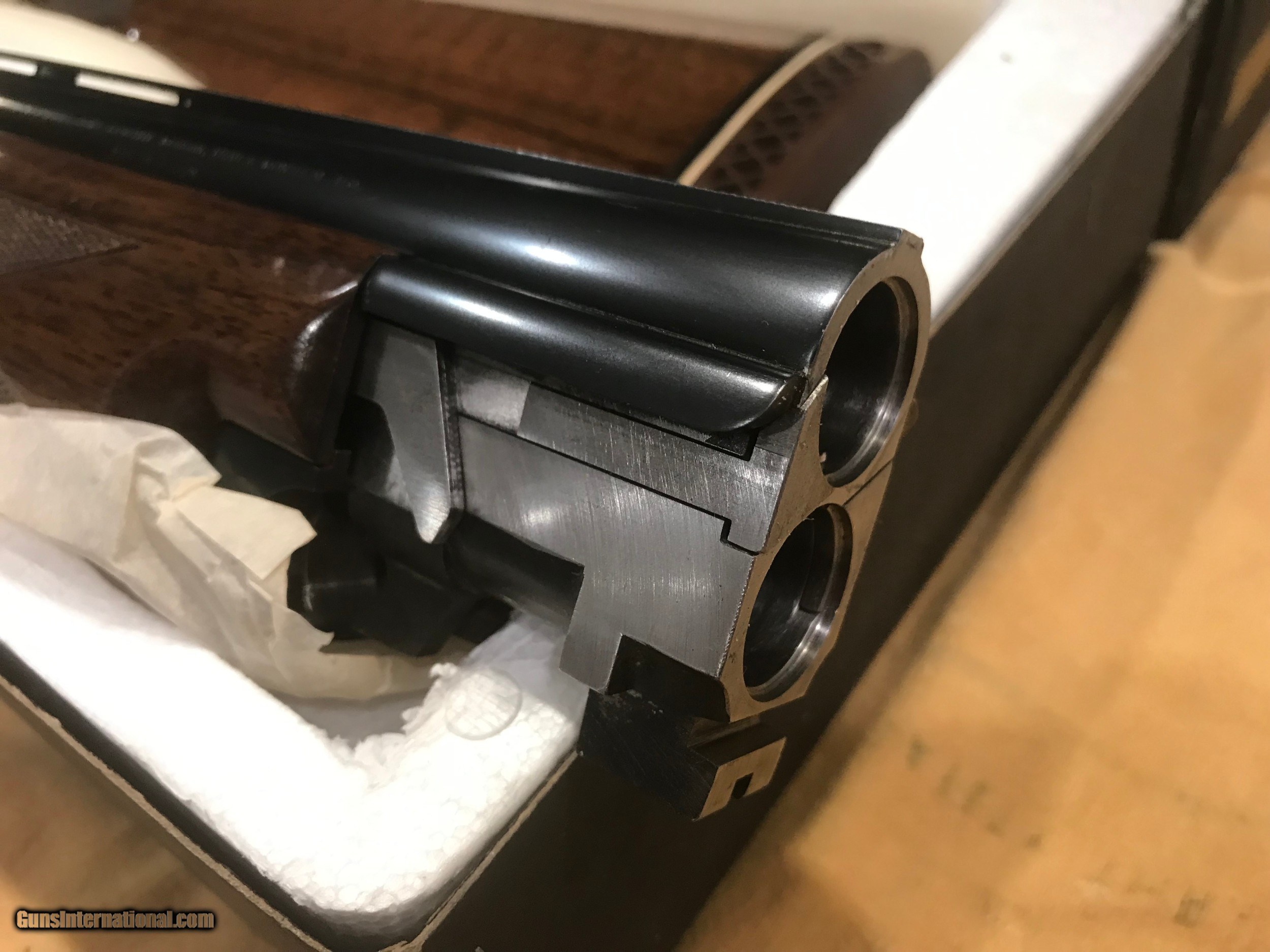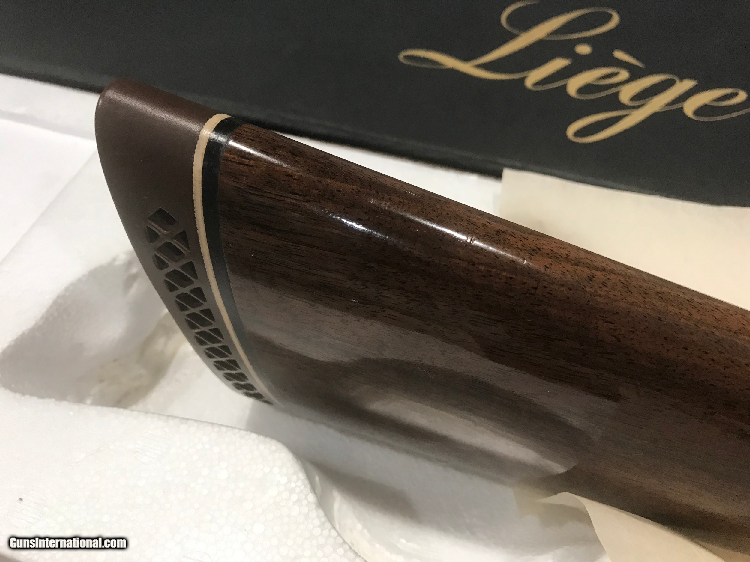 Description: Browning Liege B26 O/U 12ga 30" Made In Belgium 1973. The Liege was only made in 1973-1974 in Belgium. The gun is in excellent 97% condition and appears to be only lightly used. Blue is 99% near perfect with only one very small handling mark on the bottom of the receiver with the rest including barrels are perfect. The stock and forearm gloss finish is like new but there are a few handling marks present but nothing major. The stock has a Browning pad with LOP 14 3/8" and 20pt checkering. The gun has hard to find 30" barrels with fixed chokes Modified / Full and 2 3/4" & 3" chamber. The gun has a manual safety, barrel selector and Vent Rib is standard width with metal bead front sight. This shotgun is a great value being a Belgium made gun ready for hunting, sporting clays or collecting. Gun comes in a Liege 1973 box but label is for a different gun. Gun is in proper working order. No warranty expressed or implied. Shipping quoted, $60.00 to the lower 48 states, no CA. SOLD Shotgun Gauge: 12 Gauge Manufacturer: Browning Model: Liege Serial Number: 73J Barrel Length: 30 Chambers: 2 3/4" & 3 Ejectors: Yes Condition: 97% Metal Condition: 99% Wood Condition: 96-97% Bore Condition: Shinny Triggers: Single Butt Pad: Browning LOP: 14 3/8 Rib: Vent Manufacture Date: 1973 Extras: Browning Liege Box Item Location: Salisbury NC 28144 |