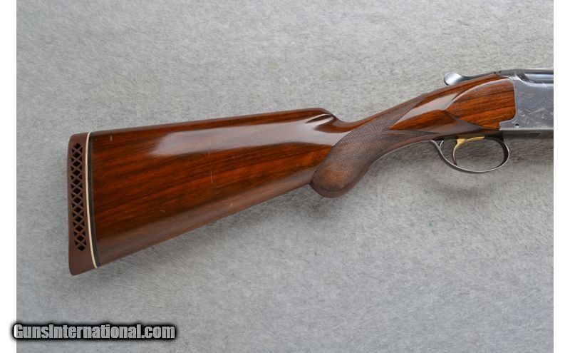 Description: This Browning Model Lightning is a 12 Ga. over and under shotgun. It has 26.5 inch barrels with a top barrel ventilated rib and ejectors. A metal bead front sight. With 2 3/4 inch chambers it has fixed Skeet chokes. The butt stock is a checkered walnut round knob pistol grip. The forearm is a checkered grip walnut. It has a SST. 12 Gauge SOLD Chambers: 2 3/4 inch Metal Condition: Good. Has blue wear and handling marks. Wood Condition: Good. Has handling marks and grip wear. Bore Condition: Shiny Barrels: 26.5 inch barrels with a top barrel ventilated rib and ejectors. Triggers: SST golden. Stock Dimensions: LOP 14 1/4 inches. Fore End: Checkered grip walnut. Butt Pad: Browning brown rubber recoil pad. Weight: 7 Lb. 3 Oz. Sights: Metal front bead. Chokes: Fixed Skeet both barrels. Item Location: Gonzales, LA |
