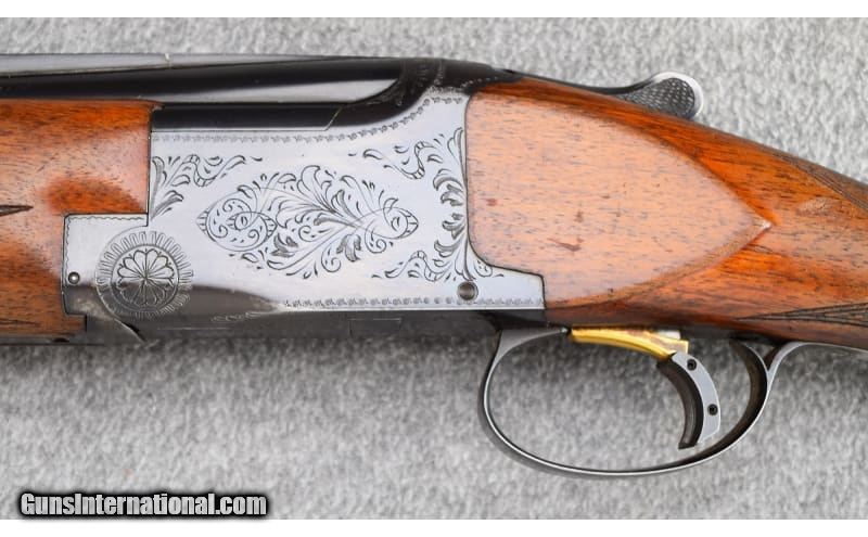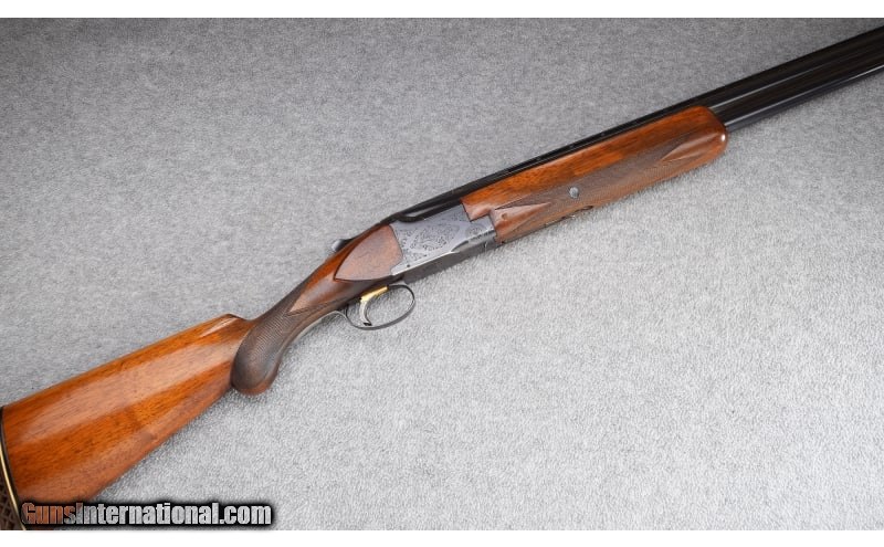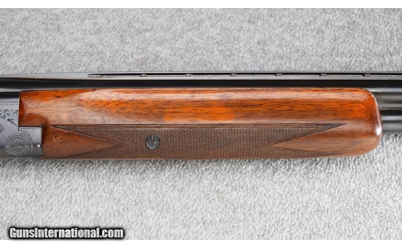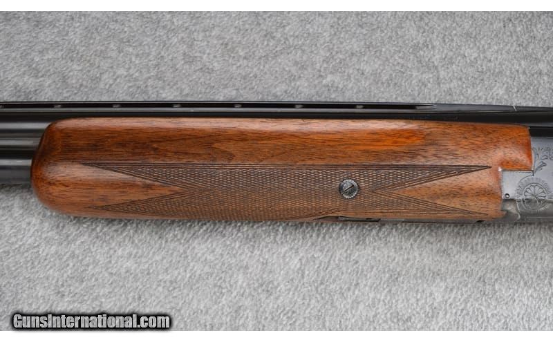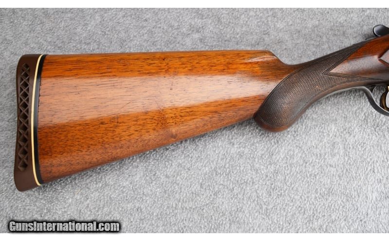 Description: This Browning Lightning was manufactured in 1960 and remains in very good overall condition. Wood shows some finish loss from 63 years of use with a small chip in wood with hairline crack on right forend. There are some light dings in wood with worn checkering and darkening from age. Blue appears original and remains good with some blue loss in high contact areas. Bottom tang is worn to bare metal. Bores remain excellent. This is an Ejector gun. Very nice shotgun! 12 Gauge SOLD Curio/Relic: Yes Chambers: 2 3/4 Metal Condition: Very Good Wood Condition: Very Good Bore Condition: Excellent Barrels: 30" Matte Vent Rib Triggers: Factory - with Trigger Shoe Stock Dimensions: 14 1/16" LOP Fore End: Checkered Walnut Round Knob Long Tang - Checkered Walnut Forend Butt Pad: Browning Vented Brown Rubber Butt Pad Weight: 8 1/4 LBS Sights: White Front Bead - White Mid-Bead Chokes: Full/Modified - Fixed Item Location: Wheeling |