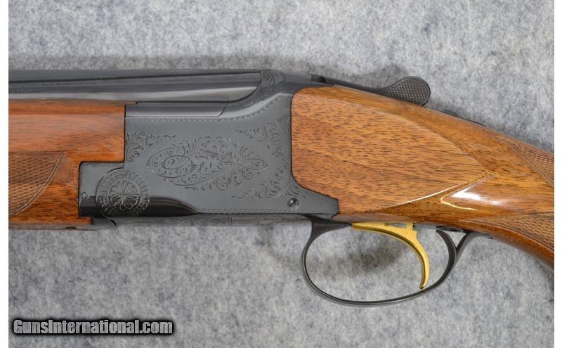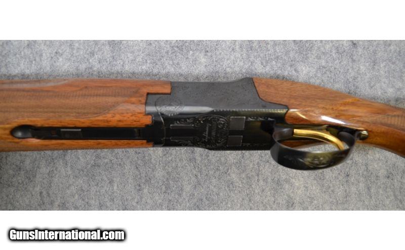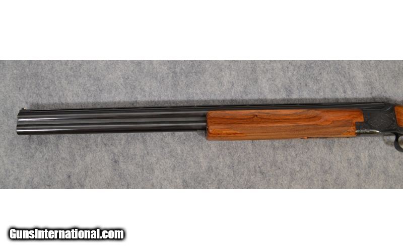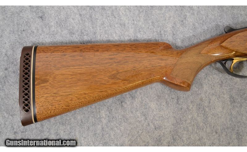 Description: This a Browning Lightning which is an Over/ Under with 26 3/8" blued barrels with a white front sight bead. It has engraved and blued steel receiver, trigger guard, and top lever with, and a gold-plated trigger. The furniture is a gloss finished black walnut with a checkered pistol grip and foregrip and a brown rubber butt pad. 12 Gauge SOLD Metal Condition: Excellent Wood Condition: Excellent Bore Condition: Excellent Barrels: Two 26 3/8" barrels Triggers: Single trigger with selectable barrels Stock Dimensions: 14 1/4"" Length of Pull, 2"" Drop at Heel, 1 1/2"" Drop at Comb Fore End: Checkered walnut Butt Pad: Checkered walnut with rubber butt pad Weight: 7 lbs. 6 zo. Sights: White Bead Chokes: Both Skeet Item Location: Louisville, KY |