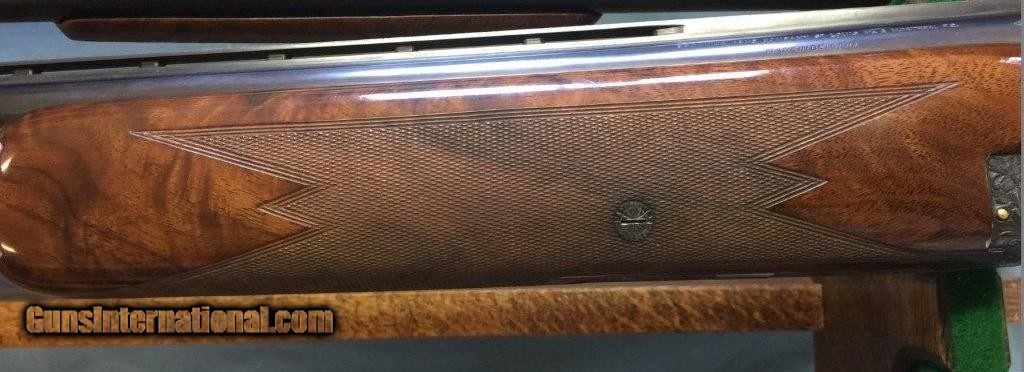 Description: The Browning Superposed are hand-fitted shotguns that were made by some of the best craftsman in Europe to Browning's high standard of excellence. And only the best craftsmen and women were allowed to work on these extreme examples of Browning’s finest offering. This wonderful Midas Grade Superposed in 12 ga Magnum is a rare bird being one of only 64 built between 1964-1977. Most of the Midas grade 12 gauge guns encountered are Broadway trap guns, so it's unusual to come across a Magnum hunting gun. It has a serial number of 83365 S8, being built in 1968. It has tight and long shooting 30" barrels with Full/Mod chokes making it a much more desirable gun than a similar gun with Skeet chokes which present a much wider, less dense pattern. This Browning has the most wanted round knob stock with 28 lines per inch, flawless checkering. And all Magnums came from the factory with a Pachmayr Jumbo trap recoil pad marked Browning. It weighs 8lb. 4oz. and is all factory original and still retains 99.9% overall condition. The wood retains the original finish with only the most minor light handling mark on the right side of the forearm near the breach. This gun appears to have never been hunted with and shot very little, if at all. The 18 carat gold engraving was done by hand by some of the best engravers in the world and no two guns are alike, being one of one. This Midas Grade came with highly figured walnut stocks that are truly beautiful. Guns built after 1967 and prior to 1974 had the possibility of salt contamination due to the manner which Browning tried to accelerate their wood curing process. However, this gun shows no tell tail signs of salt problems that would certainly arise 50 years after its production. With the factory 3” chambers and the advancements in non-toxic shot you can use heavy magnum loads. Highly desirable and wonderfully built to last, the value of these high grade Superposed guns continues to skyrocket so there's no better time than the present to buy one. SOLD Curio/Relic: Yes |