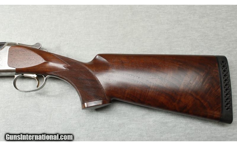 Description: Excellent condition, light wear, small nicks & scratches. 12 Gauge O/U shotgun - 30"" ribbed barrels with screw-in chokes, blued barrels, nicely engraved receiver, premium checkered wood forend and stock with Browning recoil pad. 12 Gauge SOLD Chambers: 2 3/4 Metal Condition: Excellent Wood Condition: Excellent Bore Condition: Bright Barrels: 30 Triggers: Factory Stock Dimensions: 14 1/4" LOP Fore End: Checkered Butt Pad: Browning pad Sights: "Large white front, small white mid beads Chokes: Screw-in chokes Item Location: La Vista, NE |