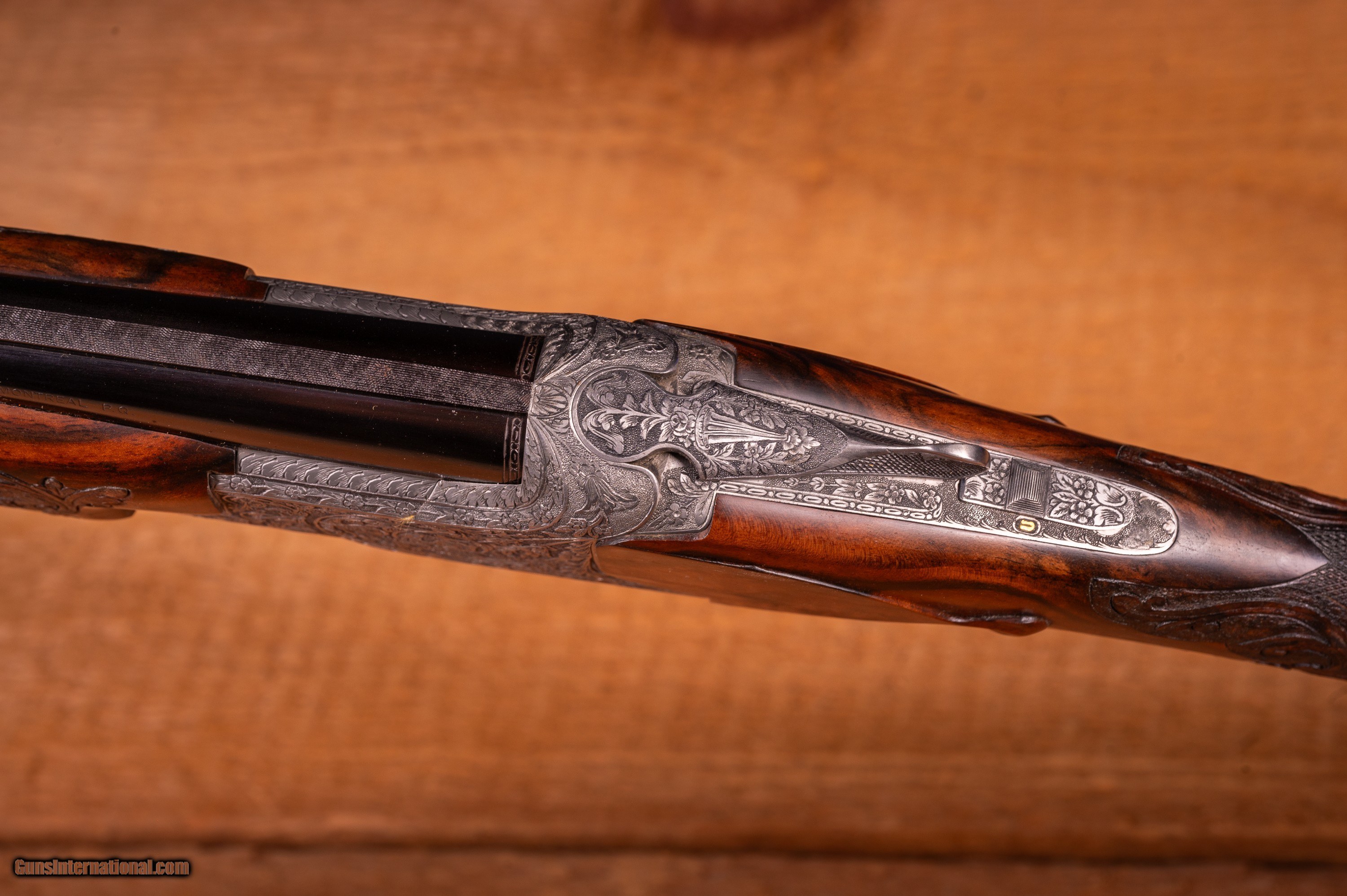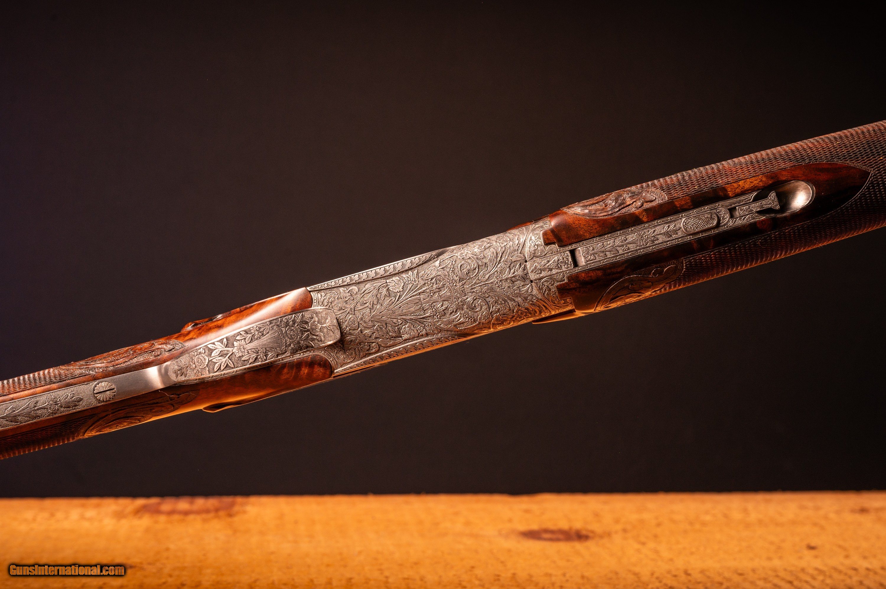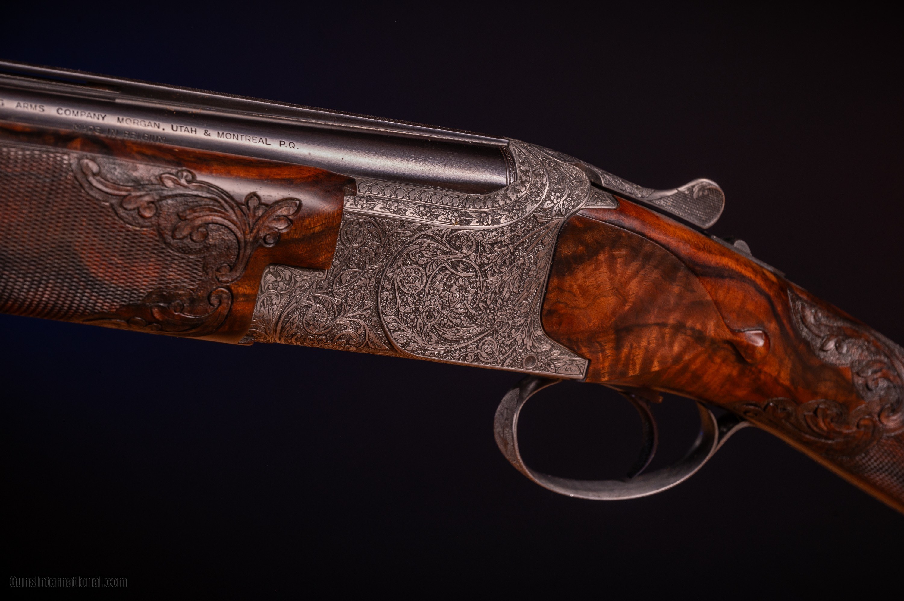 Description: This distinctive masterpiece is one of the finest guns engraved by master engraver, Angelo Bee. This gun took over 200 hours to finish. The engraving is a replica of the Browning D5G grade that features Louis XVI style scrollwork and is shown on page 382 of the book: “Browning Superposed: John M. Browning’s Last Legacy” by Ned Schwing. This design was created by Felix Funken, who was the head engraver at Fabrique Nationale (FN) in Herstal Belgium for many years. He was also Angelo Bee's teacher and mentor as he had the privilege of being his apprentice for a few years after which he became a factory engraver from 1957 to 1975. Notable features of this gun include an engraved top lever, filed receiver cheeks, a long tang trigger guard and a serrated trigger. The stock is a gorgeous special-order walnut from Belgium that features a straight grip, tear drop carving and engraving, butt plate checkering and a Schnabel fore end. The gun has a stunning grey finish “a la parcodine” by Angelo Bee. This gun comes with: 1. Leatter of Provenance (Signed by Angelo Bee on his personal letterhead) 2. Certificate of Authenticity (signed by Angelo Bee) 3. A fiited Browning hard case SOLD Shotgun Gauge: 20 Gauge Manufacturer: Browning Model: B25 Serial Number: 41210V3 |