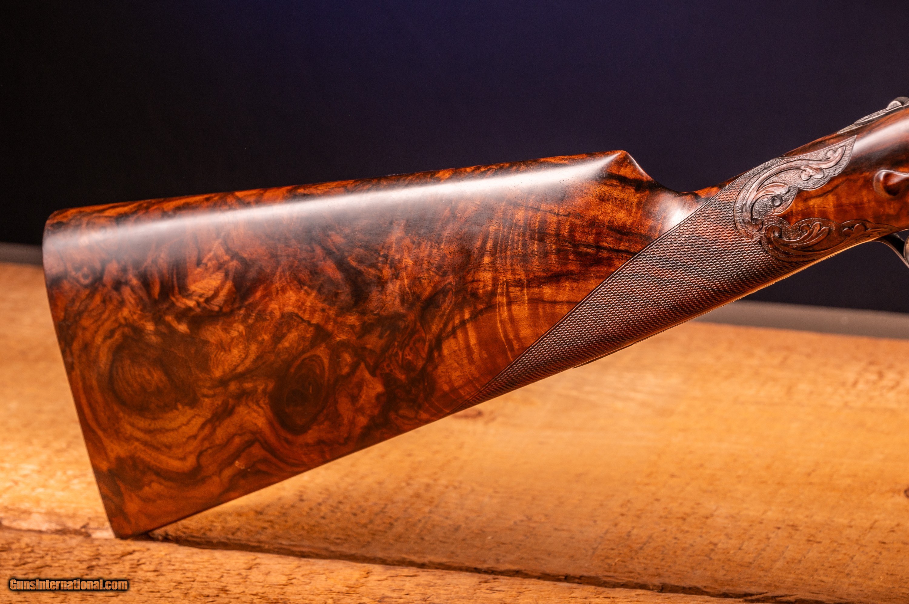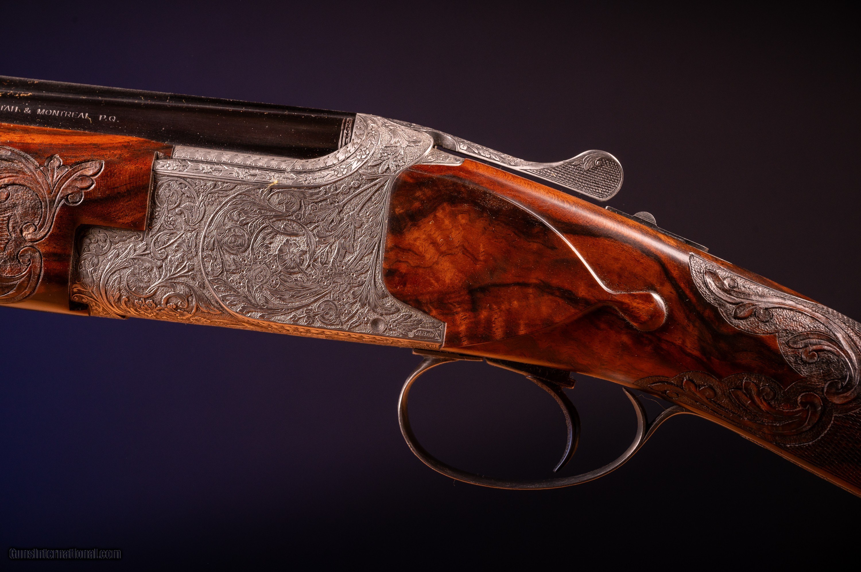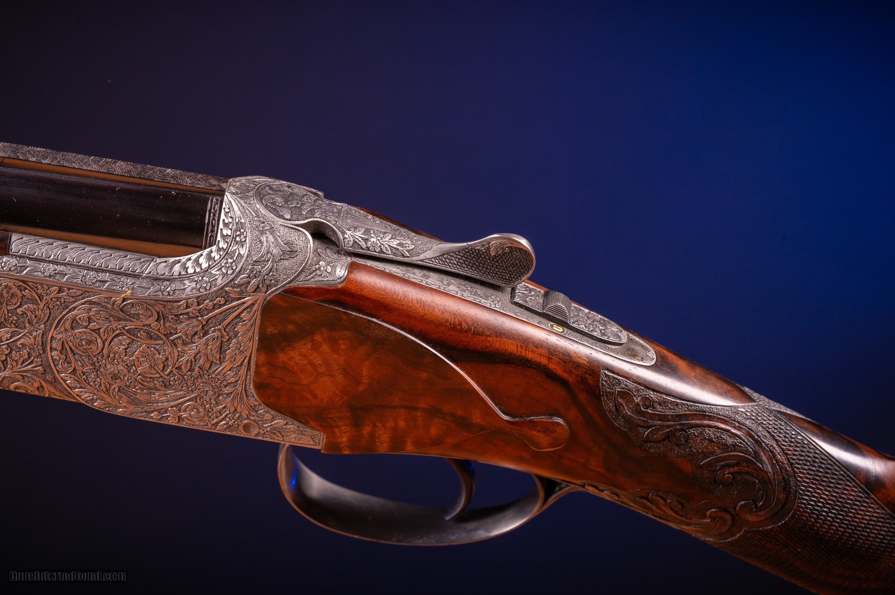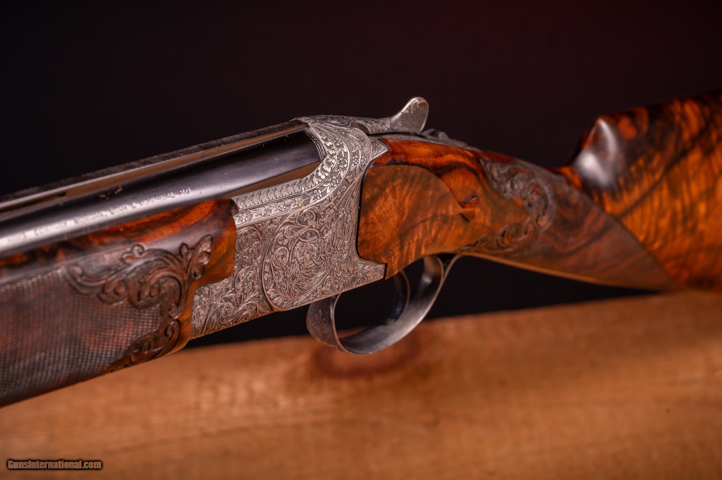 Description: This distinctive masterpiece is one of the finest guns engraved by master engraver, Angelo Bee. This gun took over 200 hours to finish. The engraving is a replica of the Browning D5G grade that features Louis XVI style scrollwork and is shown on page 382 of the book: “Browning Superposed: John M. Browning’s Last Legacy” by Ned Schwing. This design was created by Felix Funken, who was the head engraver at Fabrique Nationale (FN) in Herstal Belgium for many years. He was also Angelo Bee's teacher and mentor as he had the privilege of being his apprentice for a few years after which he became a factory engraver from 1957 to 1975. Notable features of this gun include an engraved top lever, filed receiver cheeks, a long tang trigger guard and a serrated trigger. The stock is a gorgeous special-order walnut from Belgium that features a straight grip, tear drop carving and engraving, butt plate checkering and a Schnabel fore end. The gun has a stunning grey finish “a la parcodine” by Angelo Bee. This gun comes with: 1. Leatter of Provenance (Signed by Angelo Bee on his personal letterhead) 2. Certificate of Authenticity (signed by Angelo Bee) 3. A fiited Browning hard case SOLD Shotgun Gauge: 20 Gauge Manufacturer: Browning Model: B25 Serial Number: 41210V3 |