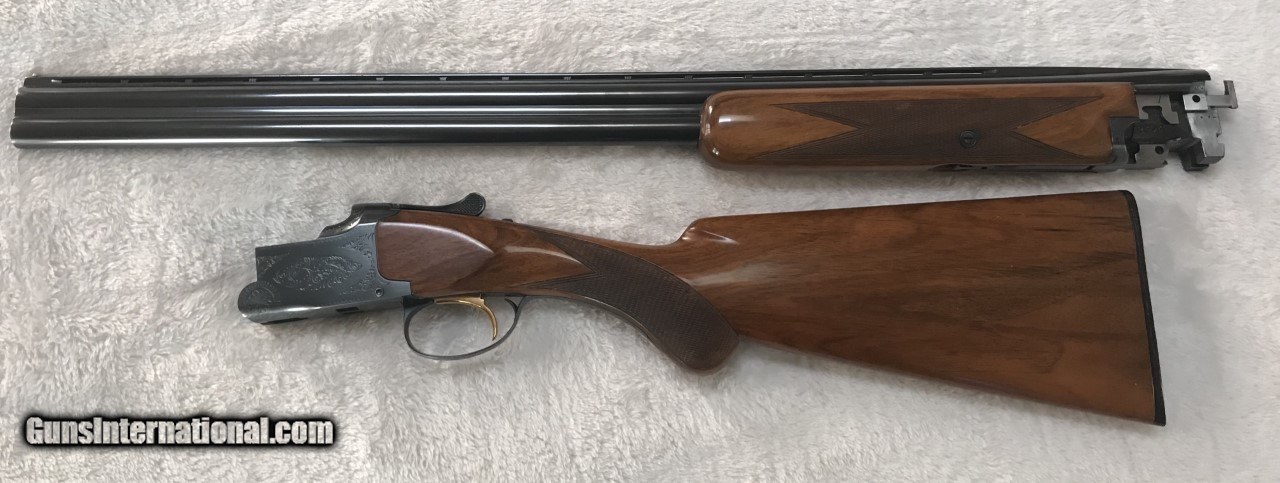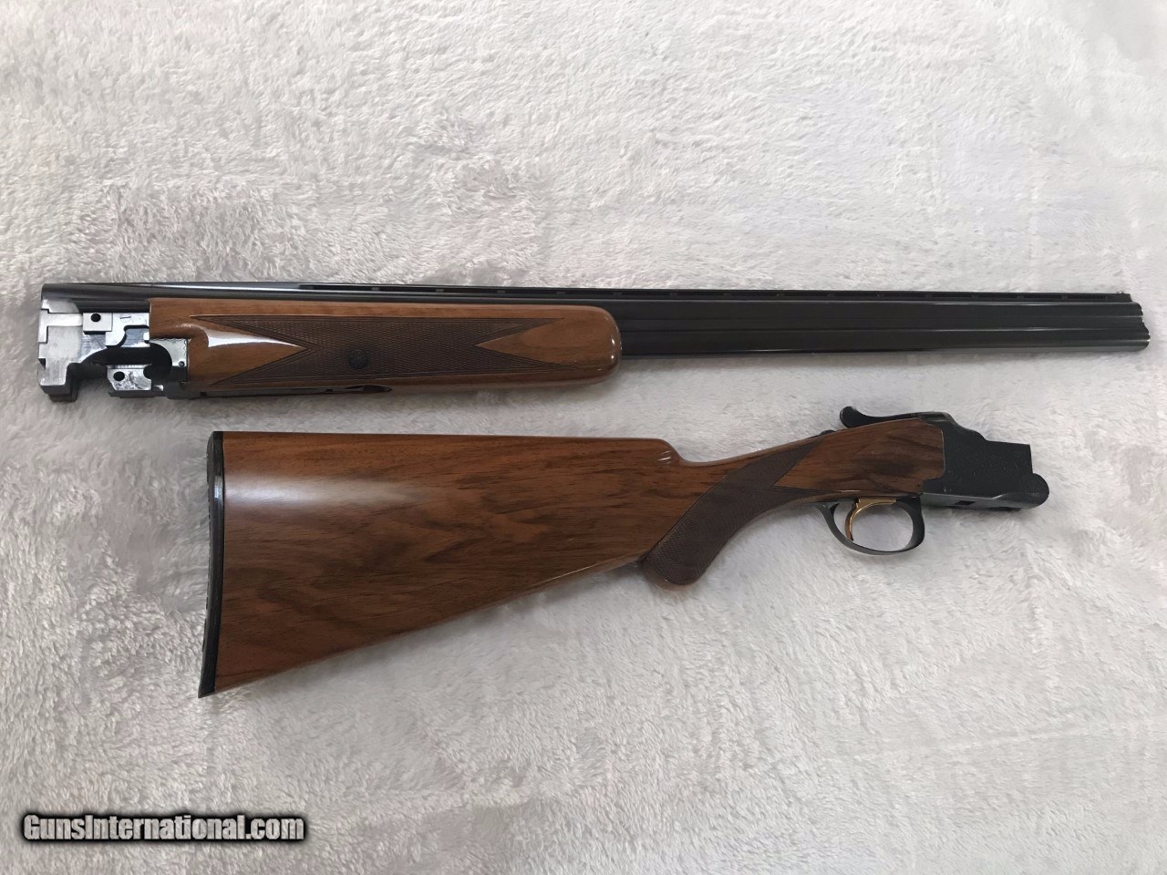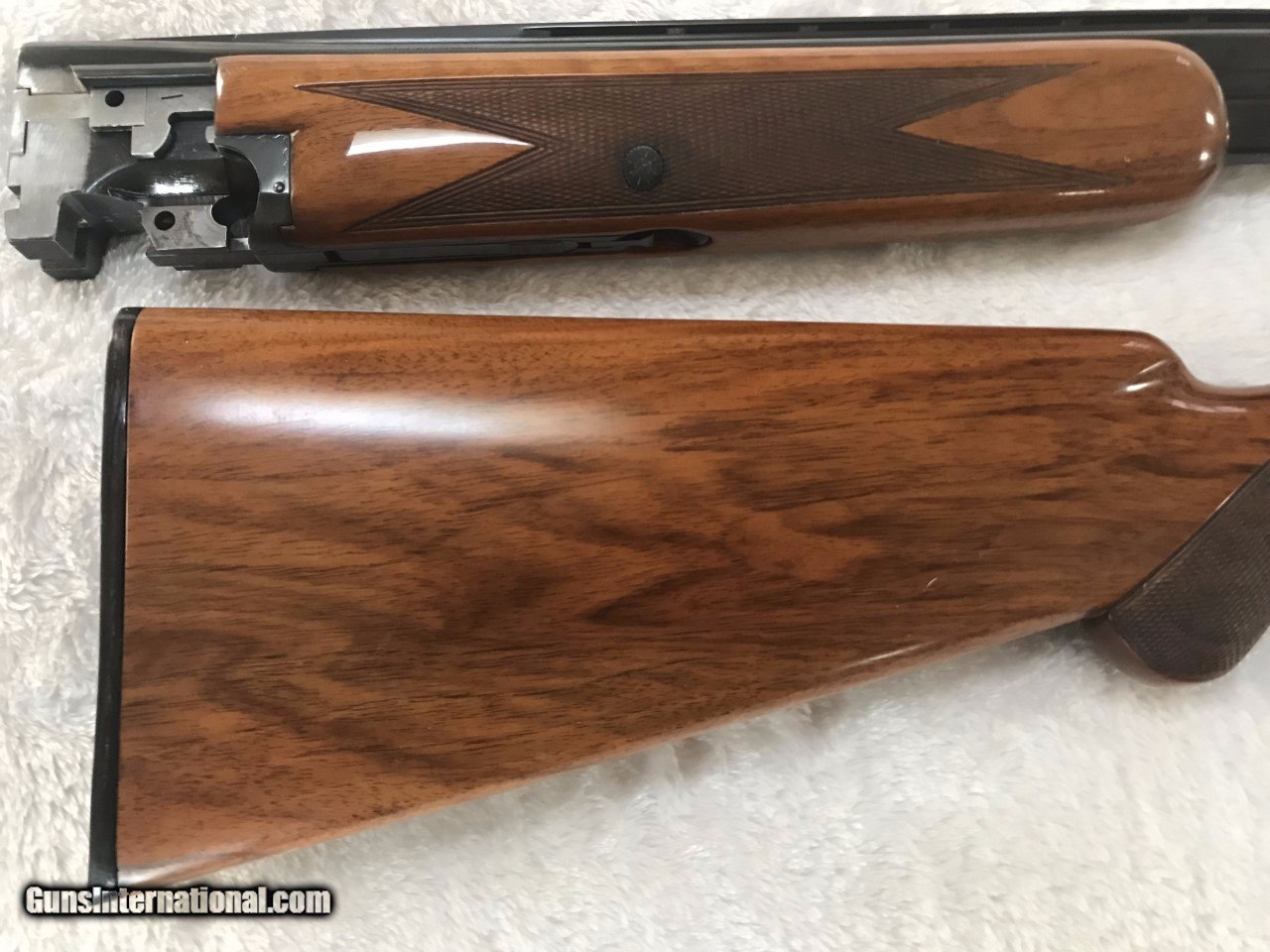 Description: Grade One Lightning. Made in 196I with 26 1/2 barrels and IC, Mod chokes, 141/4 pull. I have owned this gun for quite a while but I used it mostly for hunting Mearns quail which amounted to a dozen or so times per year. A few years ago the wood finish started to craze so I sent it back to Browning for refinishing. I had them use a semi gloss finish which most closely resembles the old oil based varnish they used originally. The gun has an unusually nice piece of wood for a grade one and is original in all respects. The only mar is a very small spot on the forearm where two or three diamonds in the checkering are slightly squashed. SOLD |