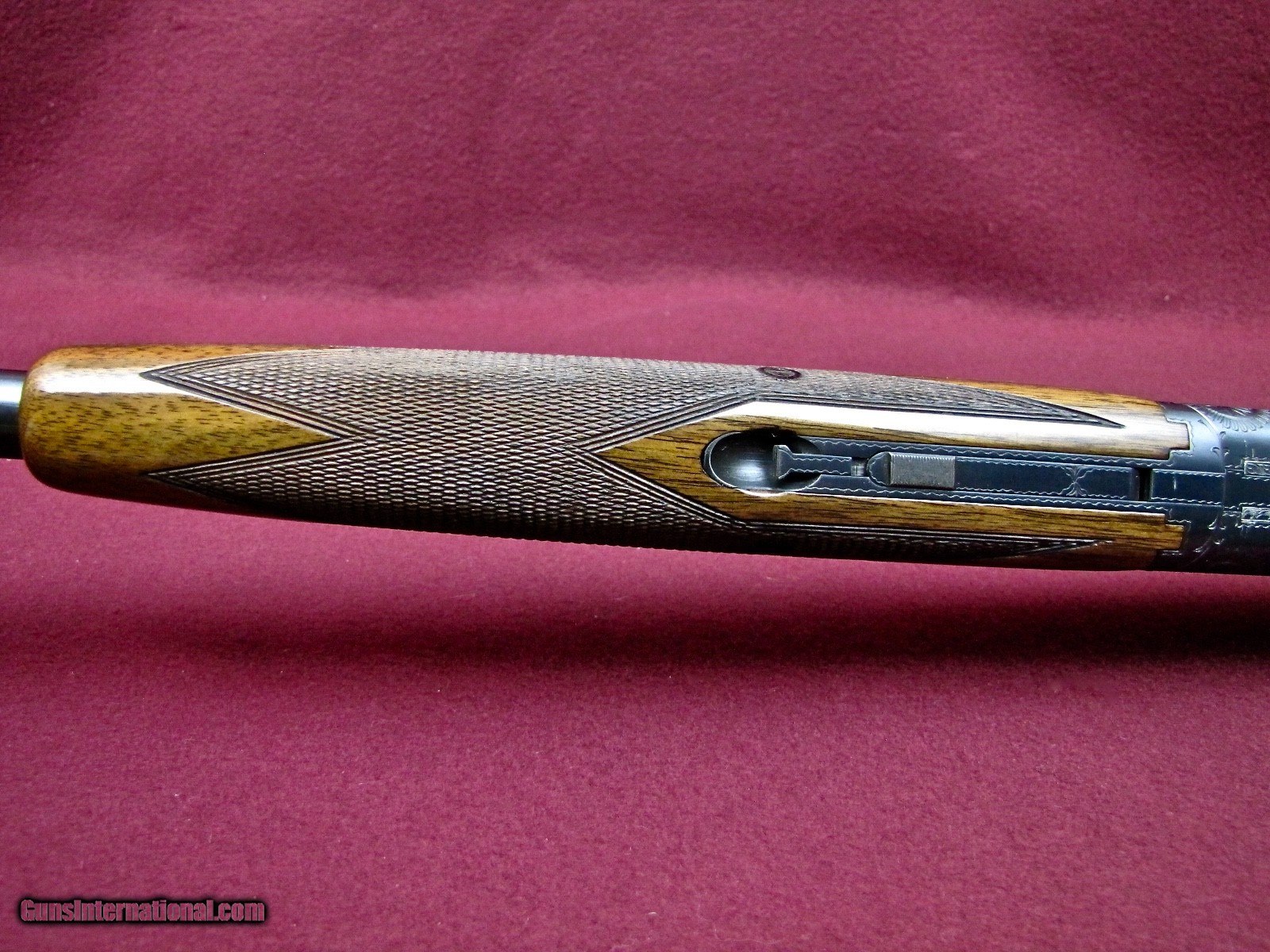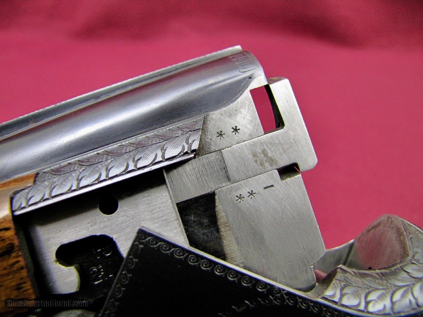 Description: Gun is now sold pending receipt of funds. If you hunt upland birds and like over and under guns, this may be the perfect gun for you. Built in 1970 this 20 gauge Browning Superlight was built specifically for the upland hunter. Having light weight, straight english stock and open chokes, it was built to carry all day, and point where aimed. This particular gun has the original 26 inch barrels choked improved cylinder (.006) and modified (.018), vent rib, single selective trigger, straight english stock, desirable trim field style forend, and great shooting weight at 5 pounds 12 ounces. The stock dimensions are 1 1/2 X 2 1/4 X 14 1/4 over the original Browning plate. This gun is totally original in every way and of course was built in Belgium. Condition is excellent plus with only a very few light handling impressions and the typical crazing of the finish as with most original Brownings made in Belgium. This is one of the nicer Superlights I have seen and it has been fired very little. Take a look at the pictures and contact me at esetter5me ]with any questions you might have. Price of the gun is $XXXX plus $50 shipping to your FFL. As always there is a three day non-firing inspection period with buyer paying shipping charges if returned. SOLD Manufacturer: Browning Model: Superlight Belgium Ejectors: Yes selective well timed Condition: Excellent Metal Condition: Excellent Wood Condition: Excellent Barrels: 26 Inches Barrel Type: O/U Action: Boxlock Triggers: Single Selective Gauge Info: 20 Stock: Straight English Stock Comb: 1 1/2 Stock Heel: 2 1/4 Butt Pad: Browning Black Plastic LOP: 14 1/4 Rib: Vent Rib Manufacture Date: 1970 Chokes: IC & Mod |