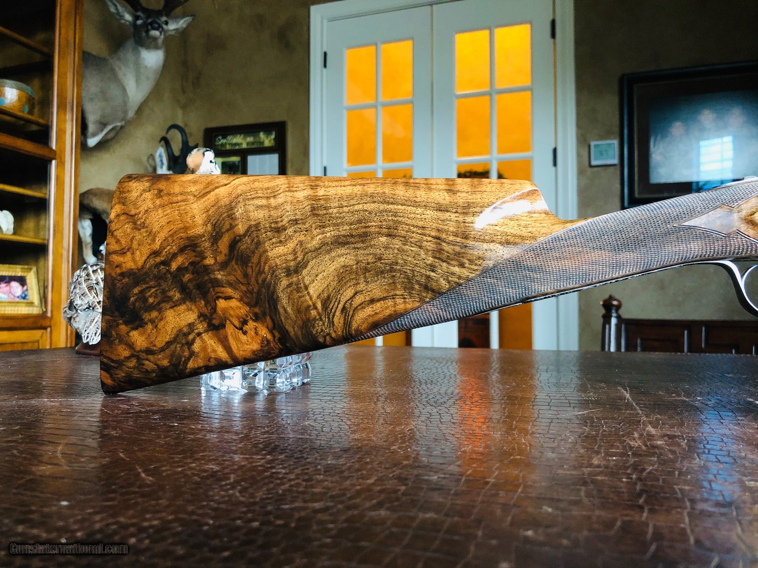 Description: Browning Superlight - .410 - D5G - 26.5” Barrels - M/F - 14 5/8” x 1 3/8” x 2 1/8” - 6 lbs 12 ozs - Exhibition Wood - Checkered Butt - Engraved By Master Engraver R. Hambrook - 3 of these D5G guns are available - 410, 28 and 20 gauge - sold separately or as a trio - you choose. Look at the detail - hours upon hours of detail by an Elite Craftsman. These guns are all Spectacular! *****SPECIAL NOTE***** 1. I am a reasonable man – I encourage you to make reasonable offers on my listings. At times, there is some flexibility in pricing – other times there is not. I have been collecting guns since 1988 – so I have amassed quite a covey of what I consider to be some very fine guns and some utility guns. Feel free to call me, unlike most gun dealers – I am easy to talk to and will answer the phone on weekends and late evenings (not after 9PM CST). 2. I DO NOT ACCEPT TRADES 3. I do provide LAY-A-WAY plan, please inquire about my terms if you have a need – glad to do it when I can. 4. My collection consists of many guns that were bought from individuals – that means **I BUY GUNS** but I only buy clean used guns with collectibility. In particular - **I BUY SHOTGUNS** 5. ALL OF MY TRANSACTIONS ARE DONE THROUGH MY FFL with whom I have a very solid relationship. If you buy a guns from me, you’ll pay them, they will ship to your FFL of choice and all dealings will be with them post receipt of funds. They are a high end boutique gun dealer in the Texas Hill Country and can accommodate the entire transaction. If you live in Texas and want to drive to see one of my guns, reach out to me to discuss making an appointment with my FFL – I do not show guns at my home nor do I meet guys at public locations for viewings or sales. ALL GUNS ARE LEGALLY TRANSFERRED through my FFL – there are NO EXCEPTIONS. 6. Certified funds are preferred – if you send a personal check for payment the FFL ships one week after receipt. Certified funds payments – shipments are done next business day. NO CREDIT CARD payments are accepted. 7. I encourage you to shoot the guns you buy from me – so during your 3 day inspection – shoot the gun. Make sure it is operating in the manner you expected. If you are not happy – return the gun for a full refund except shipping costs SOLD |