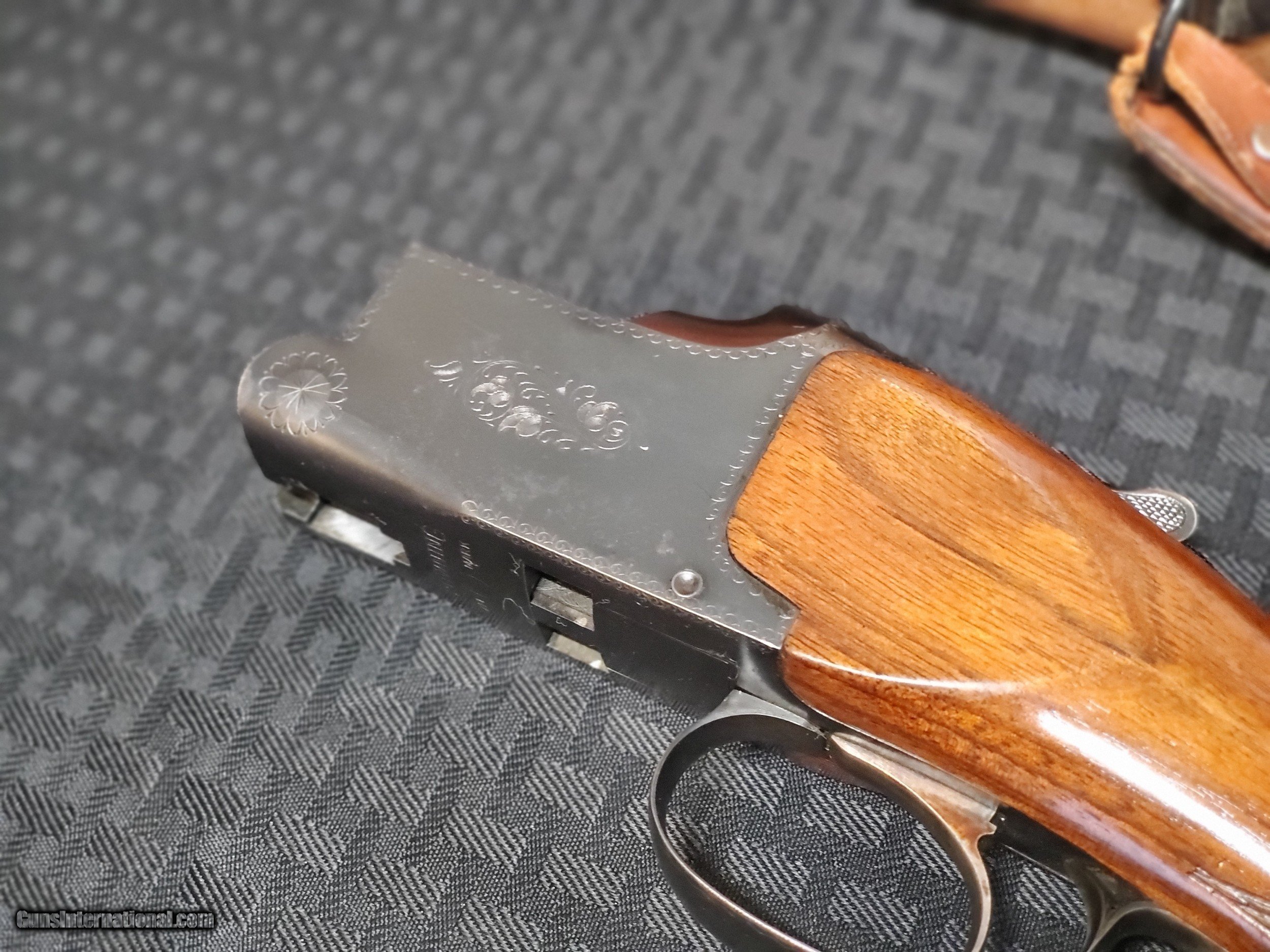 Description: Made in Belgium in 1936 26'' barrels with a solid rib Choked Skeet/Skeet Includes Outers case L.O.P. of 14.5'' Please add $50 for shipping SOLD Curio/Relic: Yes |